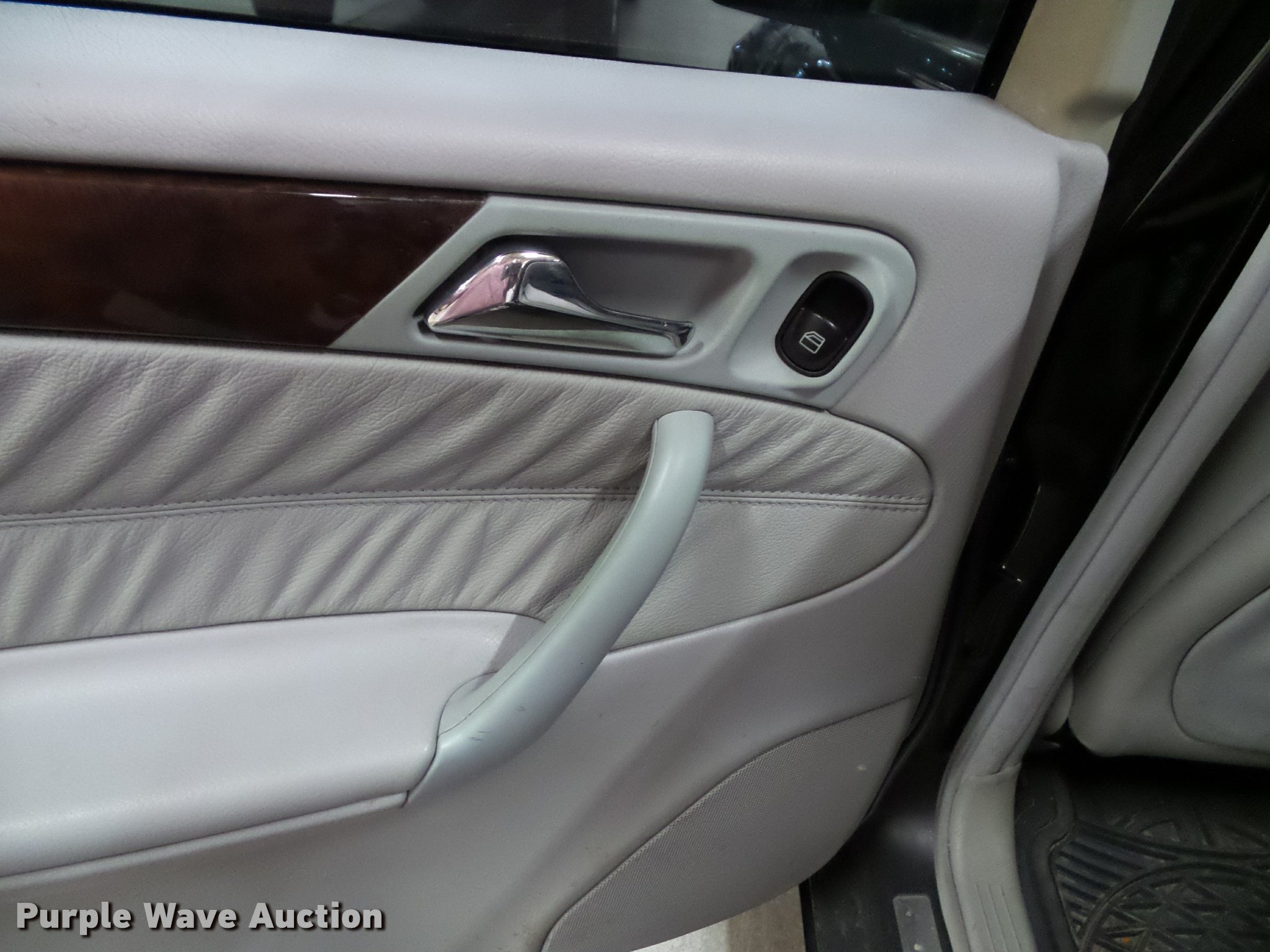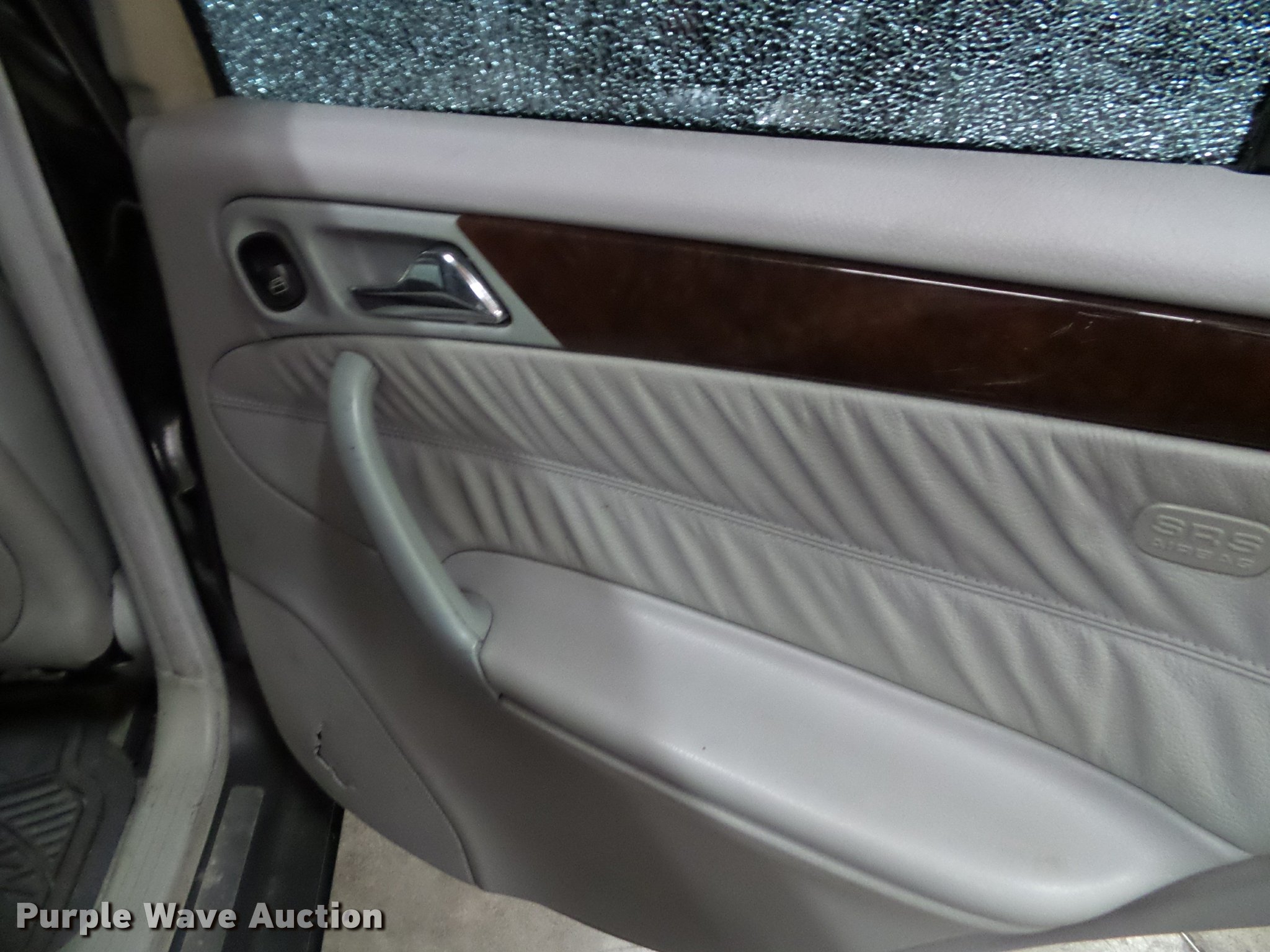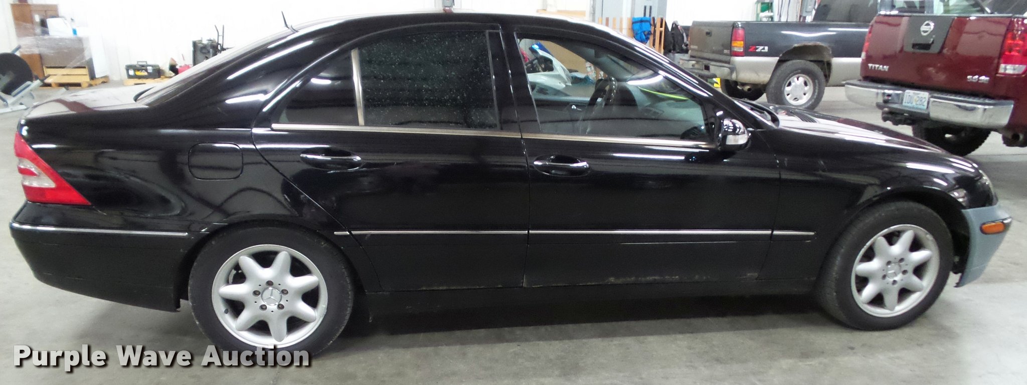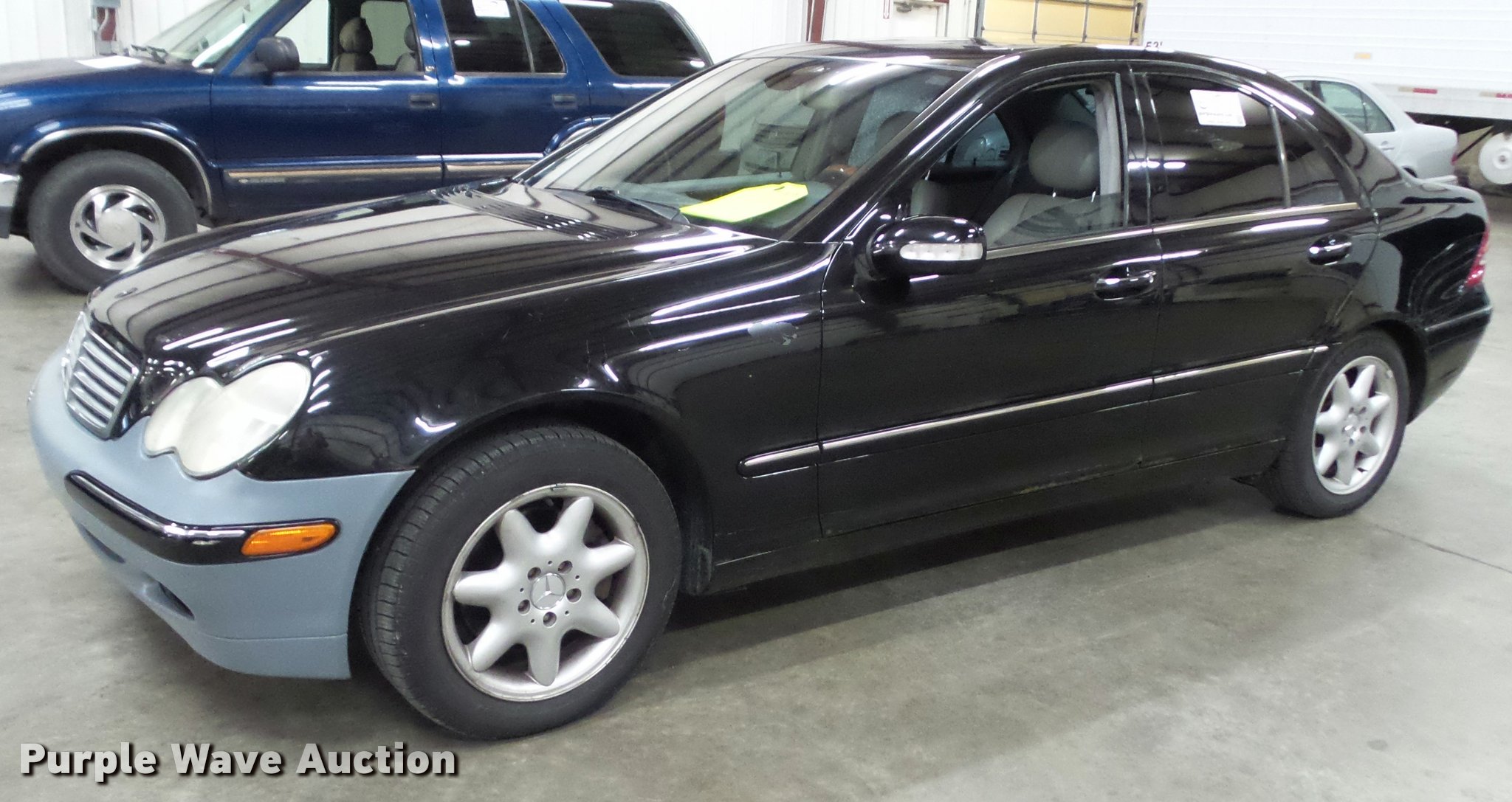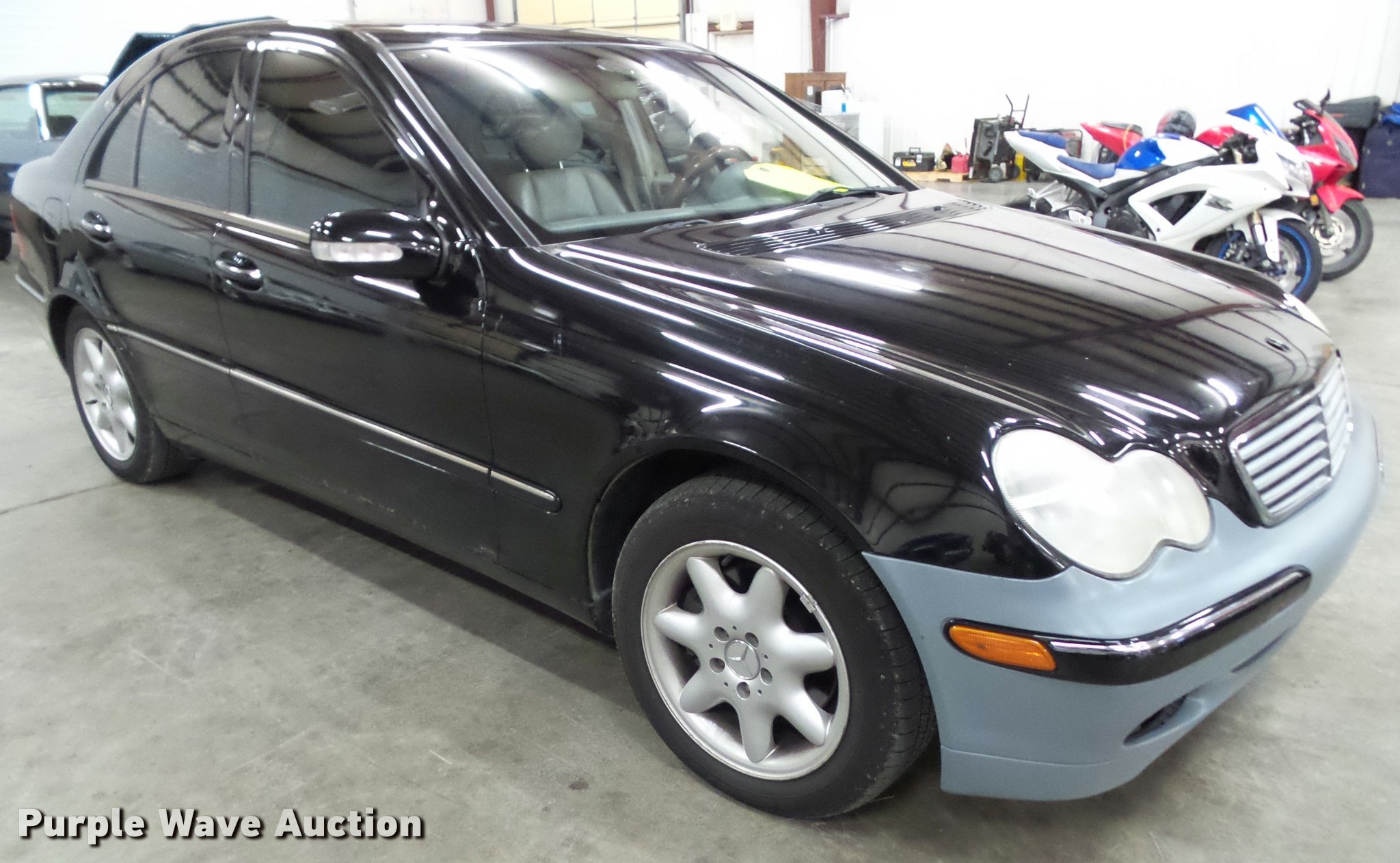 Purple Wave is selling a used Passenger Vehicle in Kansas. This item is a 2002 Mercedes Benz C320 with the following: 124,225 miles on odometer, 3.2L V6 SOHC 18V gas engine, Automatic transmission, AC and heat, Cruise, AM/FM/CD, Power windows, locks, mirrors, and seat, Heated seats, Leather interior, Power sunroof, 205/55R16 tires, Dead battery, Rust, Hood ornament removed, One fog light damaged, Passenger rear window shattered, Rear seat cushion hollowed out, Carfax report available from seller