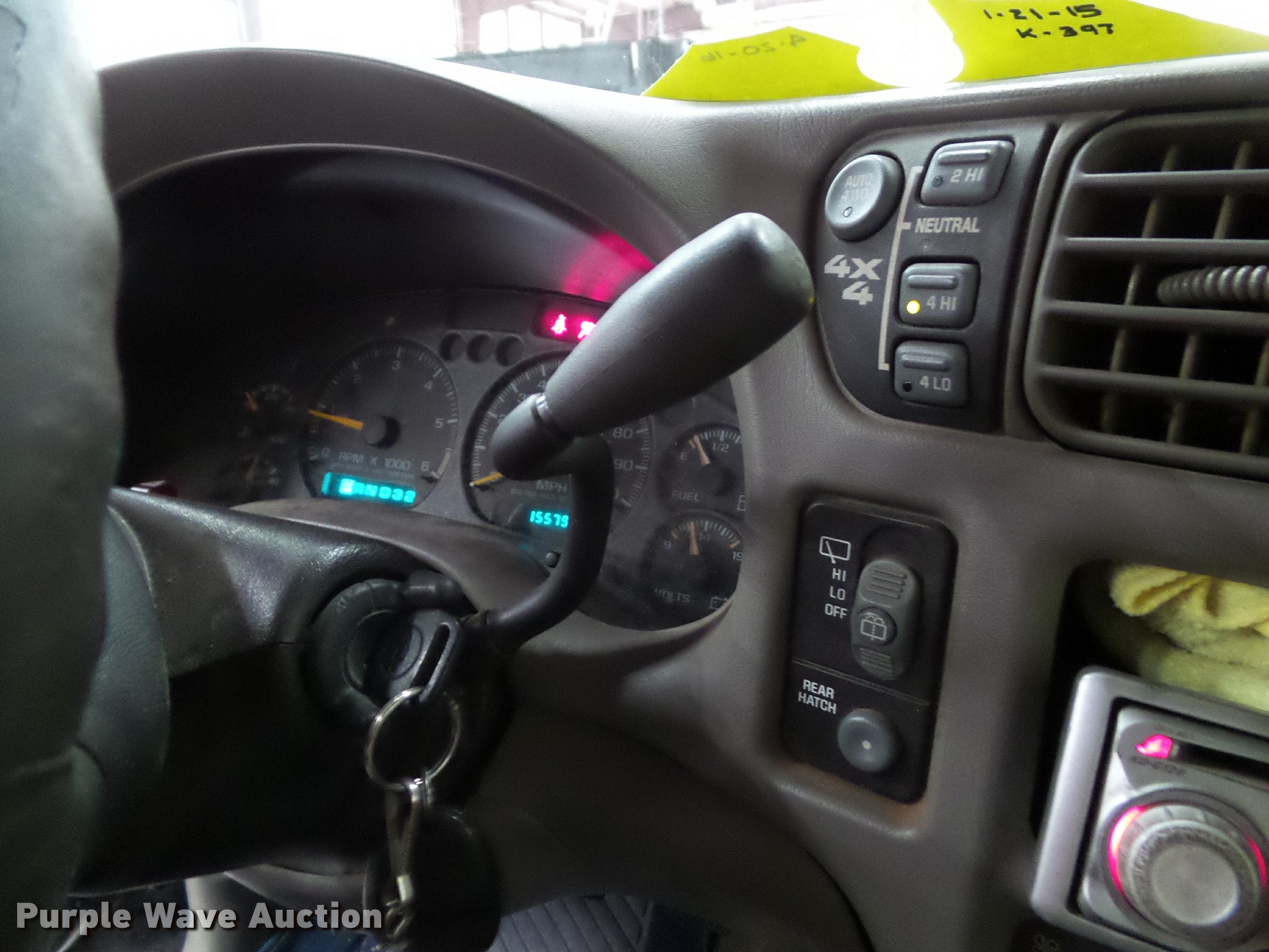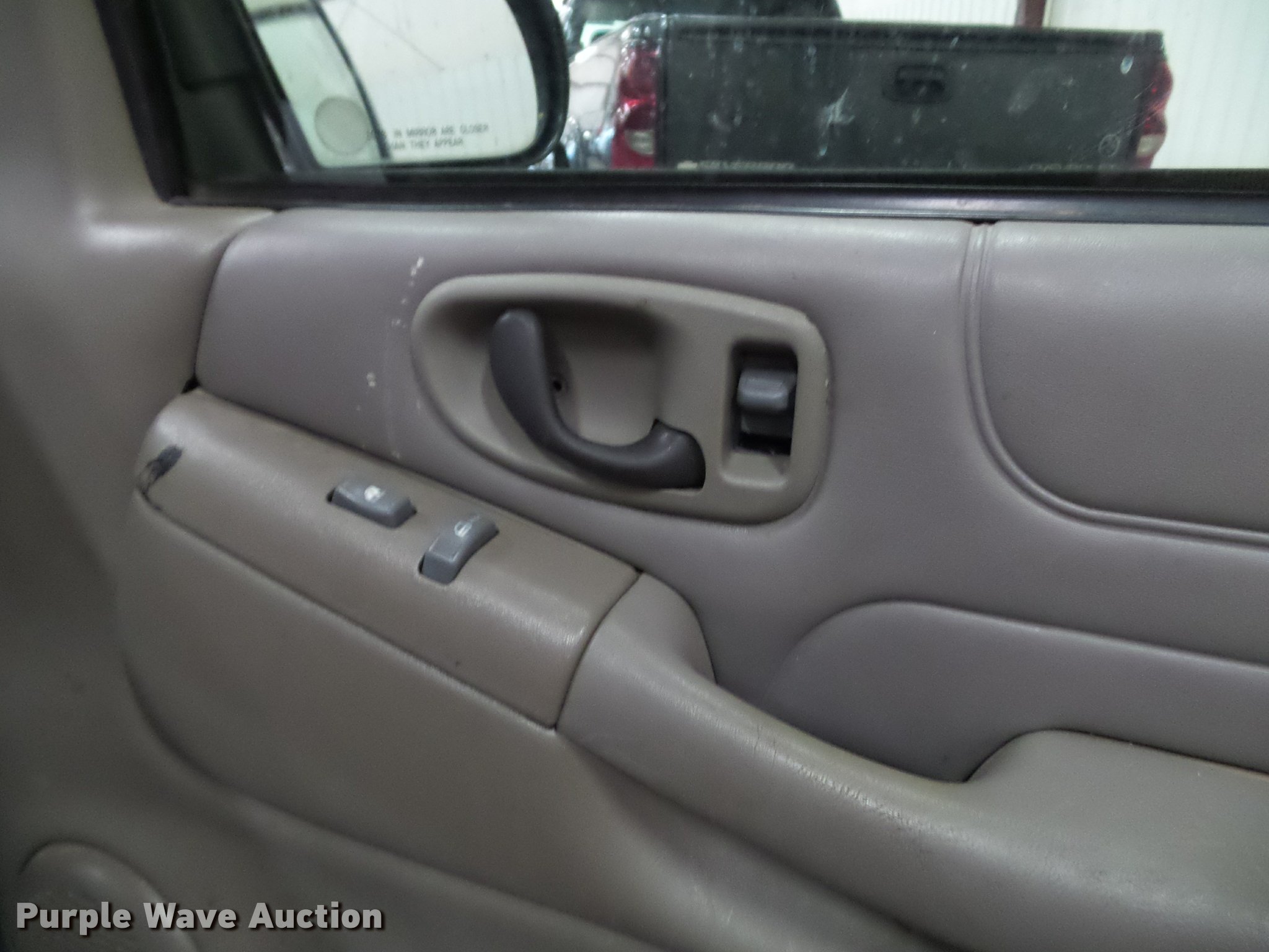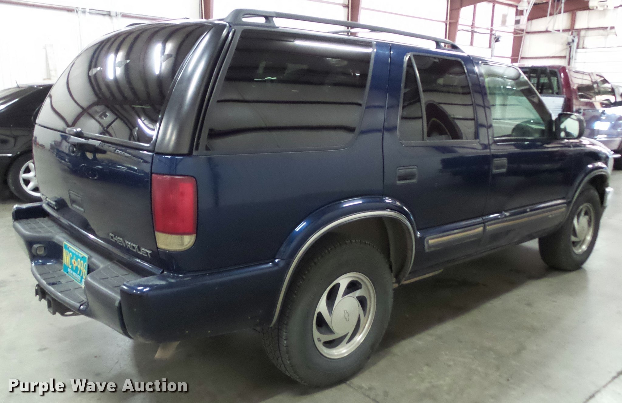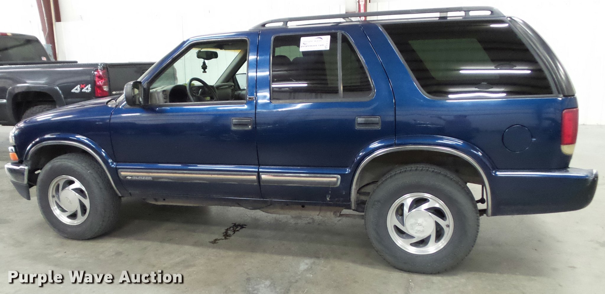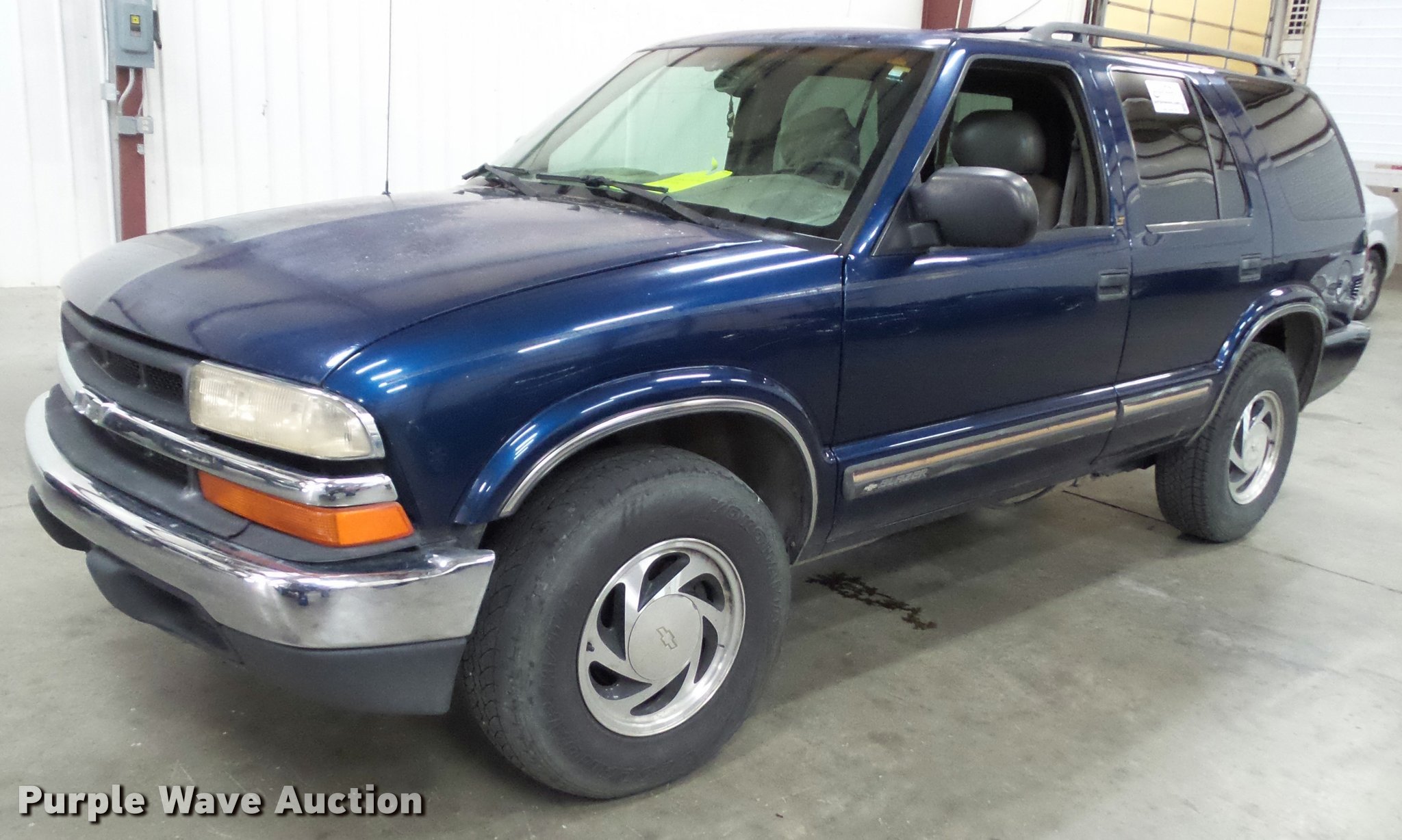 Purple Wave is selling a used Passenger Vehicle in Kansas. This item is a 2000 Chevrolet Blazer SUV with the following: 155,796 miles on odometer, 4.3L V6 OHV 12V gas engine, Automatic transmission, Four wheel drive, AC and heat, Tilt, Cruise, AM/FM/CD, Power windows, locks, mirrors, and seats, Vinyl interior, Seat cover, Heated mirrors, Luggage rack, Receiver hitch, Trailer wiring, 235/75R15 tires, Hood latch broken, Chipped windshield, Varnish peeling, Leaking fluid under side near driver side door, Carfax report available from seller