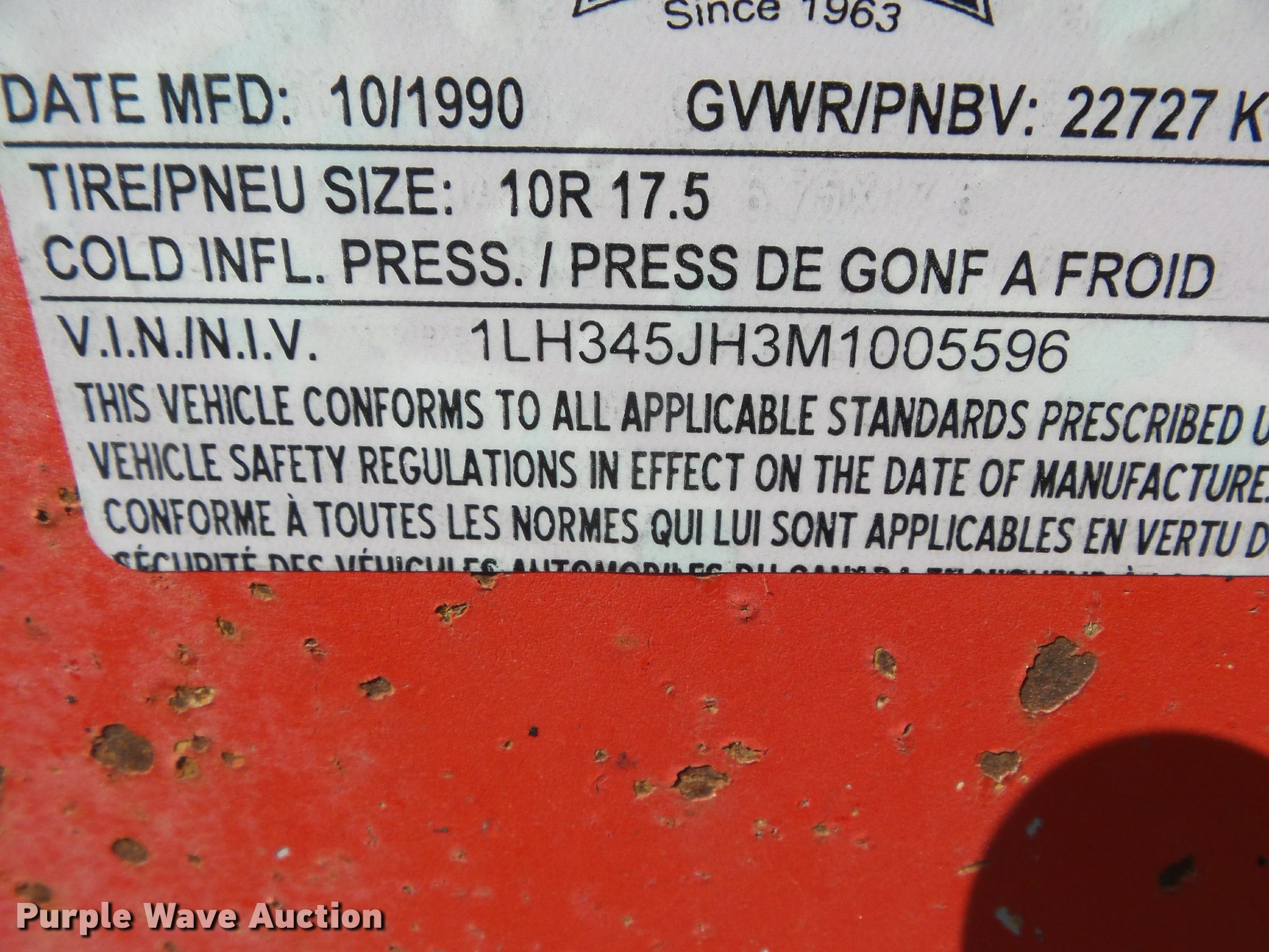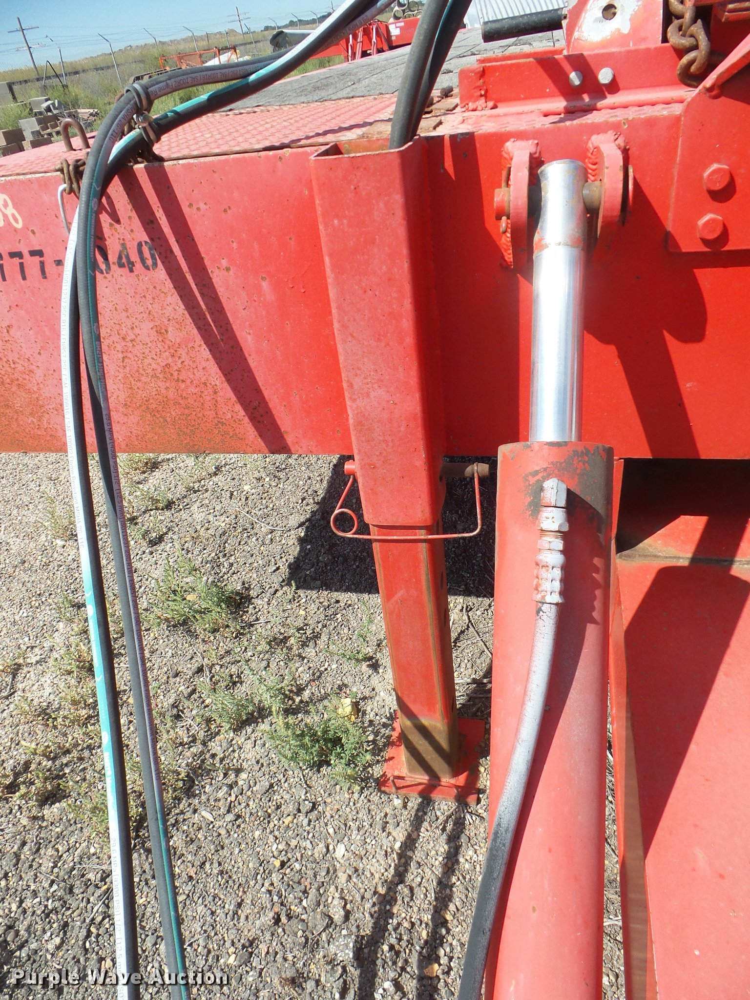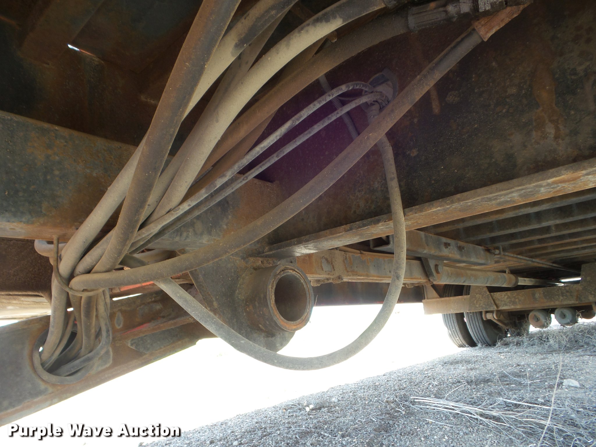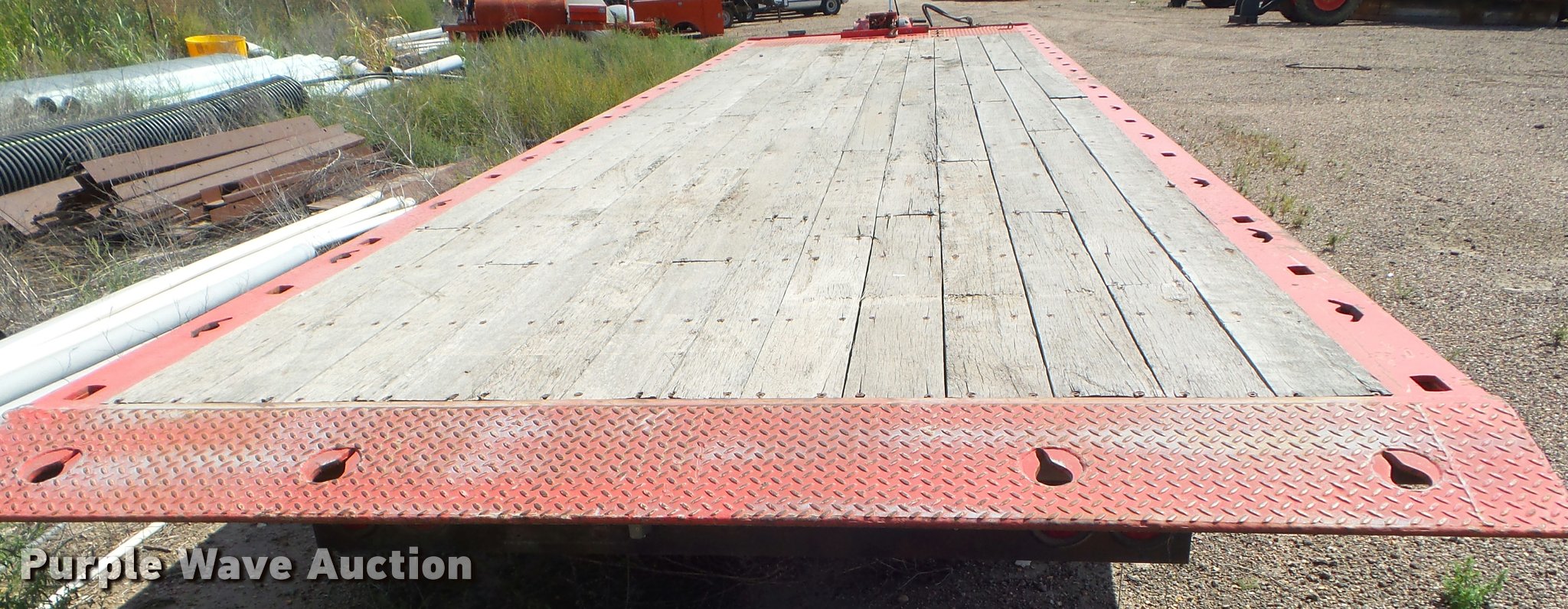 Purple Wave is selling a used Equip. Trailer in Kansas. This item is a 1991 Landoll 345-31 tilt deck equipment trailer with the following: 31'L x 102"W, 38" floor height, Wood deck, D-ring tie downs, Stake side pockets, Braden winch, Manual hydraulic control, Dual leg landing gear, Pintle hitch, Tandem axle, Spring suspension, Air brakes, Steel wheels, 10R17.5 tires, GVWR 50,000 lbs, GAWR 17,640 lbs per axle, Rust, KDOT ID 777-5040