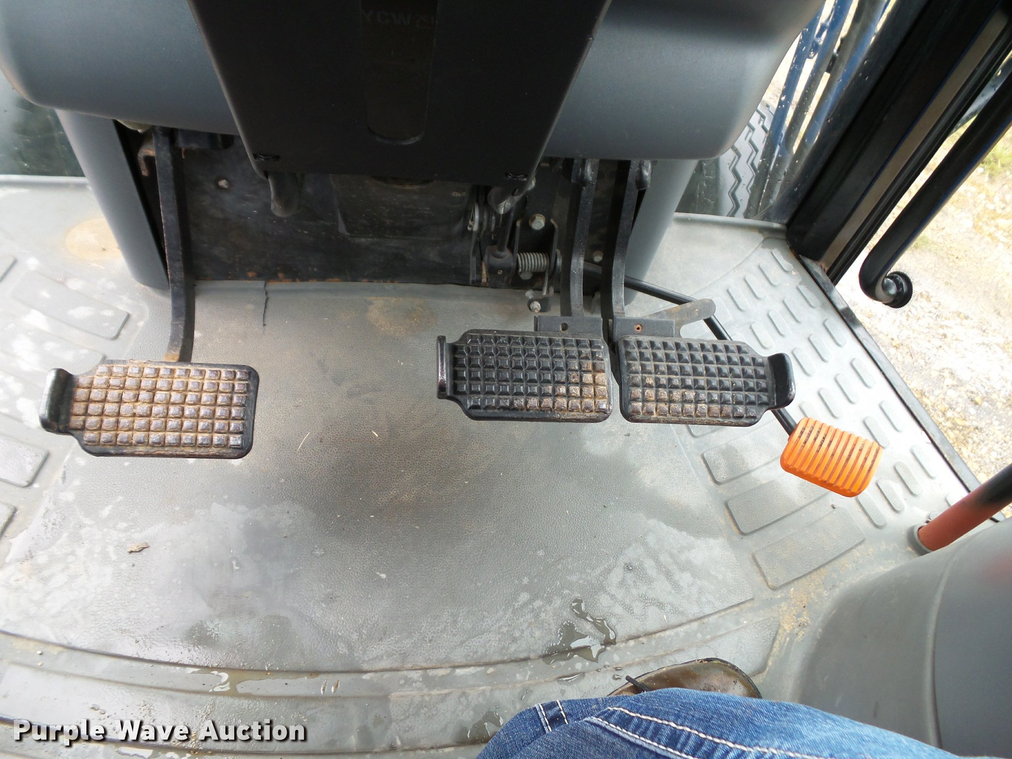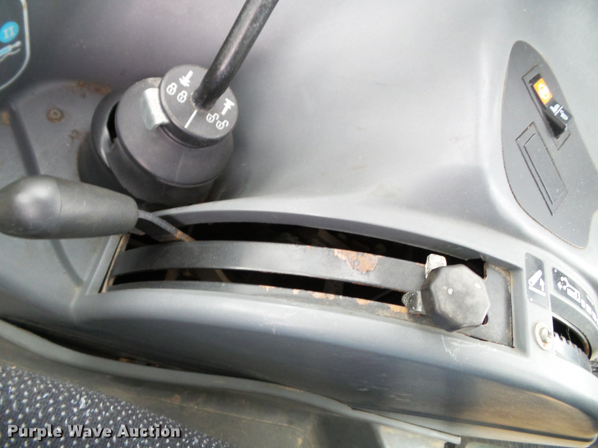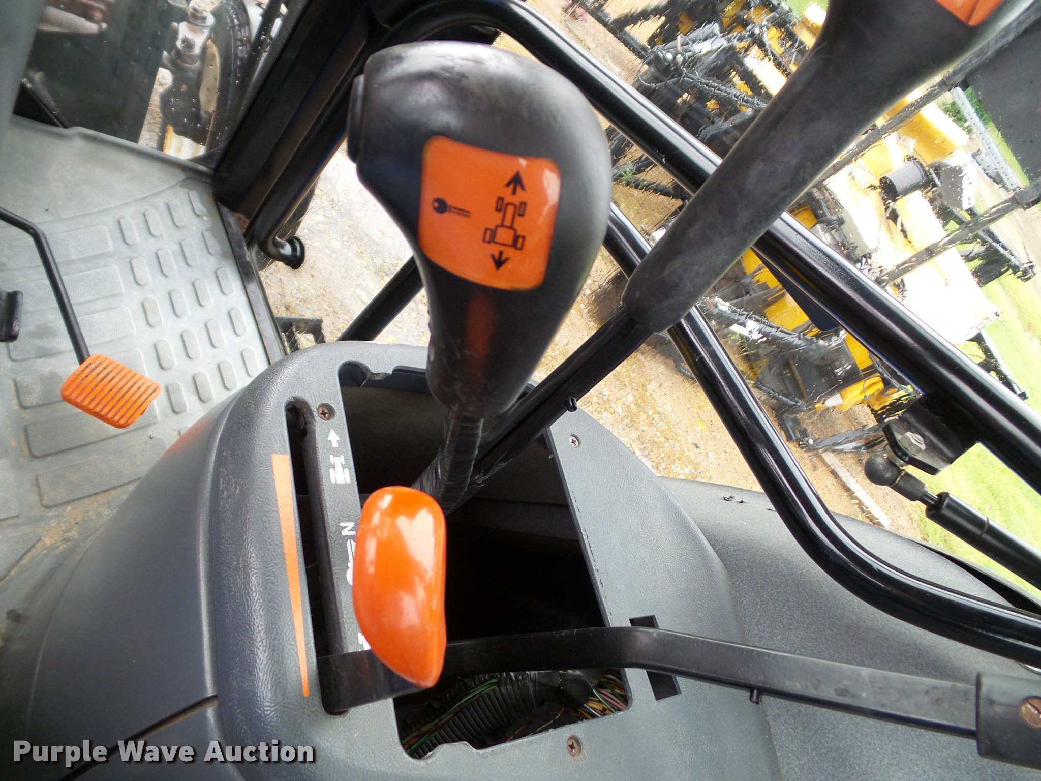 Purple Wave is selling a used Tractor in Kansas. This item is a 2003 New Holland TS100 tractor with the following: 2,280 hours on meter, 5.0L four cylinder turbo diesel engine, Dual Command transmission, 24F-24R gears, AC and heat, AM/FM, Tilt steering wheel, Block heater, Work lights, Wipers, Rear window brush guard, Loader, 6'W bucket, Three point, 1000 PTO, Seven pin outlet, (4) rear hydraulic remote sets, 11L-16 front tires, 18.4-30 rear tires, Throttle cable sticks, Door latch broken, Bucket rusted, Top link missing, Serial 208166B, KDOT ID 352-1123