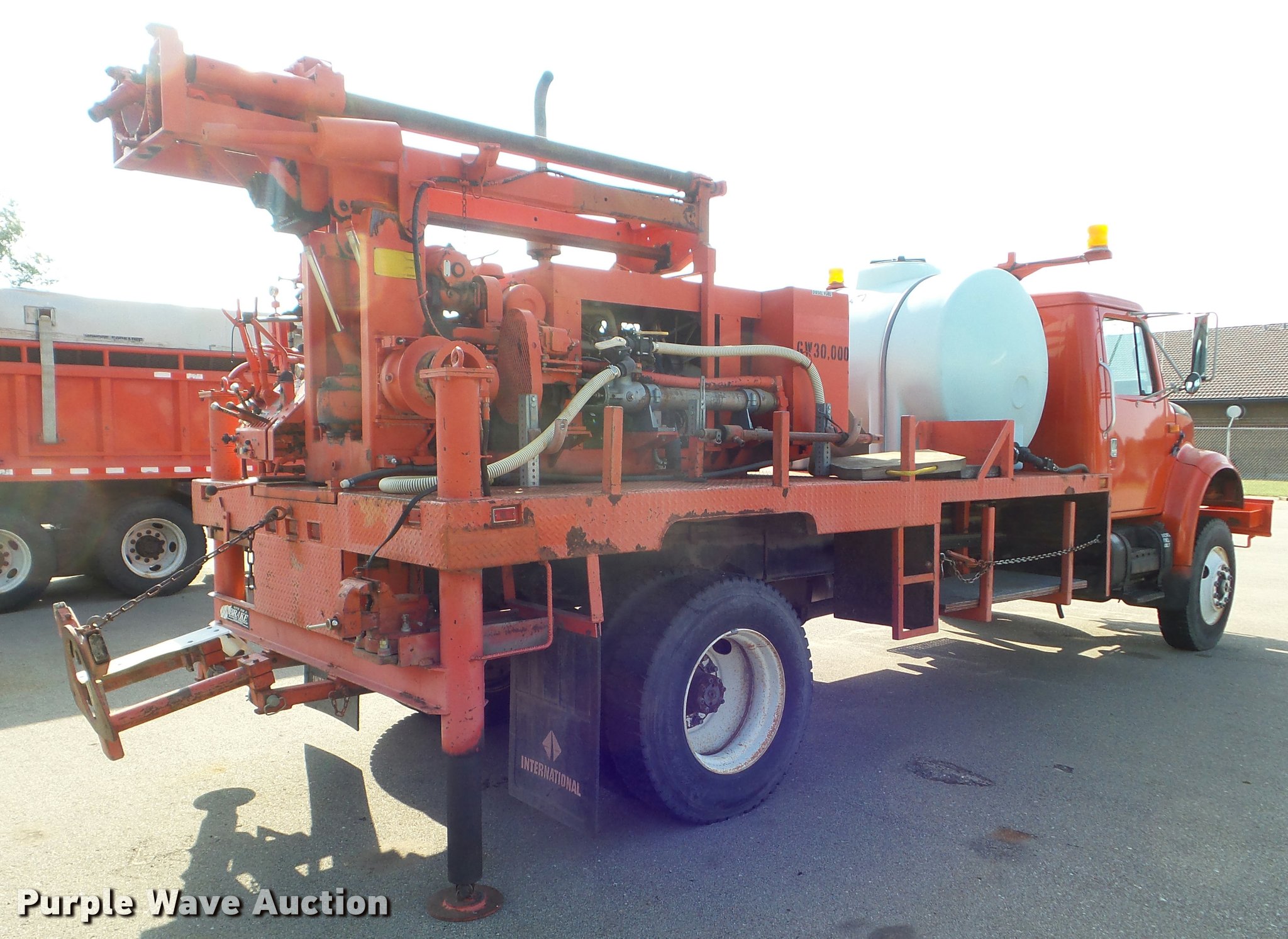 Purple Wave is selling a used Digger Derrick Truck in Kansas. This item is a 1993 International 4800 digger derrick truck with the following: 41,468 miles on odometer, 3,157 hours on meter, International DTA360 5.9L L6 diesel engine, Automatic transmission, Single axle, AC, AM/FM, Air suspension seat, 6" bumper vise, CME 55 auger drill, Cummins L 634T-1 diesel engine, 300 gallon water tank, Self contained hydraulic and water systems, Ramsey Y-600 Winch, Serial 130543, Rear hydraulic leveling jacks, Single exhaust stack, Single fuel tank, 208" wheelbase, Air brakes, 295/75R22.5 tires, KDOT ID 488-2012