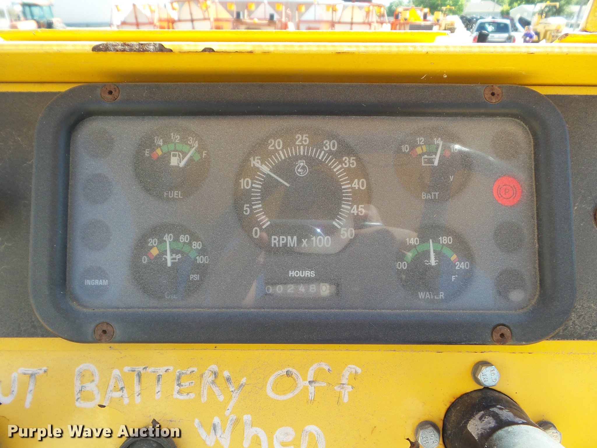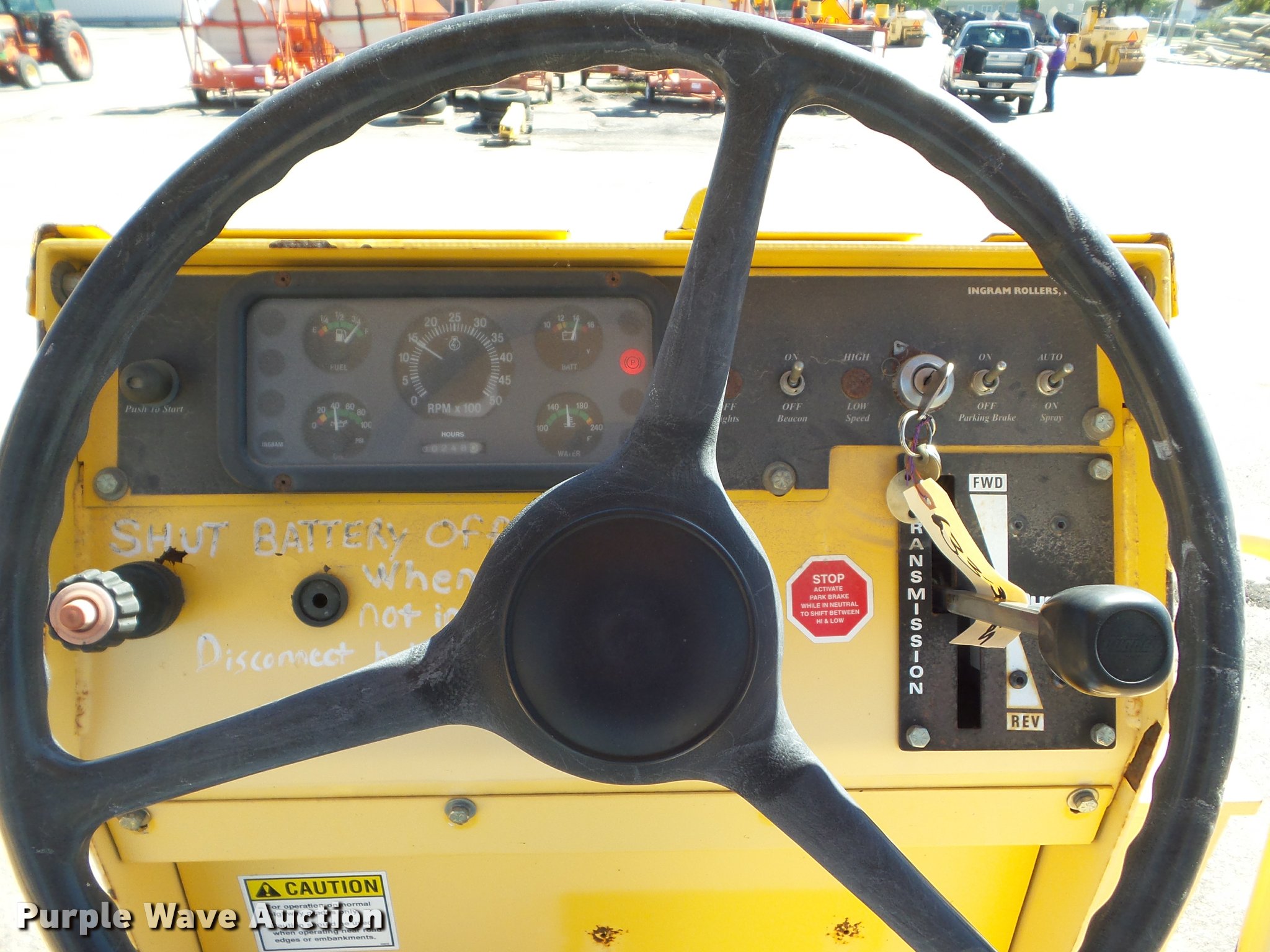 Purple Wave is selling a used Double Drum Roller Compactor in Kansas. This item is a 2006 Ingram RS207 double drum roller with the following: 246 hours on meter, Caterpillar four cylinder diesel engine, Hydrostatic transmission, 42"W front drum, 40"W rear drum, Front and rear water application, One set of wheels missing, Serial 06151009, KDOT ID 633-3075