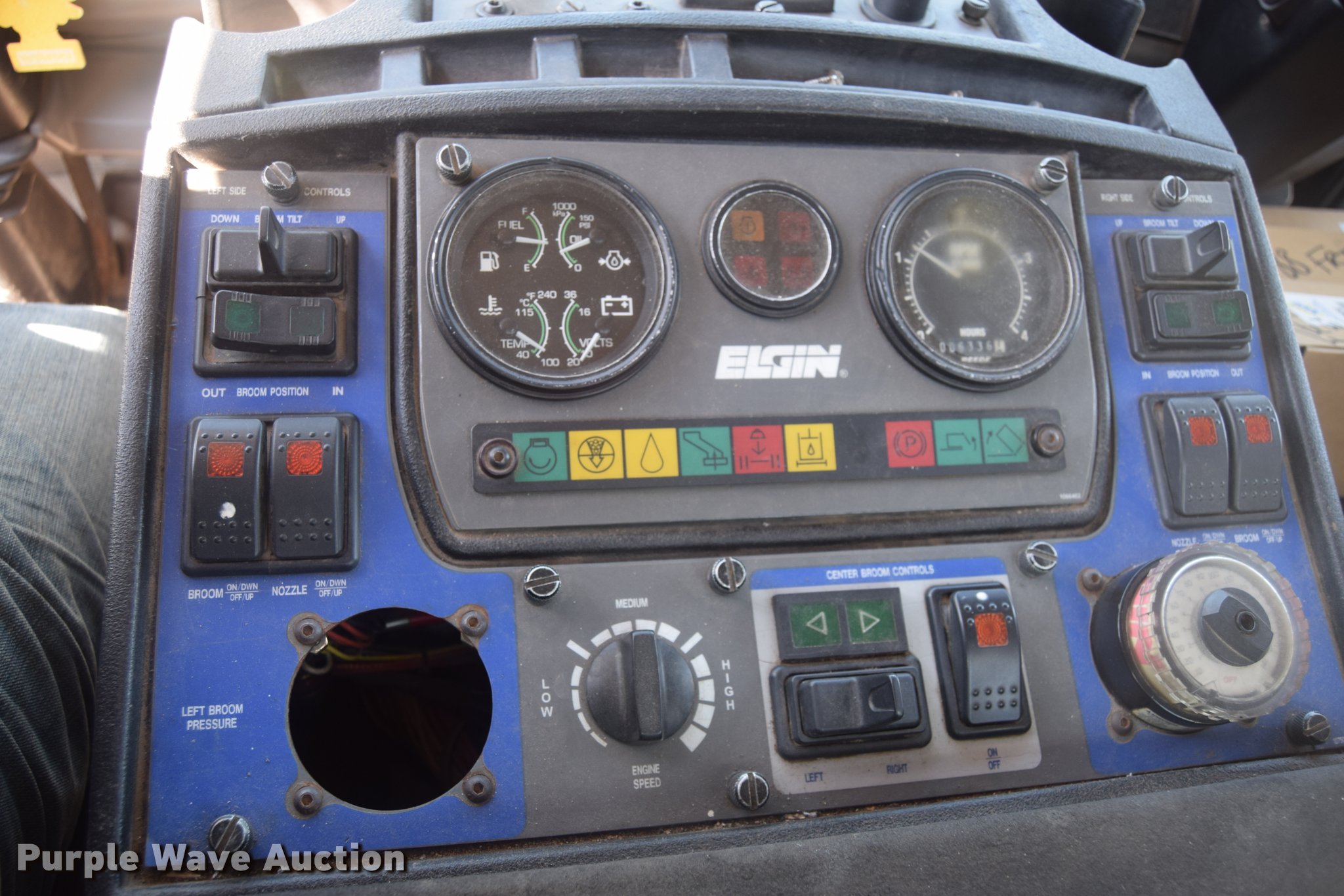 Purple Wave is selling a used Street Sweeper Truck in Kansas. This item is a 2005 Sterling SC8000 street sweeper truck with Elgin Whirlwind Series MV sweeper with the following: 153,042 miles on odometer, 9,307 engine hours on meter, 6,336 sweeper hours on meter, Cummins ISB 5.9L L6 turbo diesel engine, Automatic transmission, Dual operator stations, John Deere four cylinder turbo diesel vacuum engine, Left and right gutter brooms, Gutter vacuum, Arvin Meritor front and rear axles, Air brakes, 11R22.5 tires, Serial MV1045D, KDOT ID 688-5024