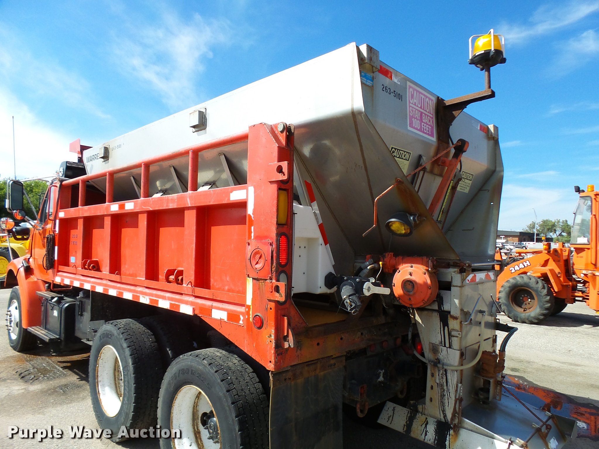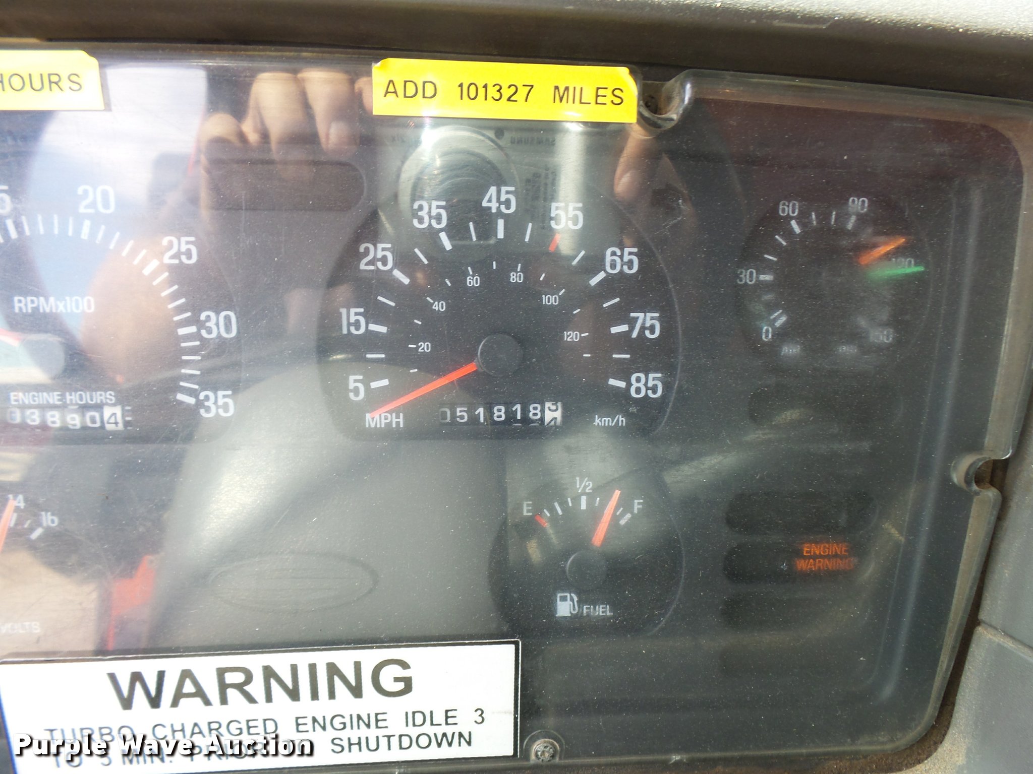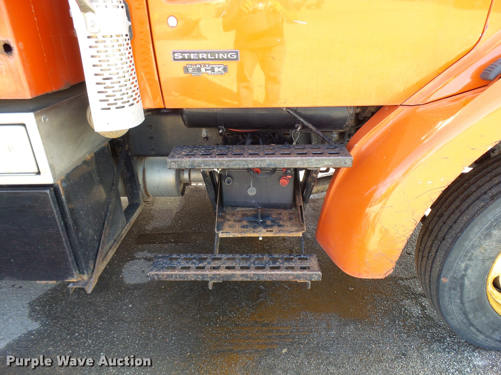Purple Wave is selling a used Construction Dump Truck in Kansas. This item is a 2001 Sterling L7500 dump truck with the following: 51,818 miles on odometer, 3,890 hours on meter, Caterpillar 3126 7.2L L6 turbo diesel engine, Automatic transmission, Tandem axle, AC and heat, Cruise, AM/FM, Heated mirrors, Air suspension seat, Force SSC5100 spreader controls, Block heater, Front mounted PTO, Warren WFL650-13 steel dump bed, 13'L x 8'W, 42" side height, 9 to 11 cu.yd. capacity, Roll tarp, Flink snow plow mount, Warren AC-2420A stainless steel spreader, Nine cu. yd. capacity, Rear spreader connectors, Beacon light, Single fuel tank, Pintle hitch, Trailer wiring, 178" wheelbase, Spring suspension, Air brakes, Engine brake, 275/8022.5 tires, GVWR 53,200 lbs, FAWR 13,200 lbs, IAWR 20,000 lbs, RAWR 20,000 lbs, Non-operational spreader controller, Engine issues, Rust, Batteries dead, Fuel tank leaks, Tires worn, KDOT ID 263-5101