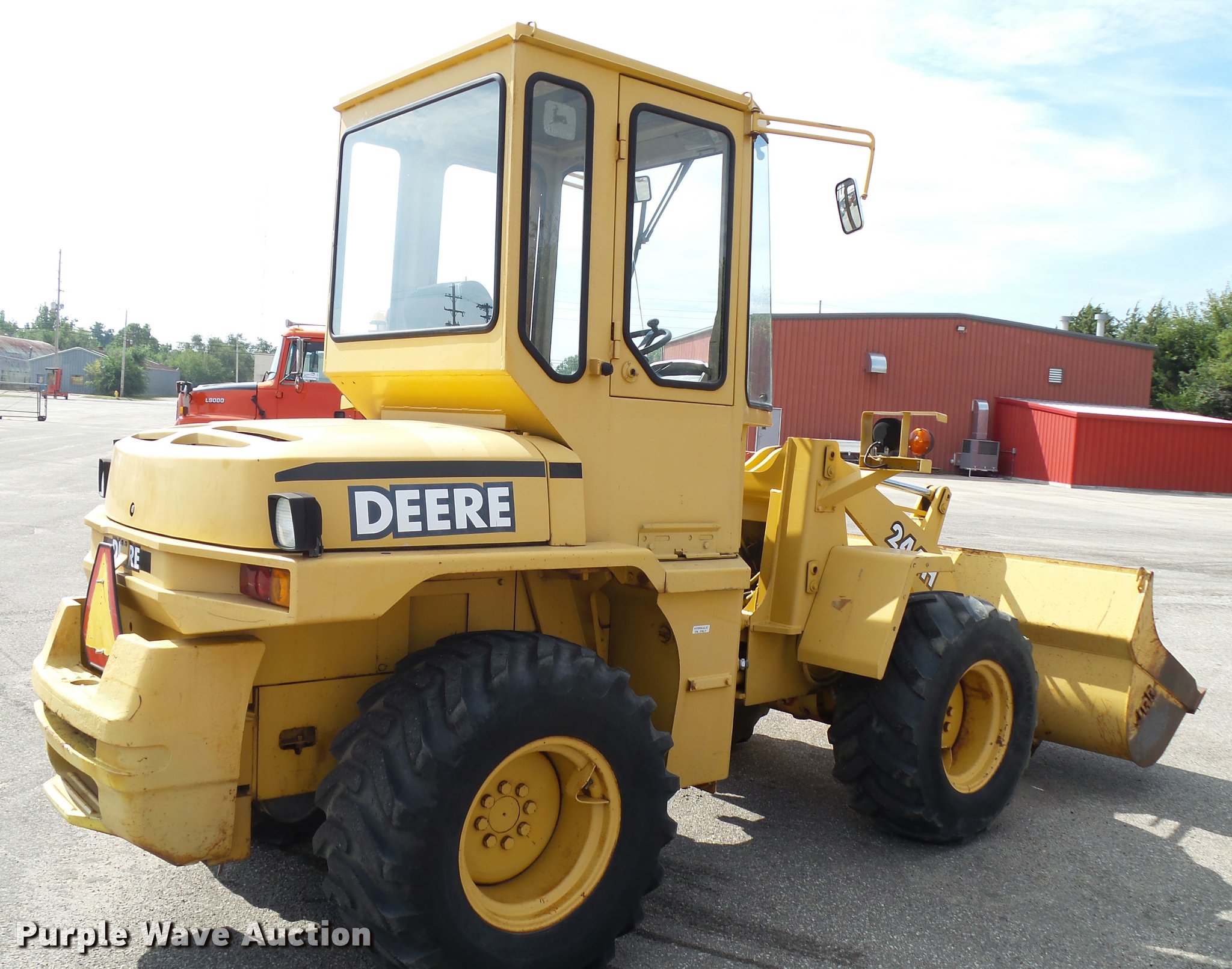 Purple Wave is selling a used Wheel Loader in Kansas. This item is a 1998 John Deere 244H wheel loader with the following: 2,573 hours on meter, Yanmar four cylinder diesel engine, 55 HP, Hydrostatic transmission, EROPS, Joystick bucket controls, Front work lights, JRB general purpose bucket, 1.5 cu. yd. capacity, Bolt-on cutting edge, 17.5/65-20 tires, 11,400 lbs. base operating weight, Rust, Tires worn, Battery dead, Serial T6244HX000154, KDOT ID 361-5038