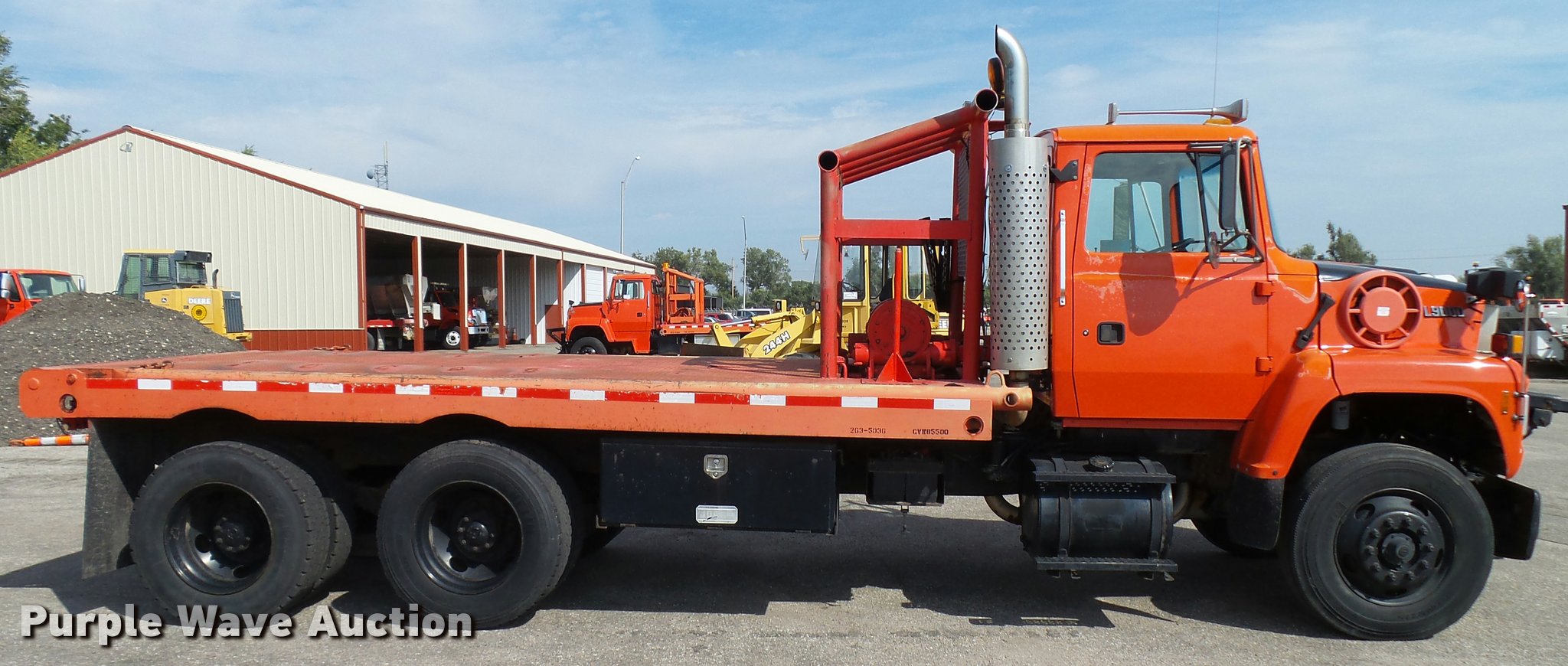This 1996 Ford LNT9000 flatbed truck will sell to the highest bidder regardless of price.