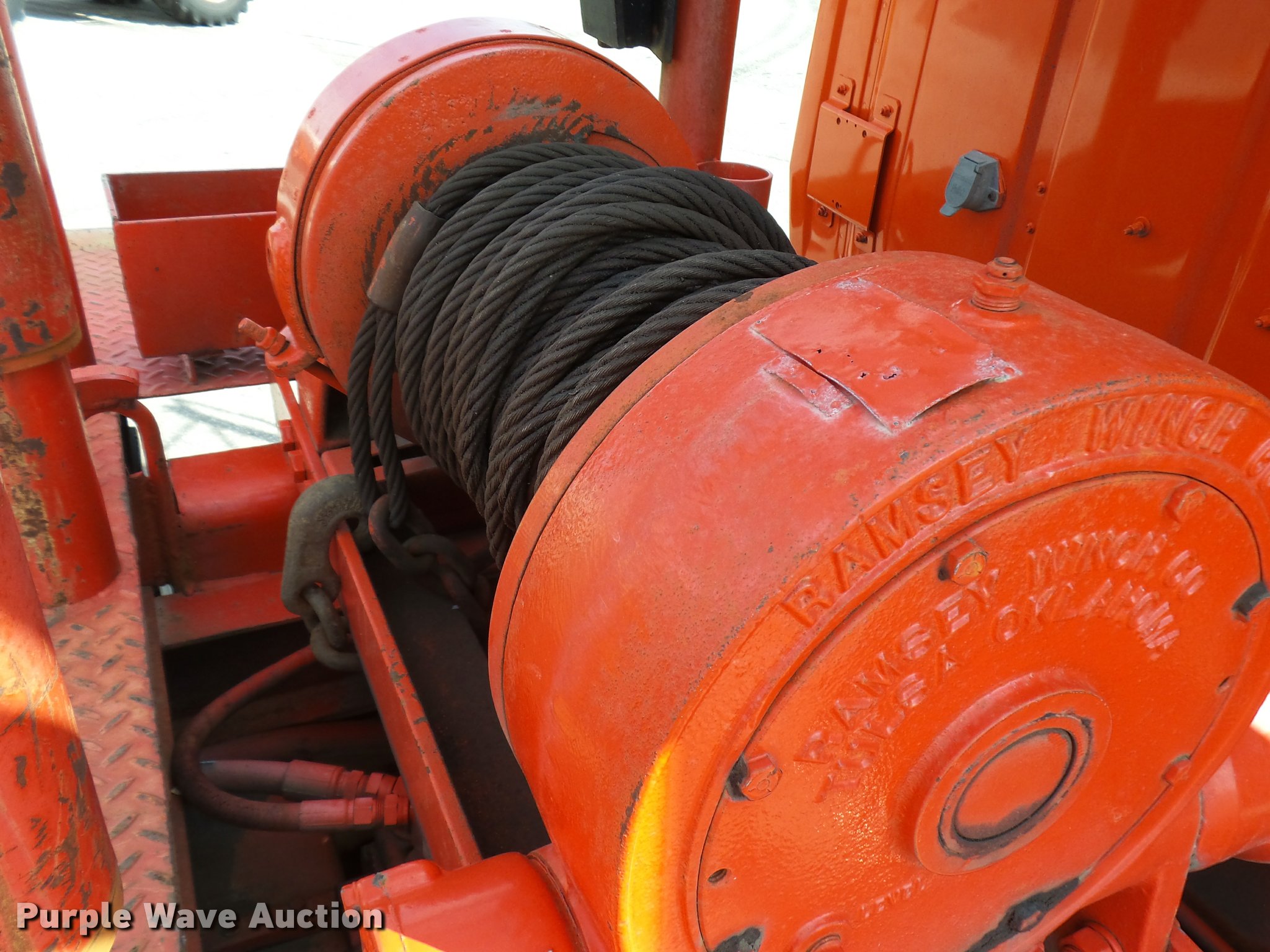 1996 Ford LNT9000 flatbed truck. 142,127 miles on odometer, Caterpillar 3306 10.5L L6 turbo diesel engine, Eaton Fuller Road Ranger 13 speed manual transmission, Tandem axle, Heat, In-cab plow controls, In-cab sprayer controls, PTO, 16'8"L x 8'W flatbed Rolling tailboard, Gin poles, Ramsey winch 50,000 lbs capacity, Snow plow mounting brackets, Single exhaust stack, Single fuel tank, Pintle hitch, Trailer wiring, 210" wheelbase, Spring over walking beam suspension, Air brakes, 275/80R22.5 front tires, 295/75R22.5 rear tires, GVWR 52,350 lbs, Bed rusted, Battery dead, KDOT ID 263-5036. Titles will be distributed after confirmation of payment and removal. Title distribution may be delayed up to 30 days from verification of funds. 1FDYW90T1TVA01645. Kansas Department of Transportation - Hutchinson. 500 N. Hendricks. Hutchinson, KS 67504