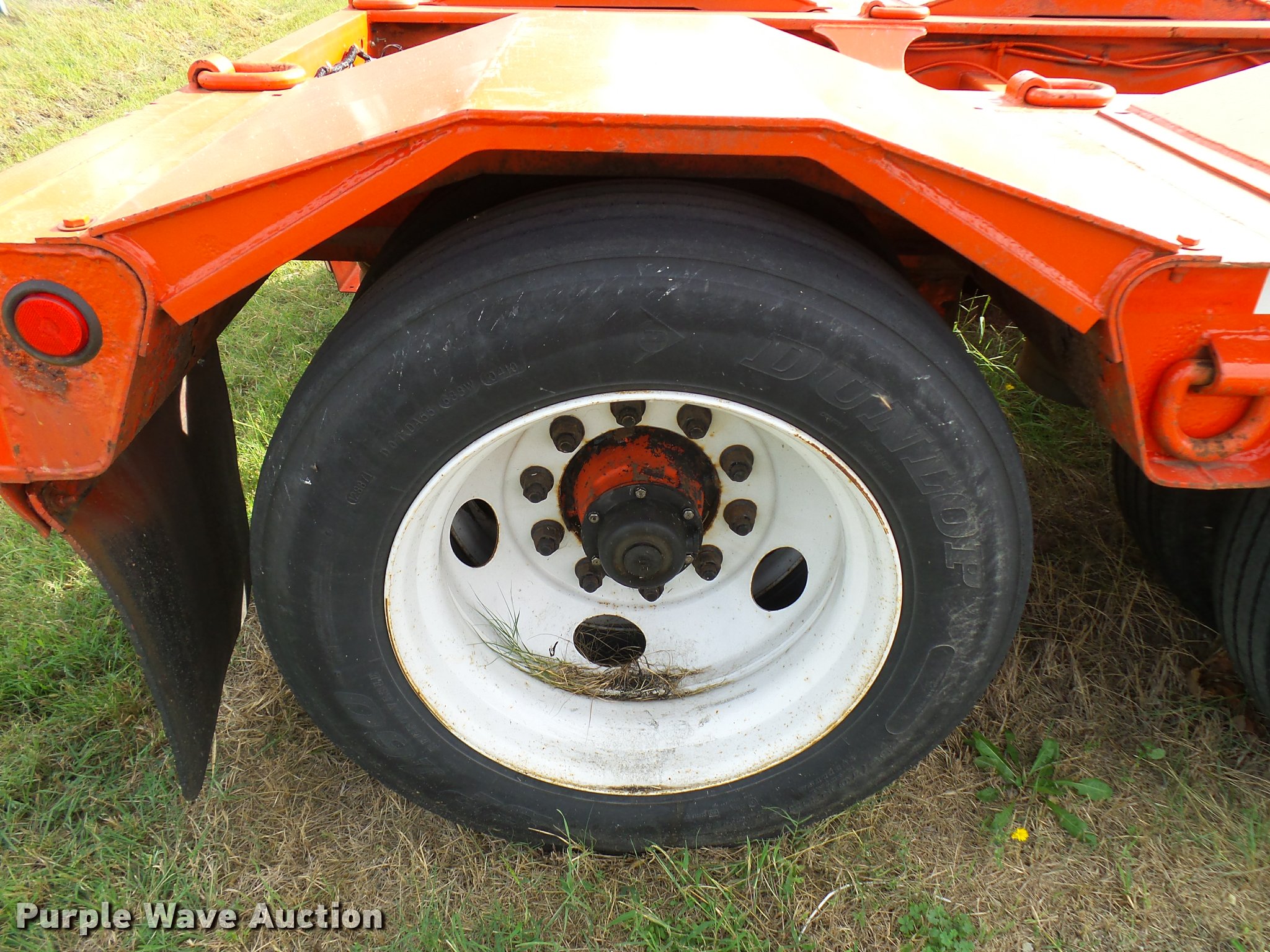 Purple Wave is selling a used Equip. Trailer in Kansas. This item is a 1997 Landoll 327-48 lowboy equipment trailer with the following: 24'L x 102"W, 12'L over axles, 50 ton capacity, Toolbox, Hydraulic tongue disconnect, Triple axle, Air suspension, Air brakes, Oil bath hubs, 255/70R22.5 tires, GVWR 110,000 lbs, No wood deck, Structural fatigue caused by rust, KDOT ID 778-5017