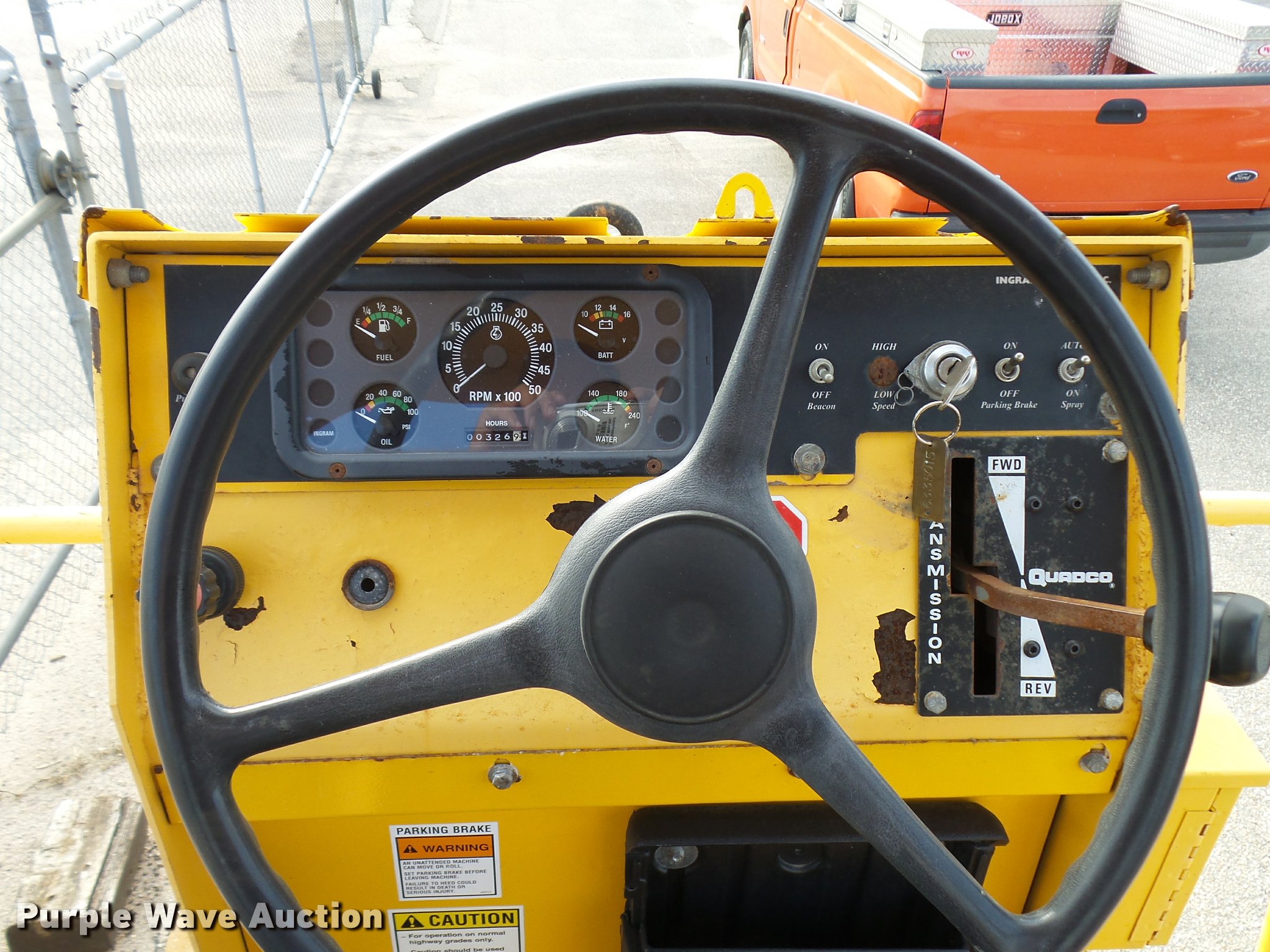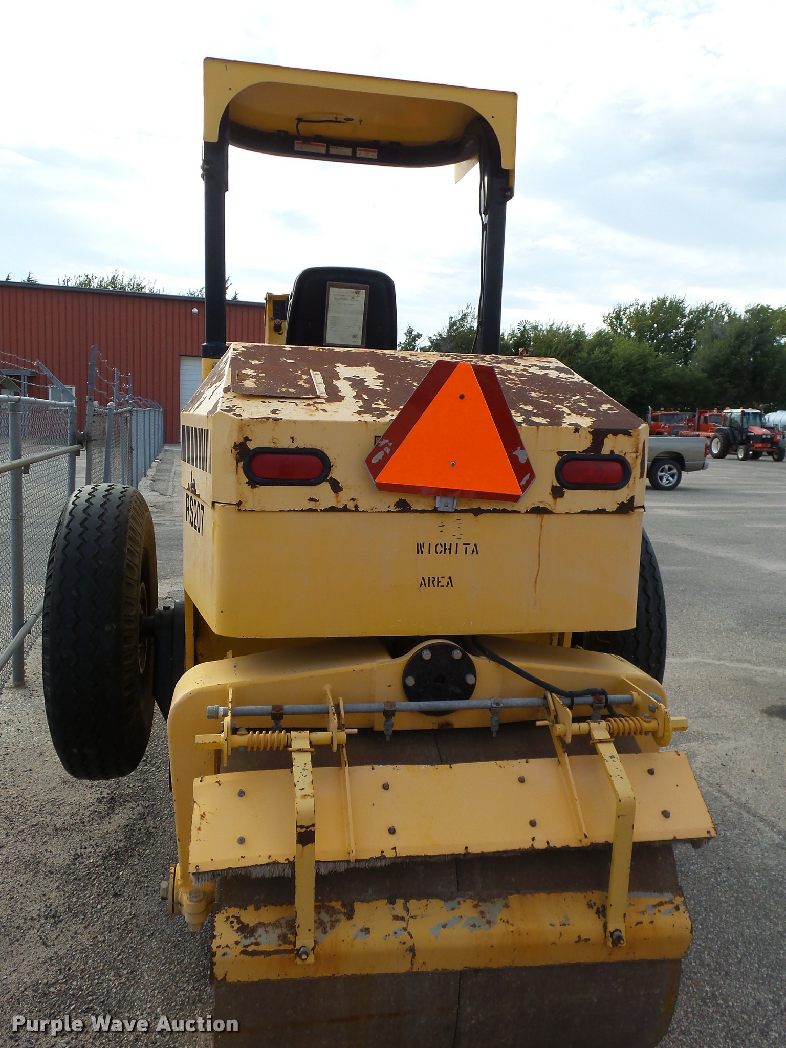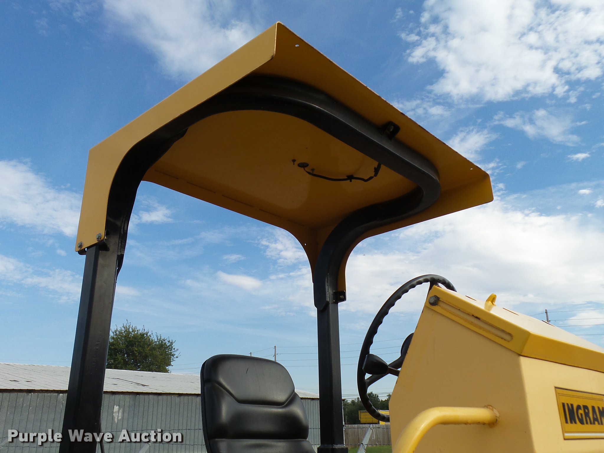 Purple Wave is selling a used Double Drum Roller Compactor in Kansas. This item is a Ingram RS707 double drum roller with the following: 327 hours on meter, Caterpillar four cylinder diesel engine, Hydrostatic transmission, Canopy, Suspension seat, 42"W x 40" diameter smooth front drum, 48"W x 34" diameter smooth rear drum, Front and rear drum scrapers, Tow bar, (2) 11R22.5 tires, Serial 06151015, KDOT ID 633-5015