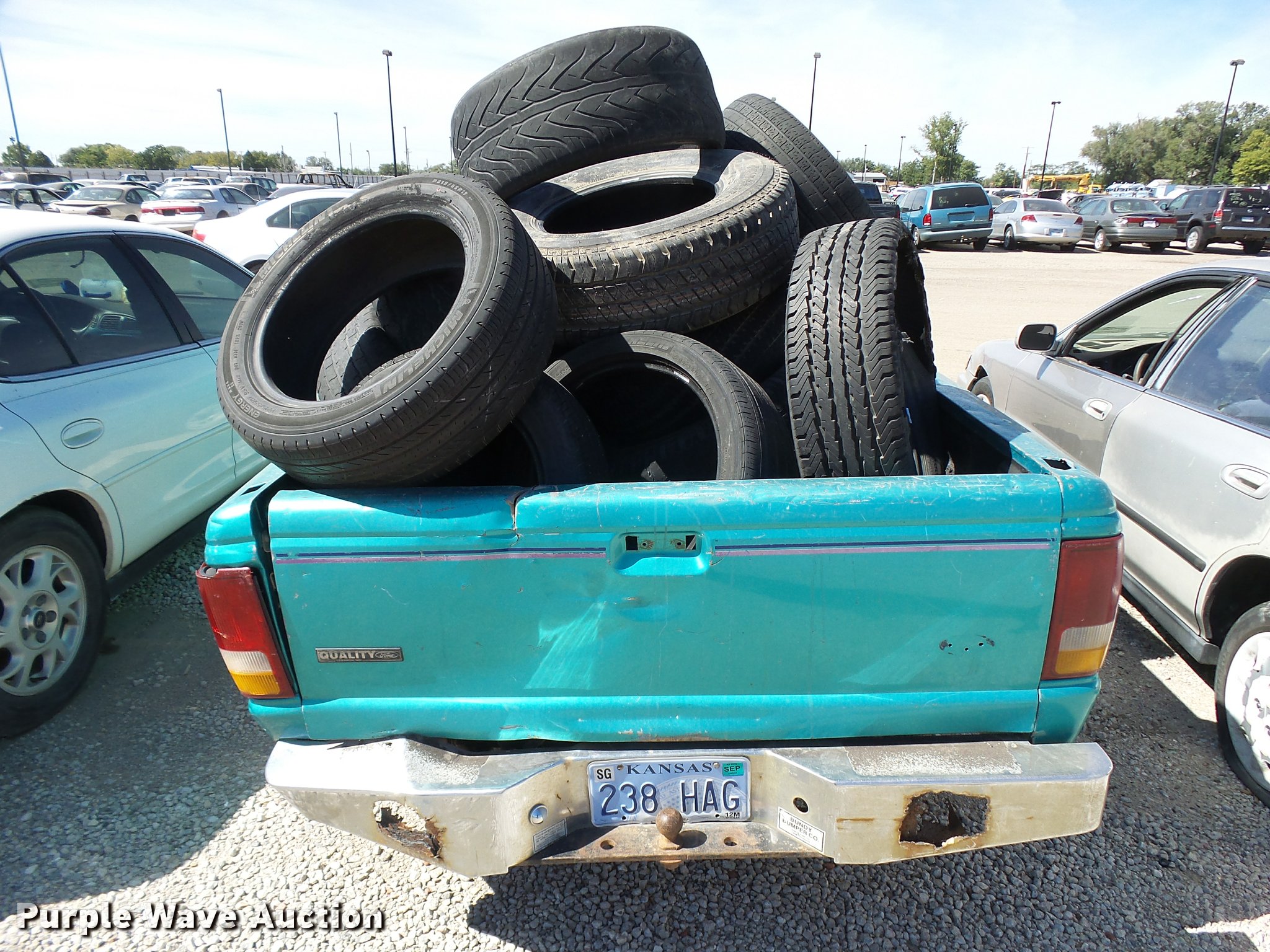 Purple Wave is selling a used Compact Pickup or Van in Kansas. This item is a 1994 Ford Ranger pickup truck with the following: 64,082 miles on odometer, 2.3L L4 SOHC 8V gas engine, Manual transmission, AC and heat, AM/FM/CD, Manual windows and locks, Cloth interior, 225/70R14 tires, Rust, Hood will not open, Cracked windshield, Case# 16C049071