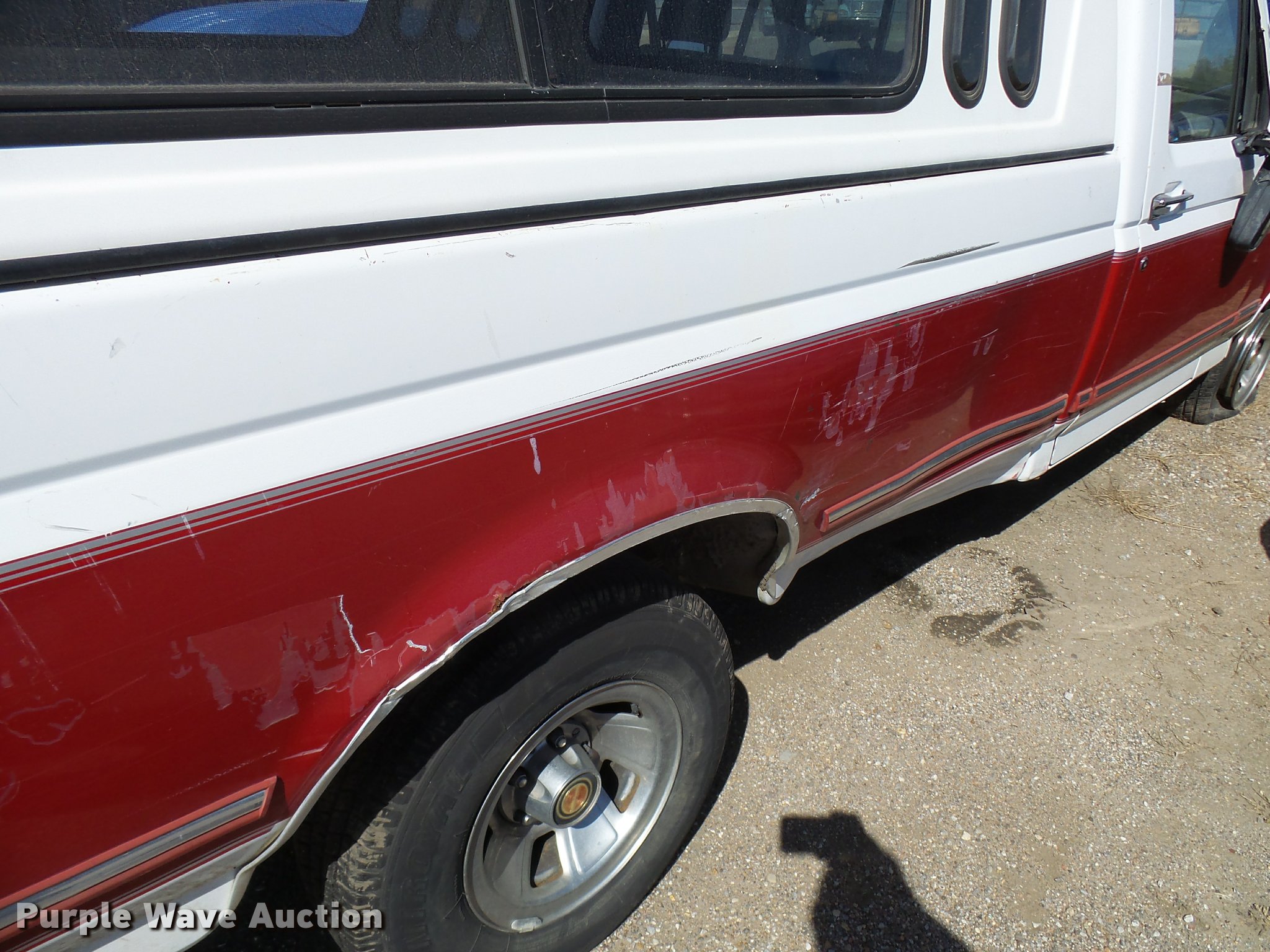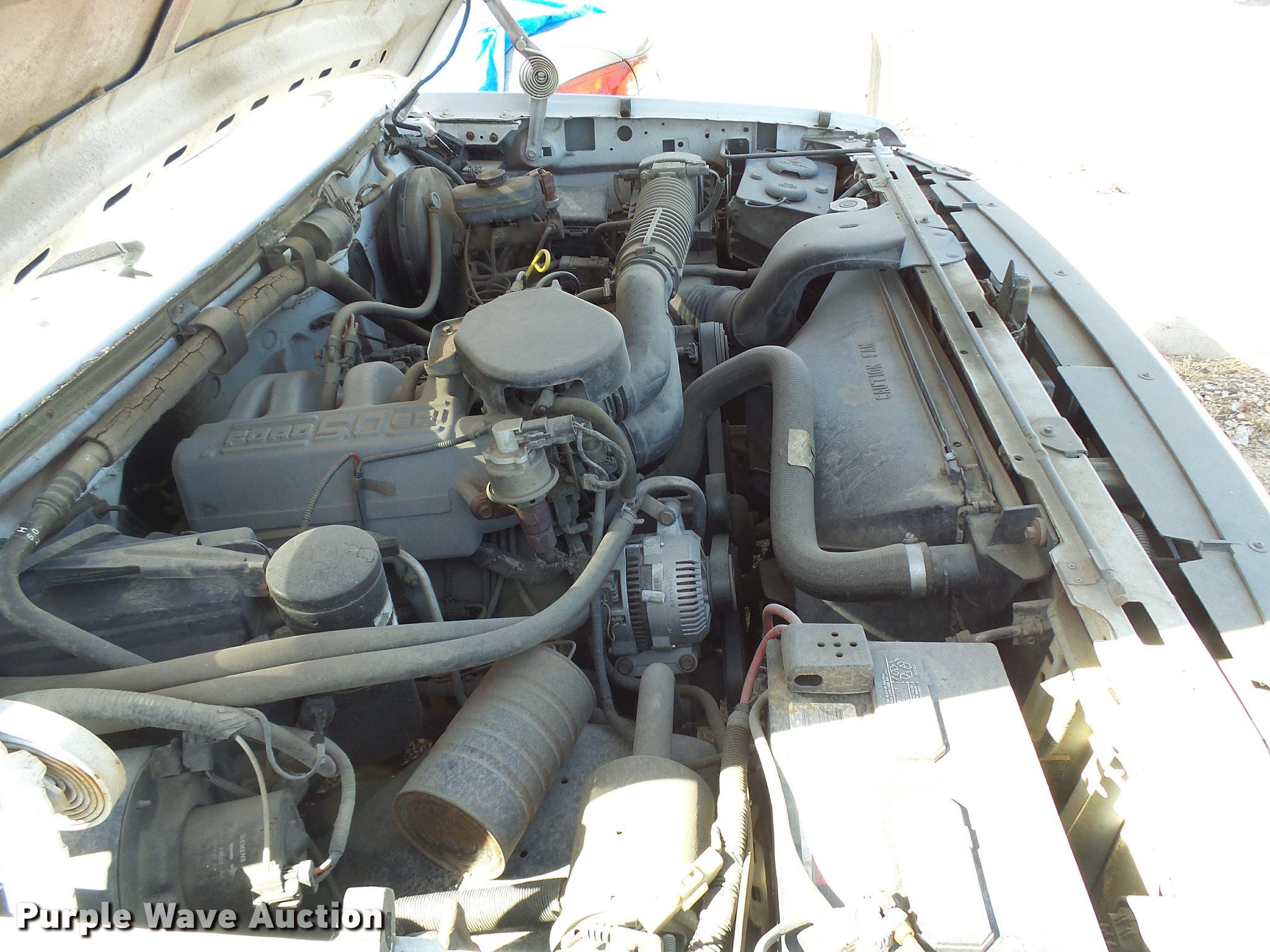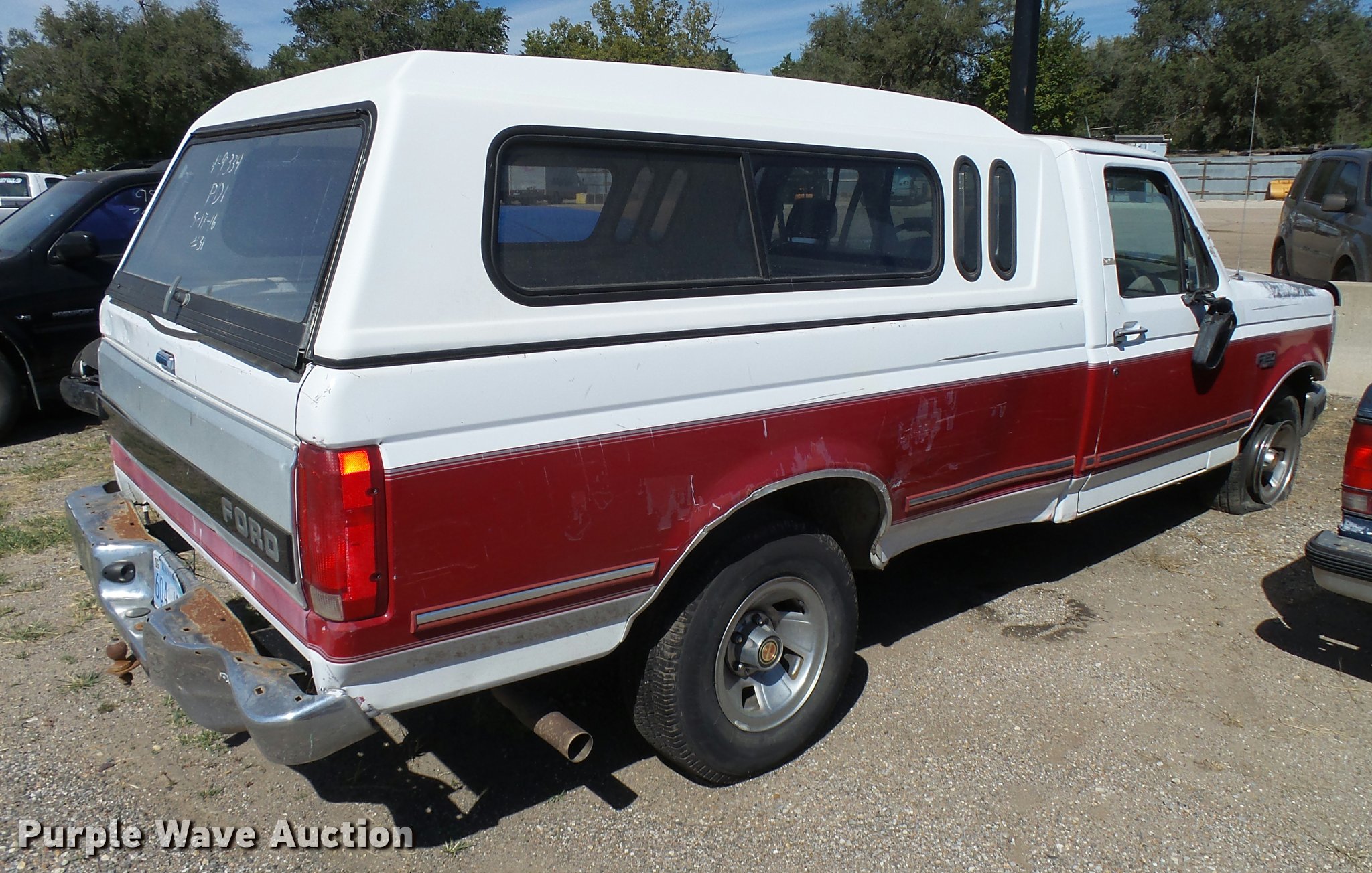 Purple Wave is selling a used 1/2 Ton Pickup or Van in Kansas. This item is a 1994 Ford F150 pickup truck with the following: Unknown miles on odometer, 5.0L V8 OHV 16V gas engine, Automatic transmission, AC and heat, Tilt, Cruise, AM/FM/cassette, Power windows, locks, mirrors, and seat, Cloth interior, Receiver hitch, 235/75R15 tires, Paint faded/peeling, Rust, Mirror broken, Tires flat, Case# 16C033716