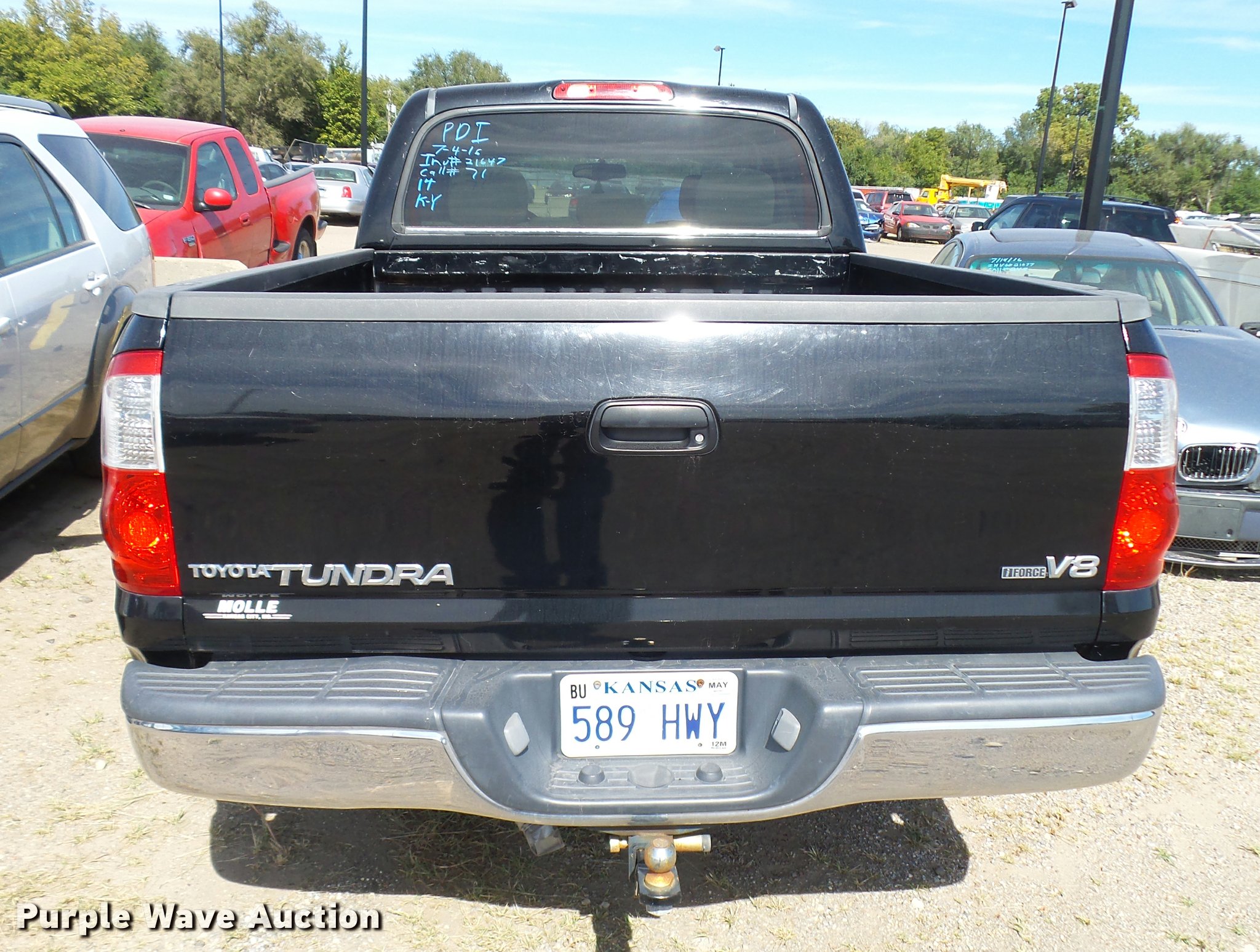 Purple Wave is selling a used 1/2 Ton Pickup or Van in Kansas. This item is a 2005 Toyota Tundra pickup truck with the following: Unknown miles on odometer, 4.7L V8 DOHC 32V gas engine, Automatic transmission, AC and heat, AM/FM/CD, Power windows, locks, and mirrors, Cloth interior, Running boards, Receiver hitch, 265/65R17 tires, Doors locked, Tires flat, Dents and scratches, Case# 16C512753