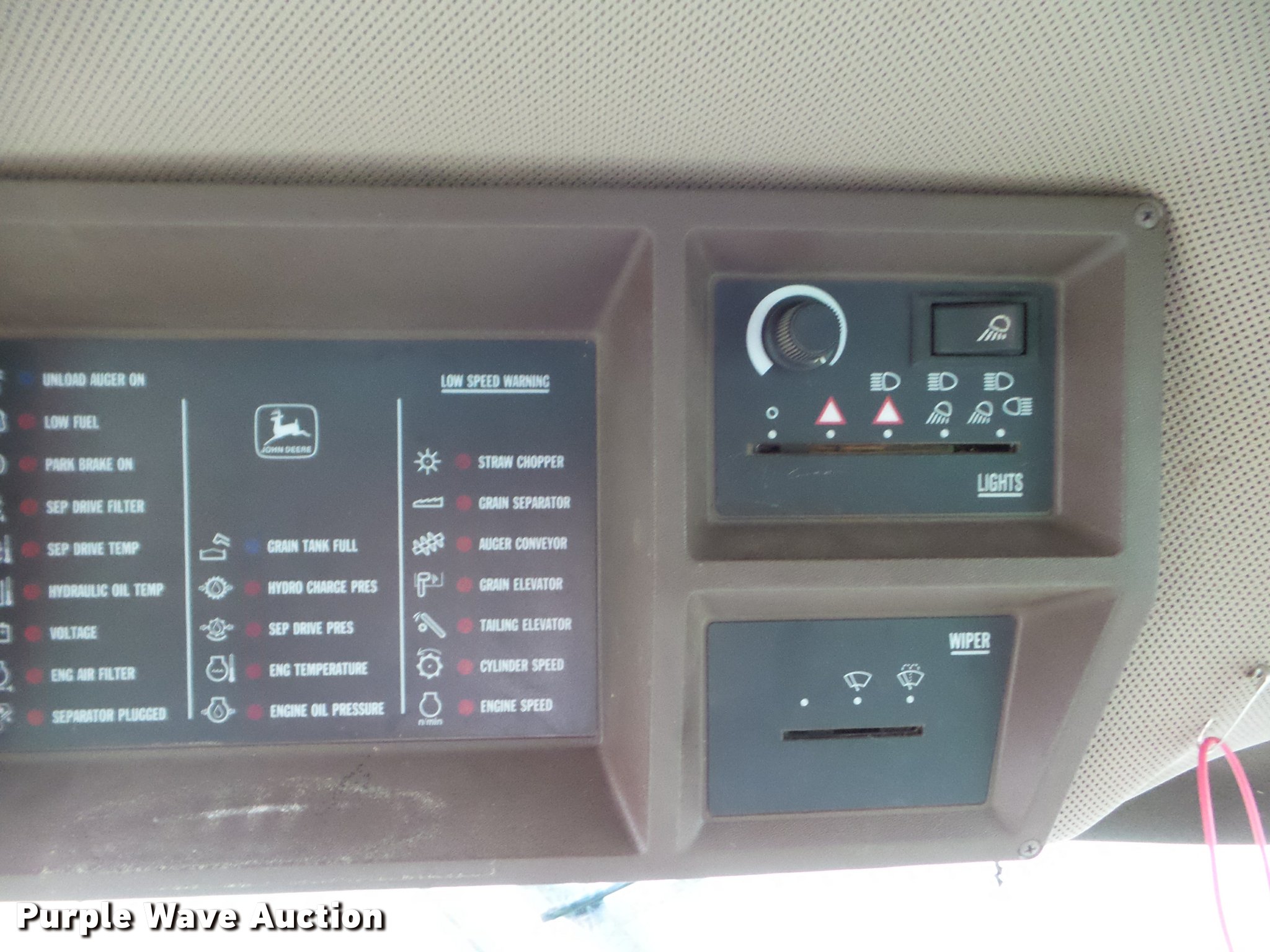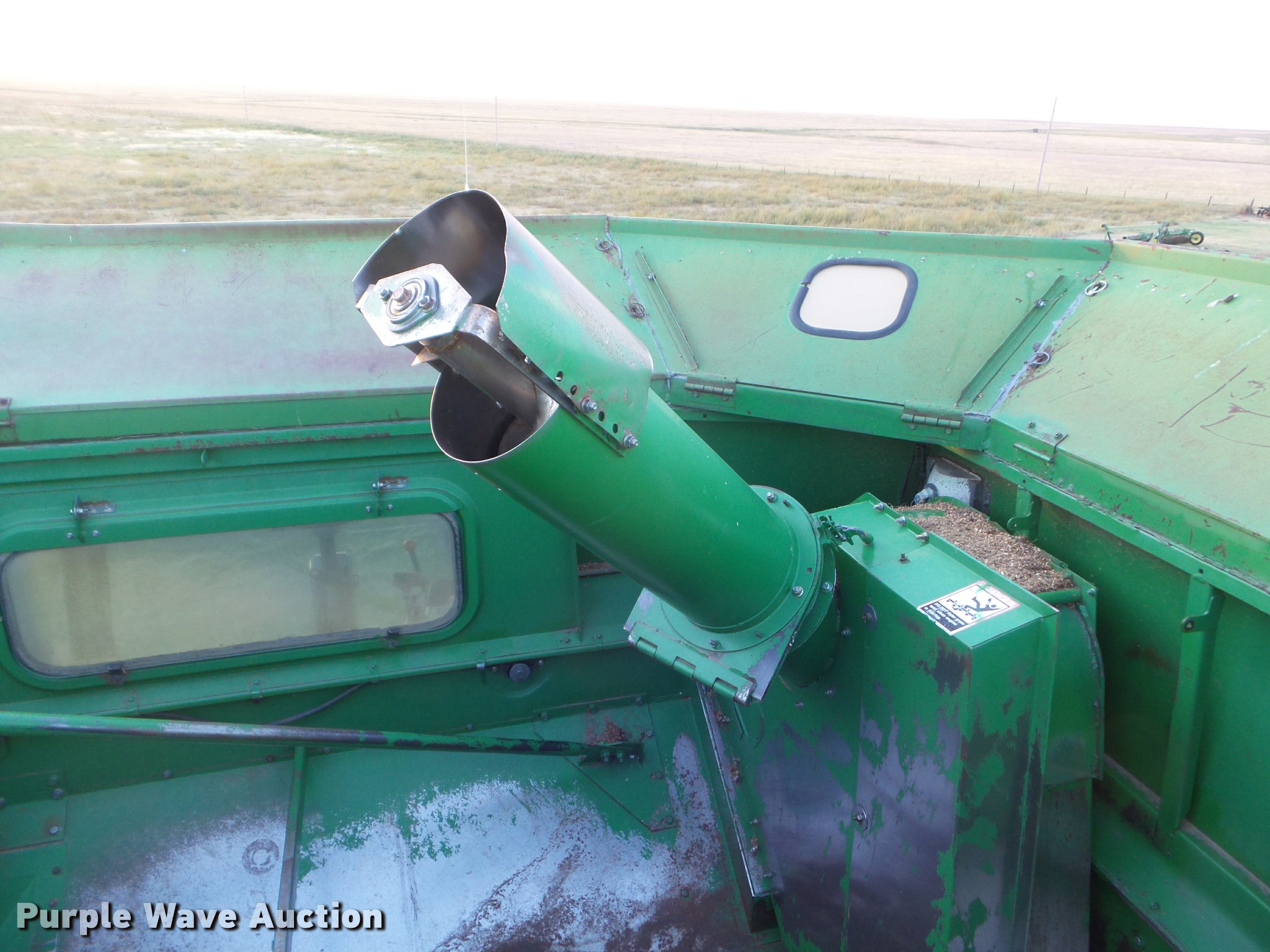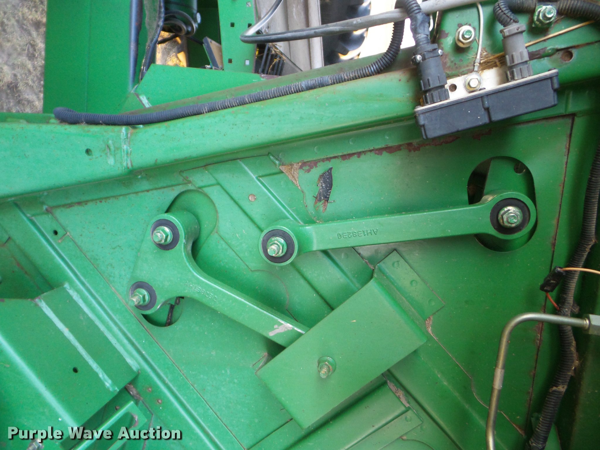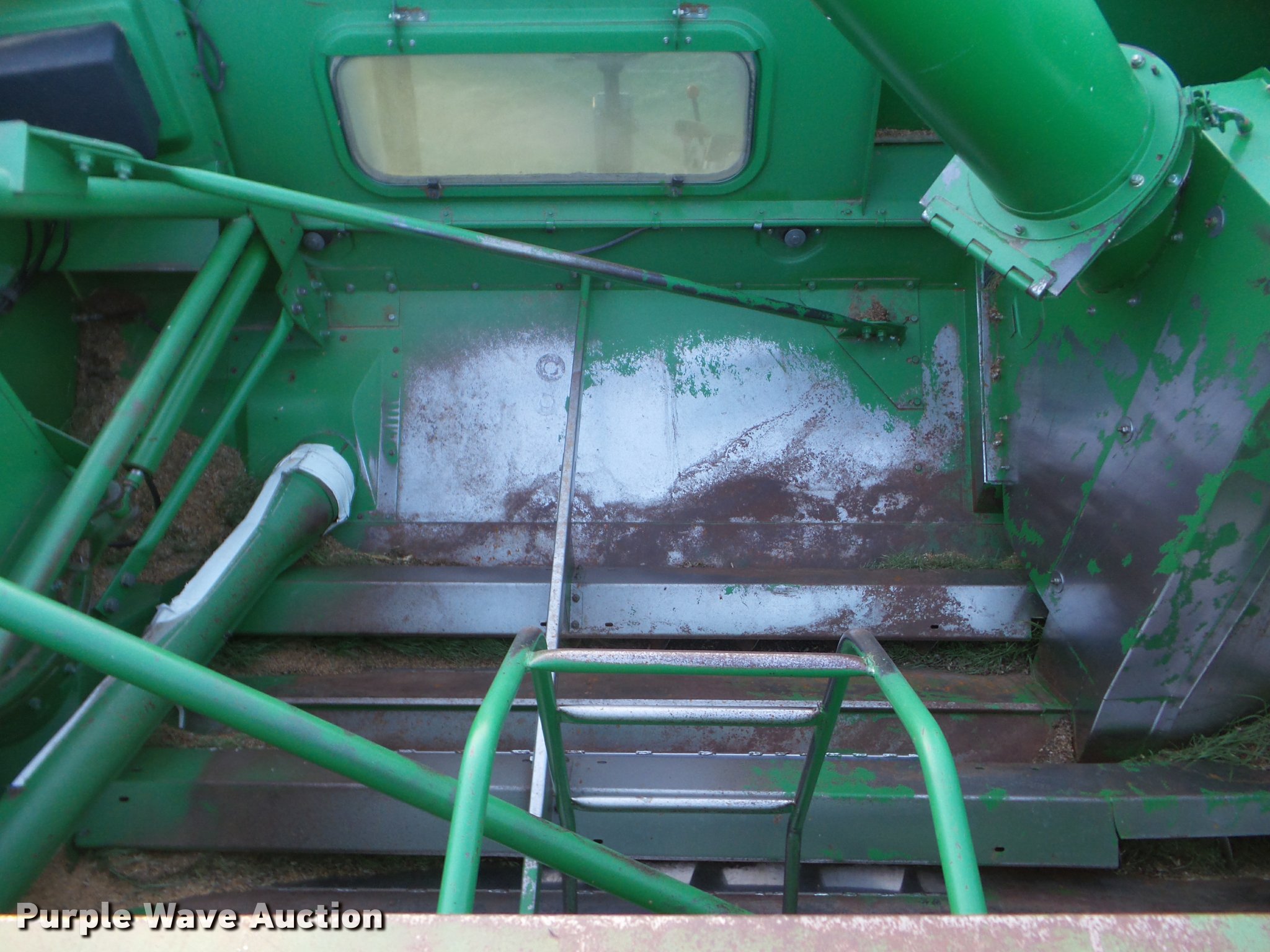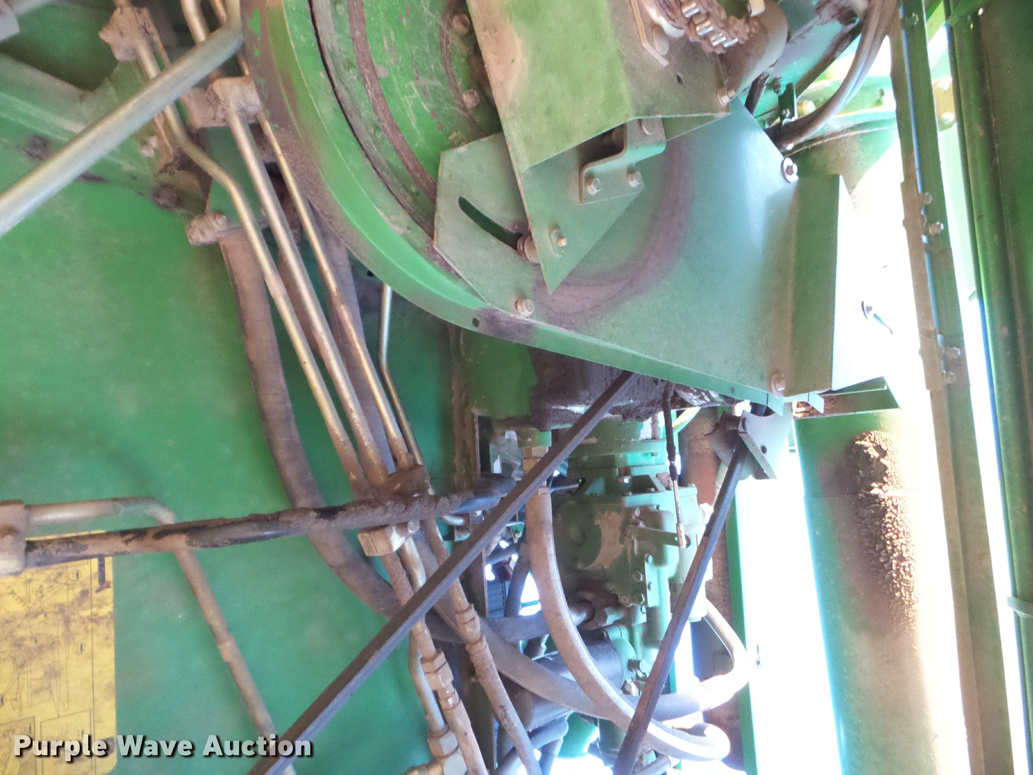 Purple Wave is selling a used Combine in Kansas. This item is a 1998 John Deere 9600 combine with the following: 5,615 engine hours on meter, 3,884 separator hours on meter, John Deere six cylinder turbo diesel engine, Hydrostatic transmission, 3F-3R gears, Feederhouse, Variable speed, Reverser, Single point header coupler, AC and heat, Tilt steering wheel, AM/FM, Air suspension seat, Instructor's seat, Block heater, Straw chopper, Bin extensions, Work lights, 20' unloading auger, 30.5-32 front tires, 16.9-26 rear tires, CB radio not included, Serial H09600X671542
