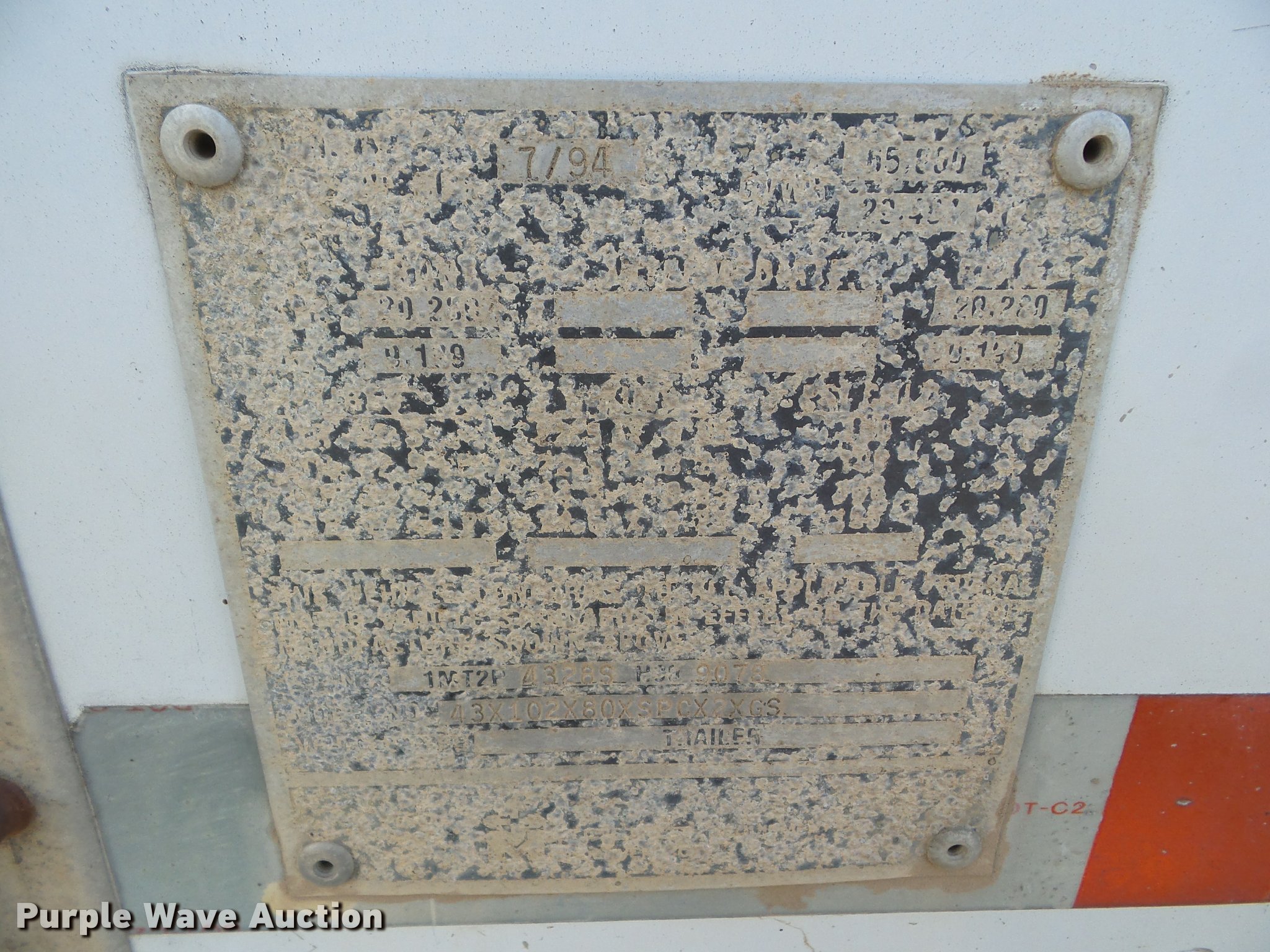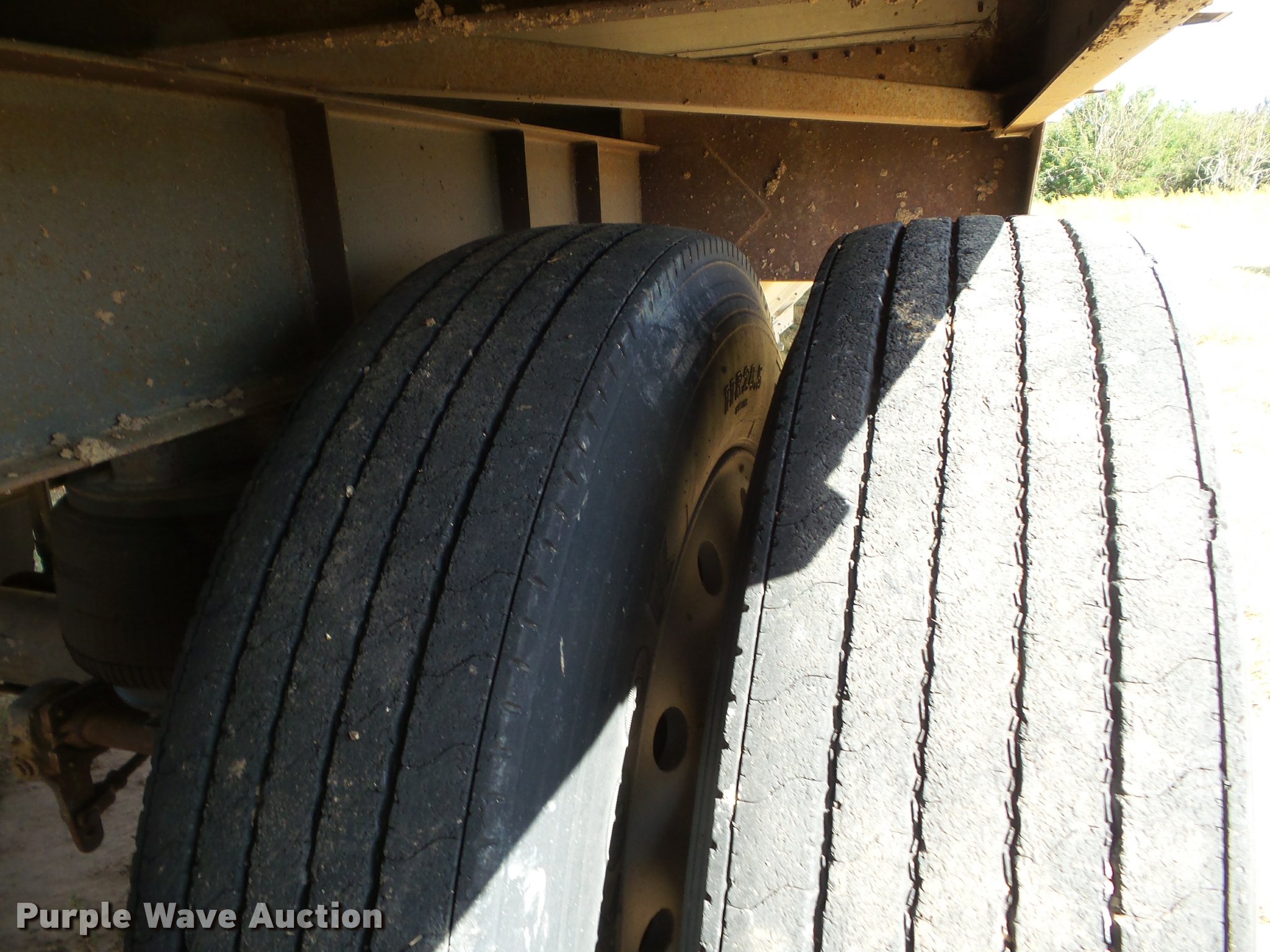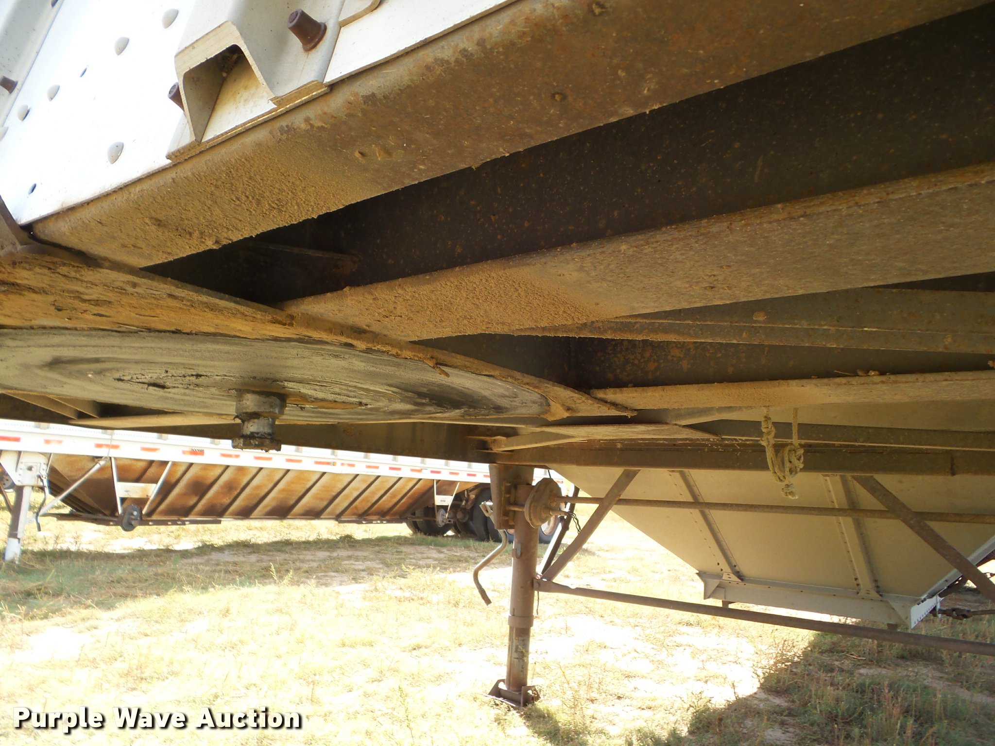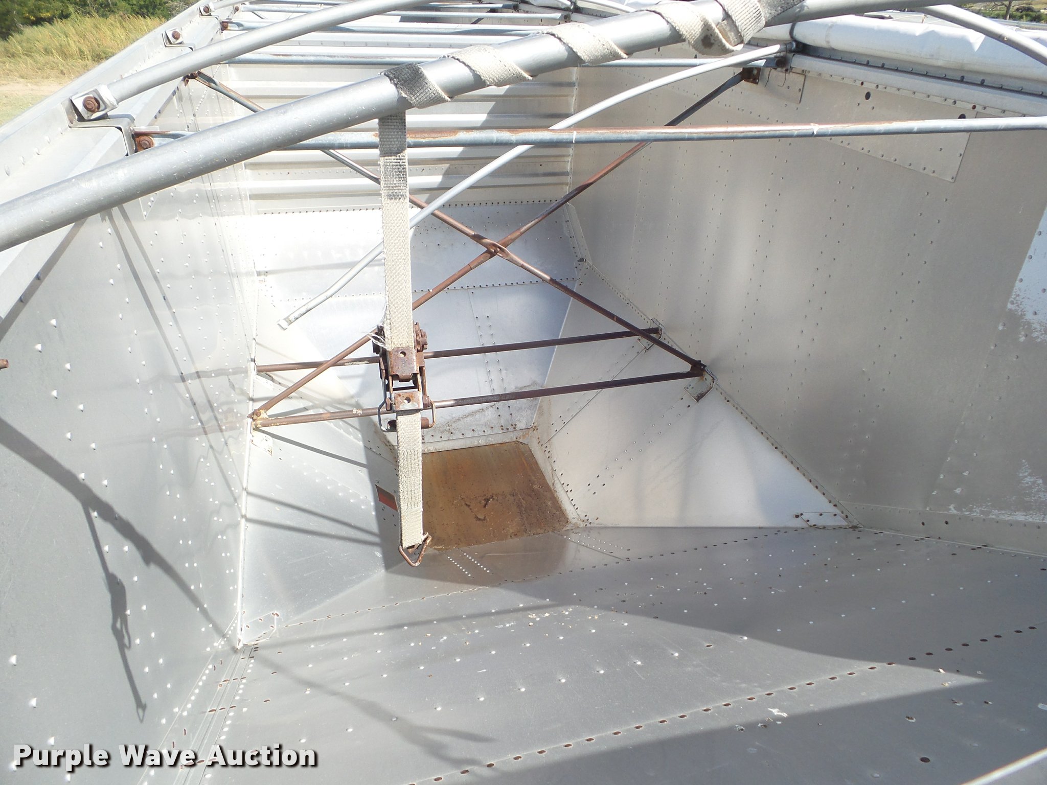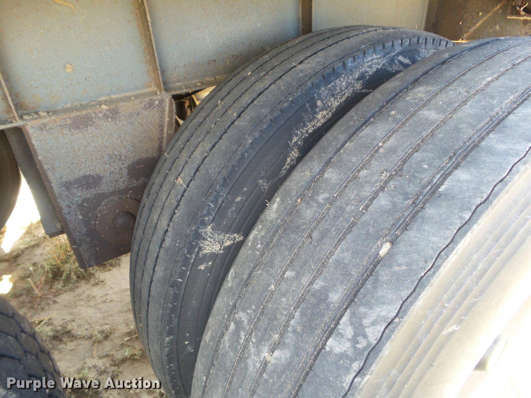 Purple Wave is selling a used Grain or Commodity Trailer in Kansas. This item is a 1995 Merritt double hopper grain trailer with the following: 43'L x 102"W, 80" side height, Manual trap gates, Front and rear ladders, Front and rear platforms, Rollover tarp, Aluminum construction, Fifth wheel plate, Dual leg two speed landing gear, Air suspension, Air brakes, Tandem axle, Aluminum wheels, 11R24.5 tires, GVWR 65,000 lbs