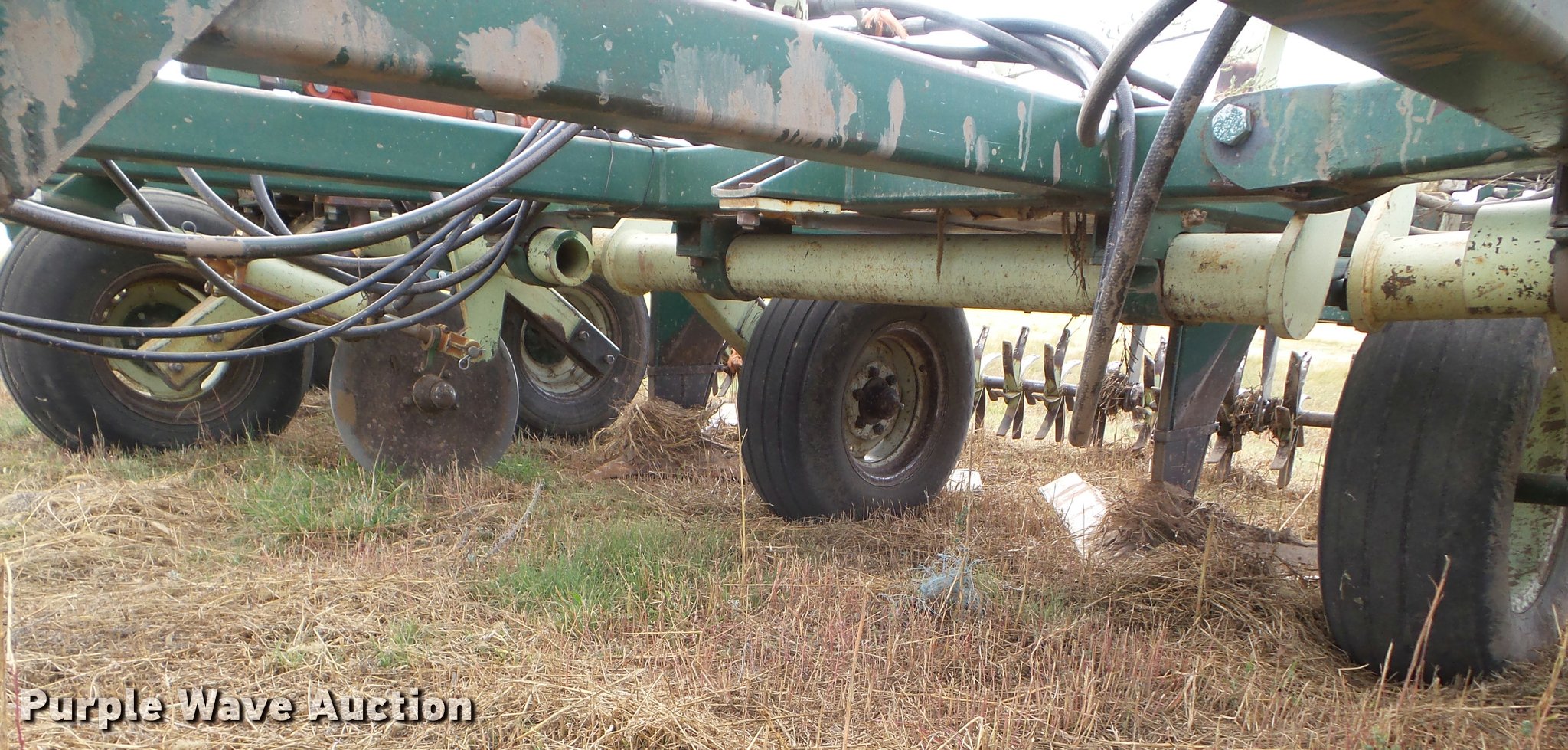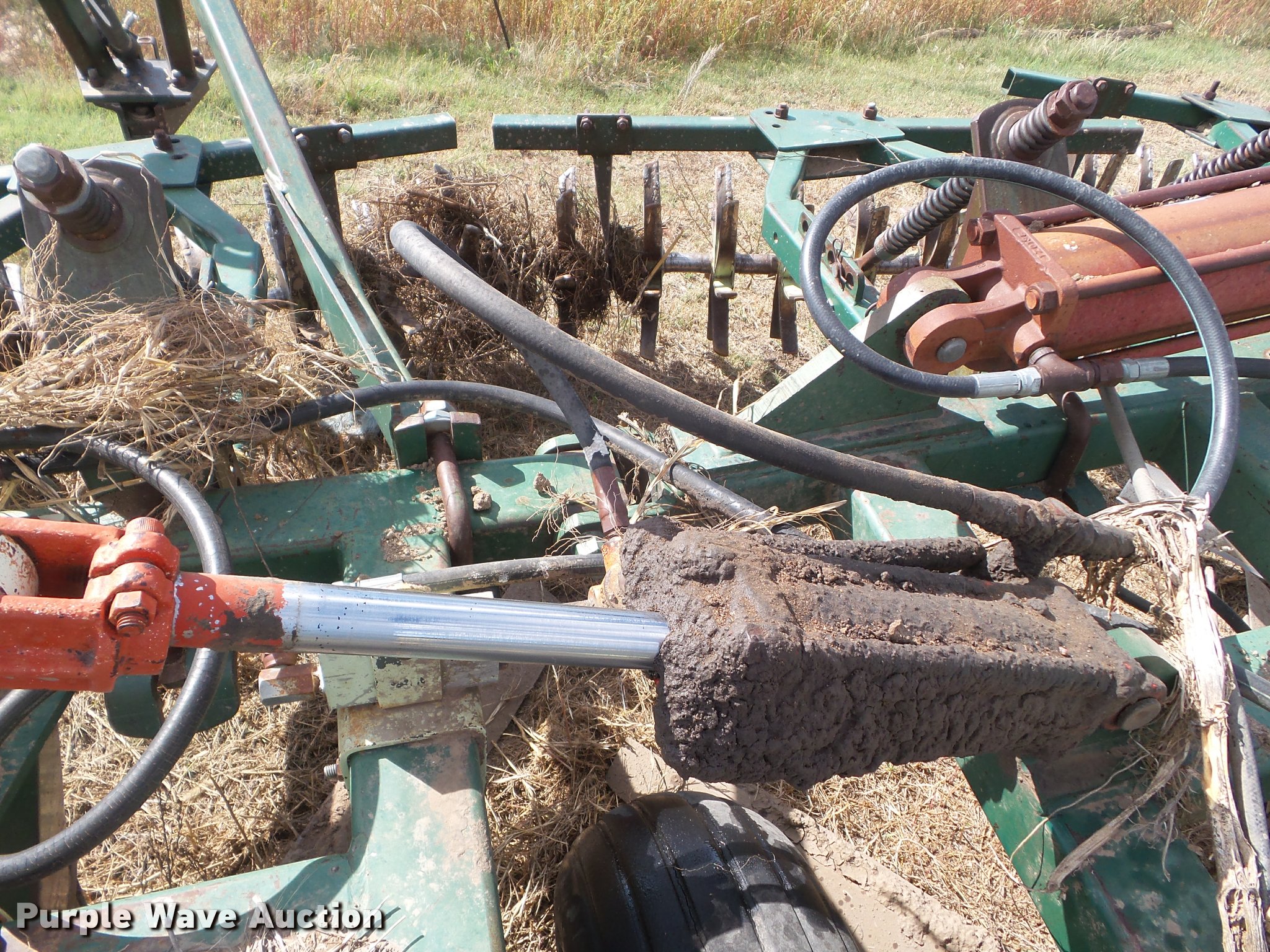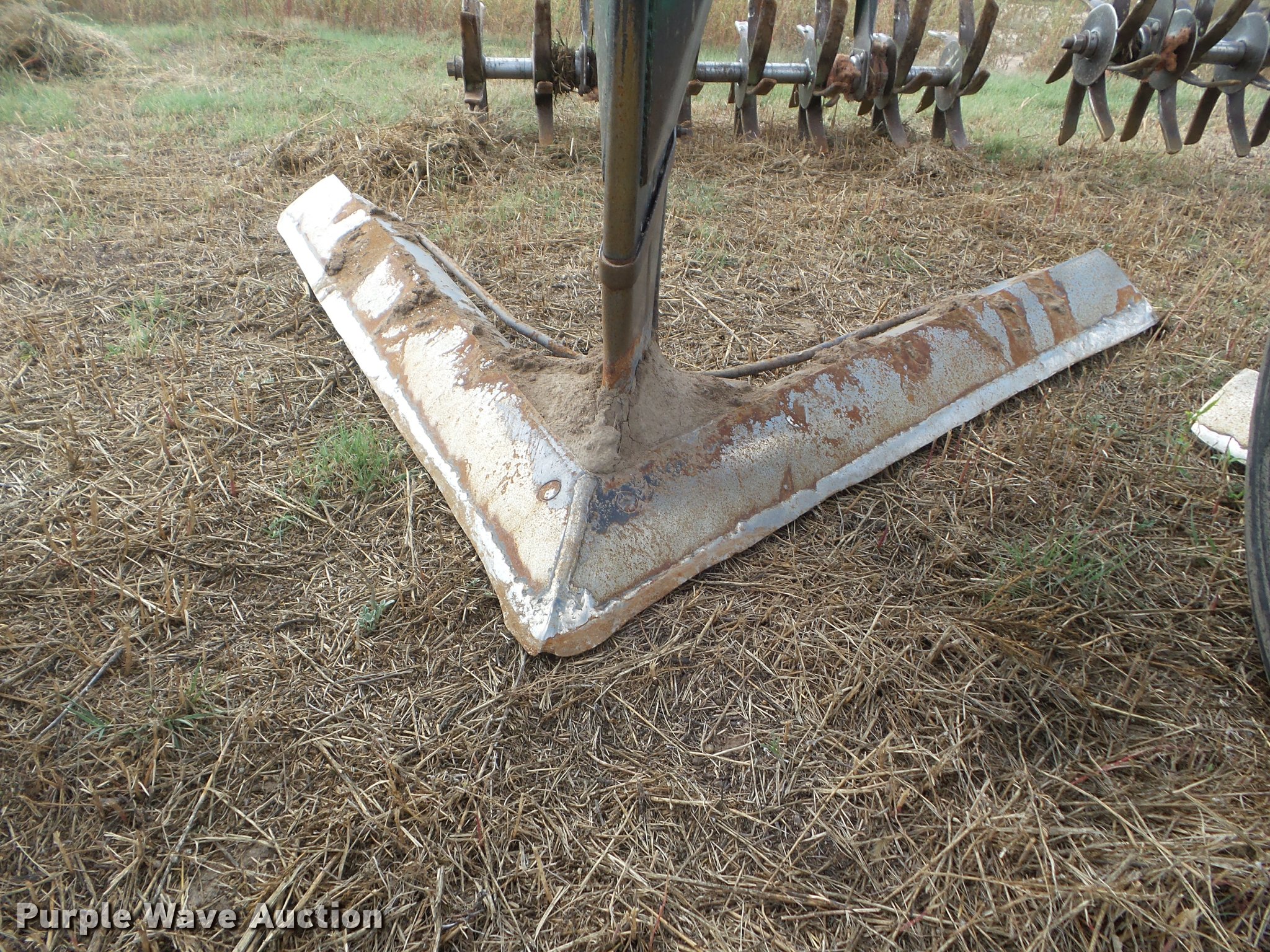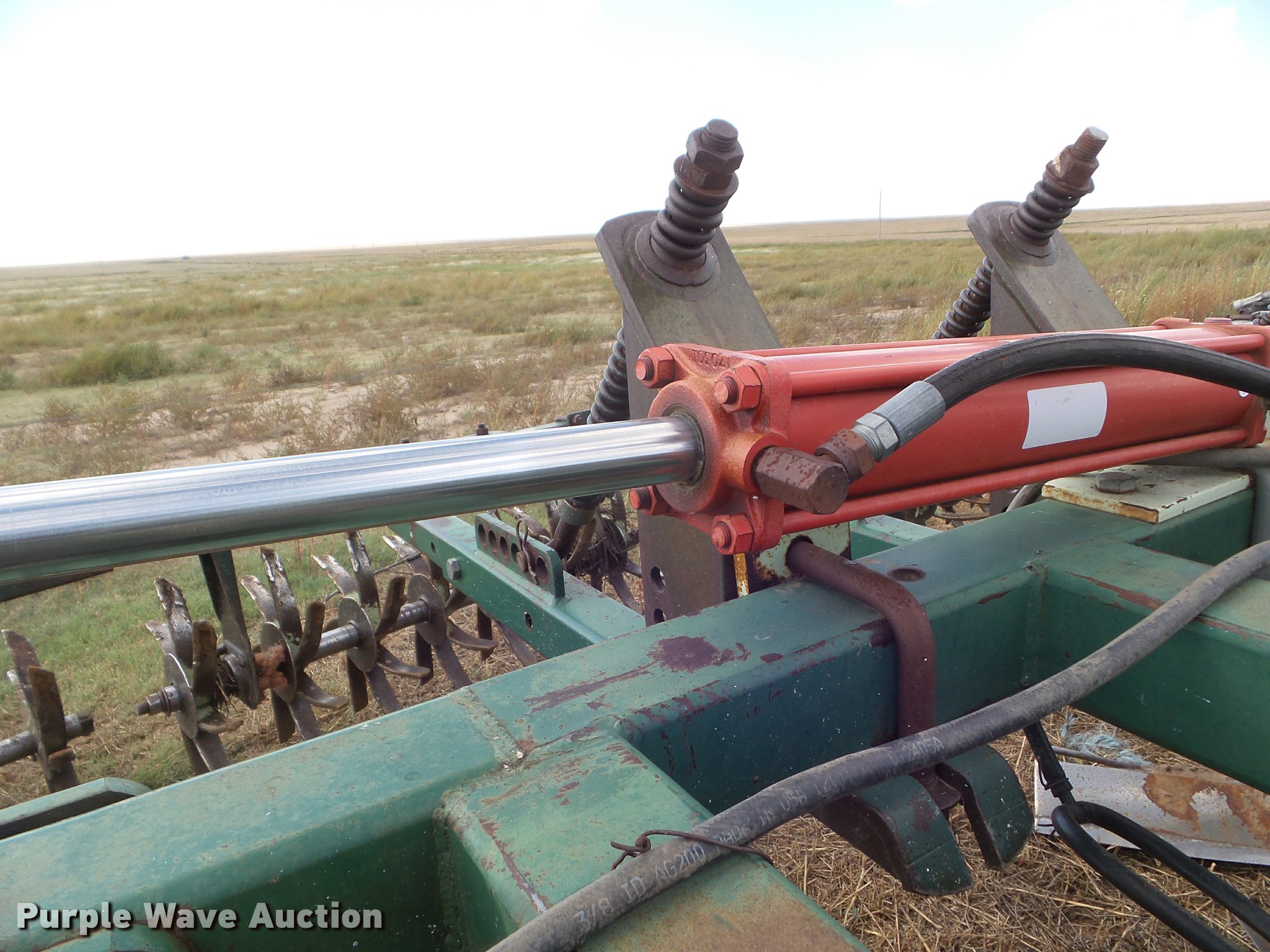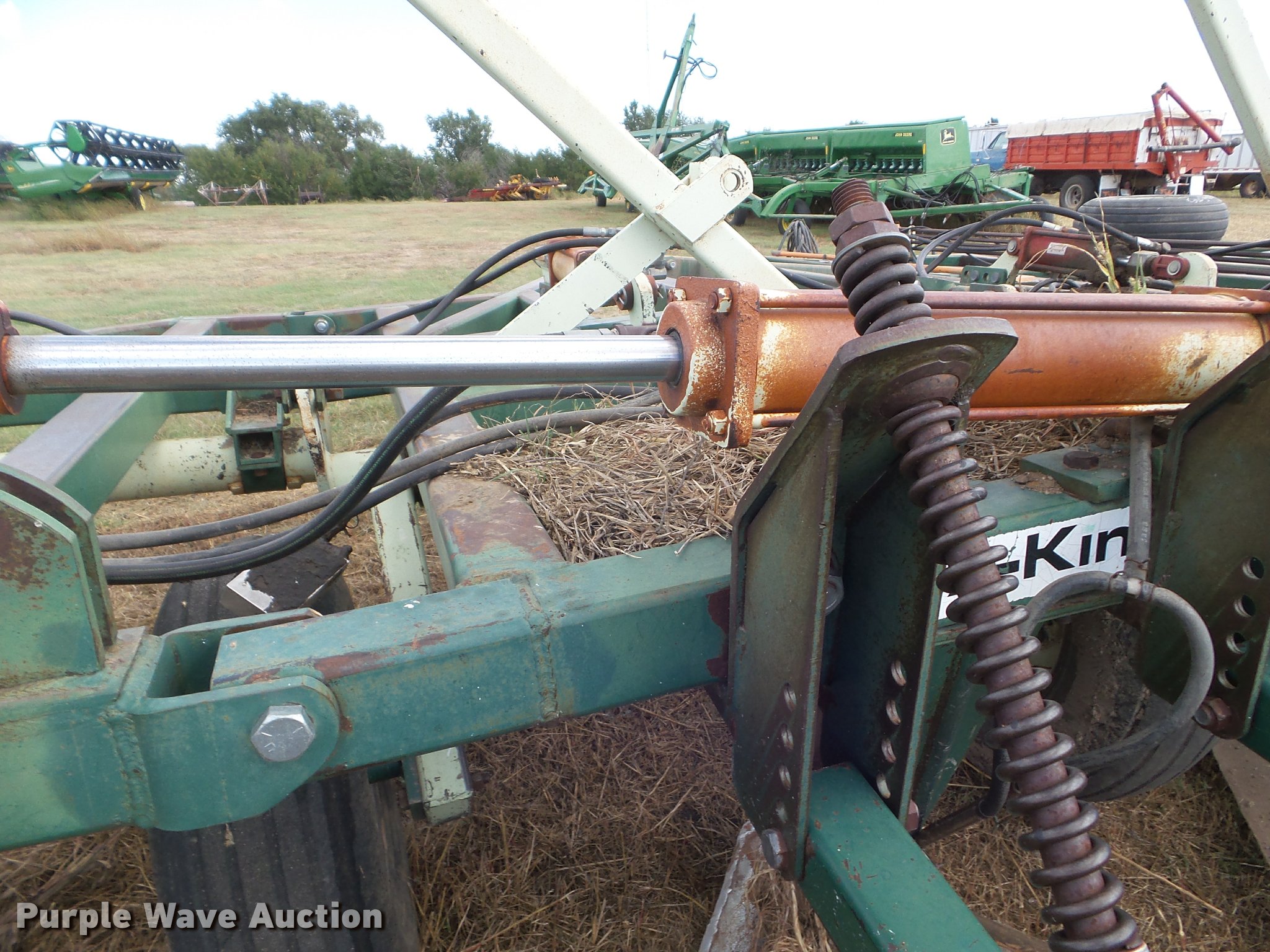 Purple Wave is selling a used Field Cultivator or Sweep Plow in Kansas. This item is a Flex King 9x5 sweep plow with the following: 40'W, (9) shanks, 5' sweep width, Hydraulic lift and fold, Rolling pickers/treader, Anhydrous hookups, Pin hitch, Rear hitch, 11-15 tires