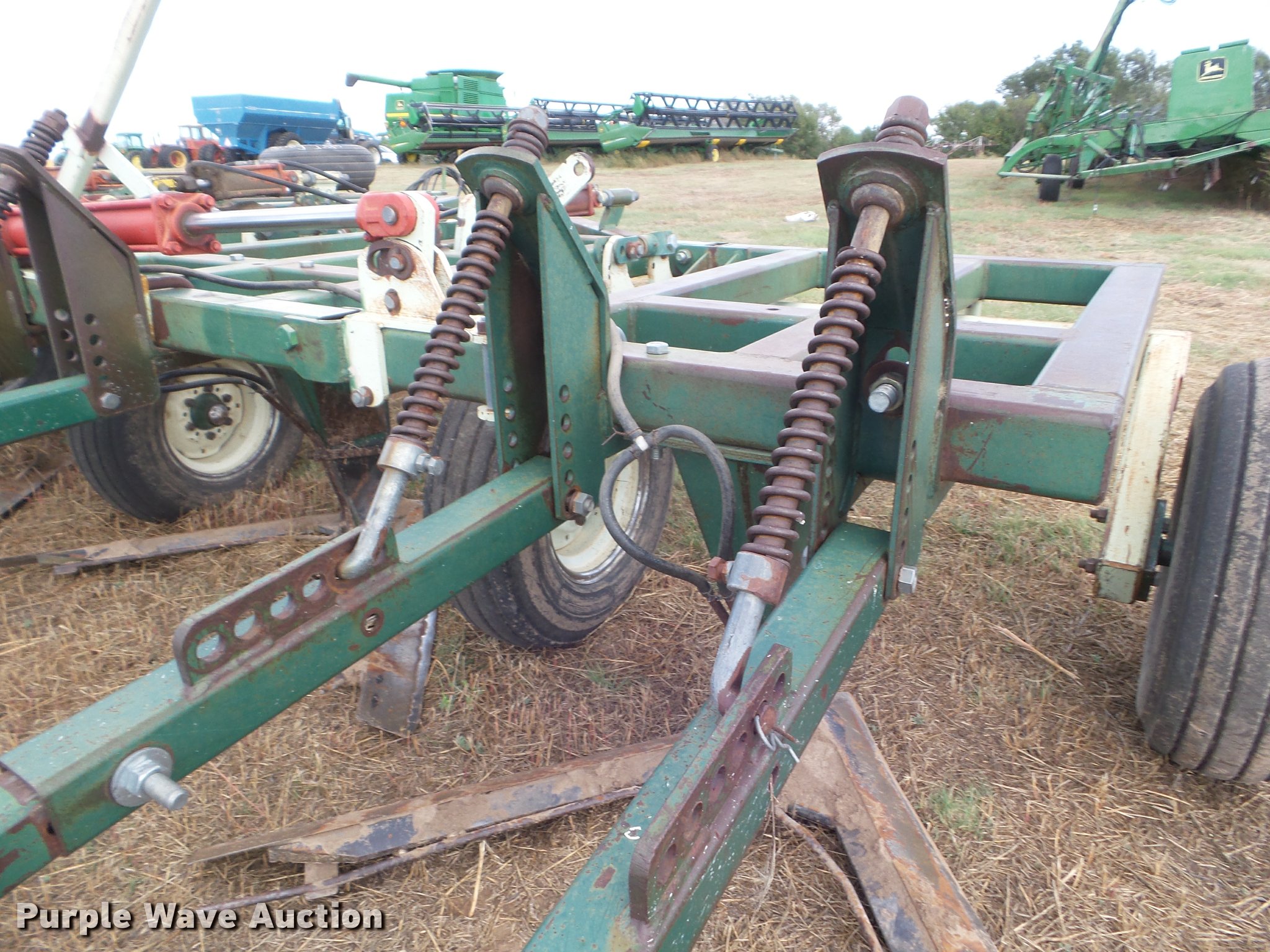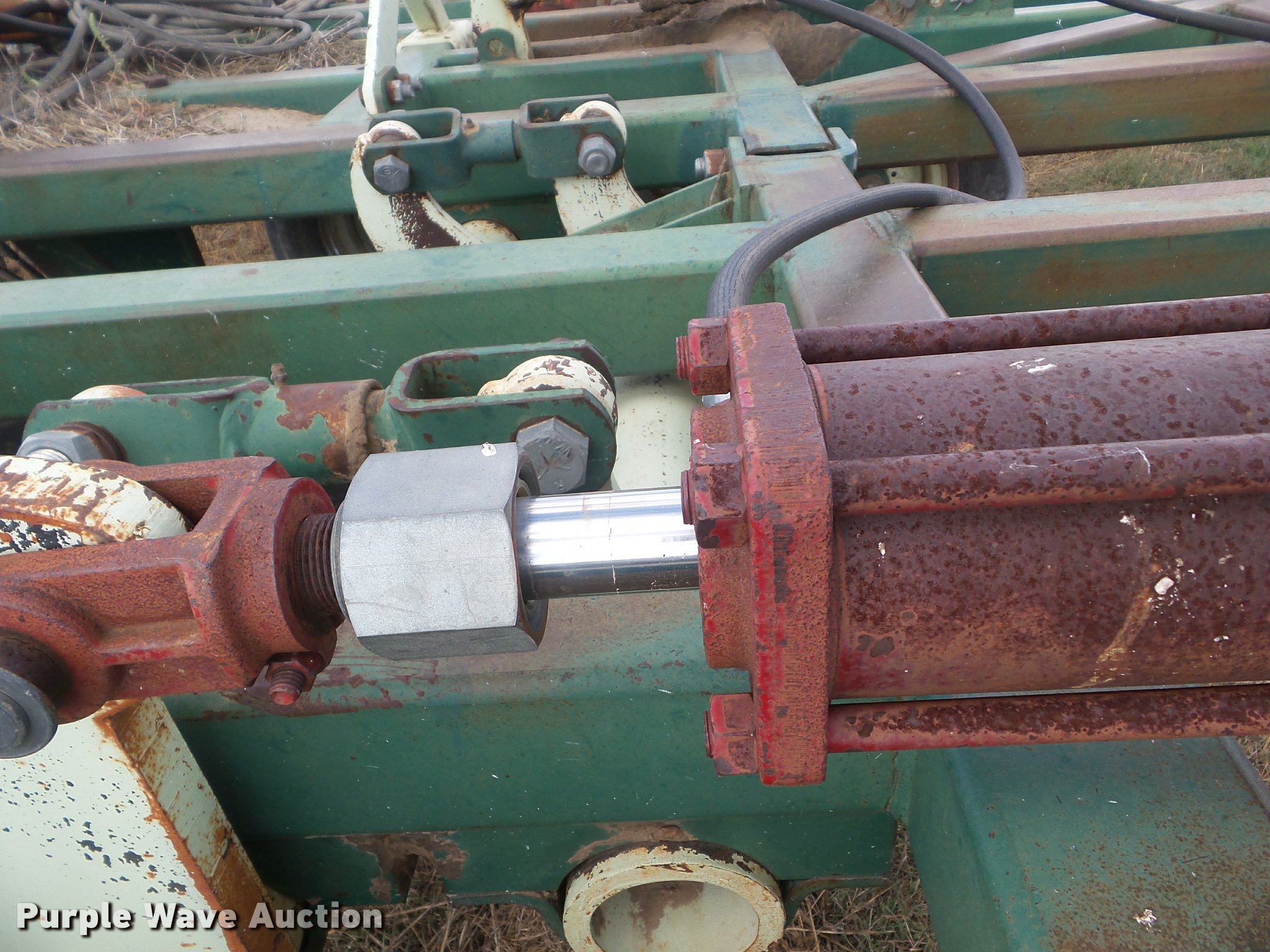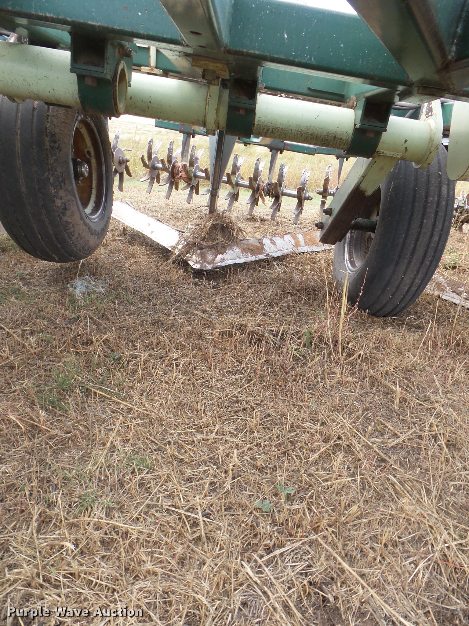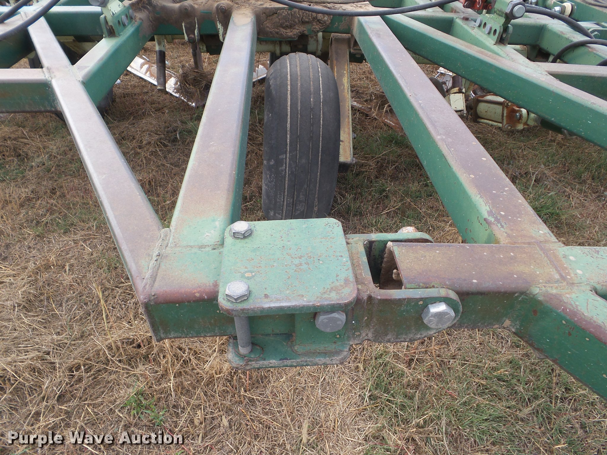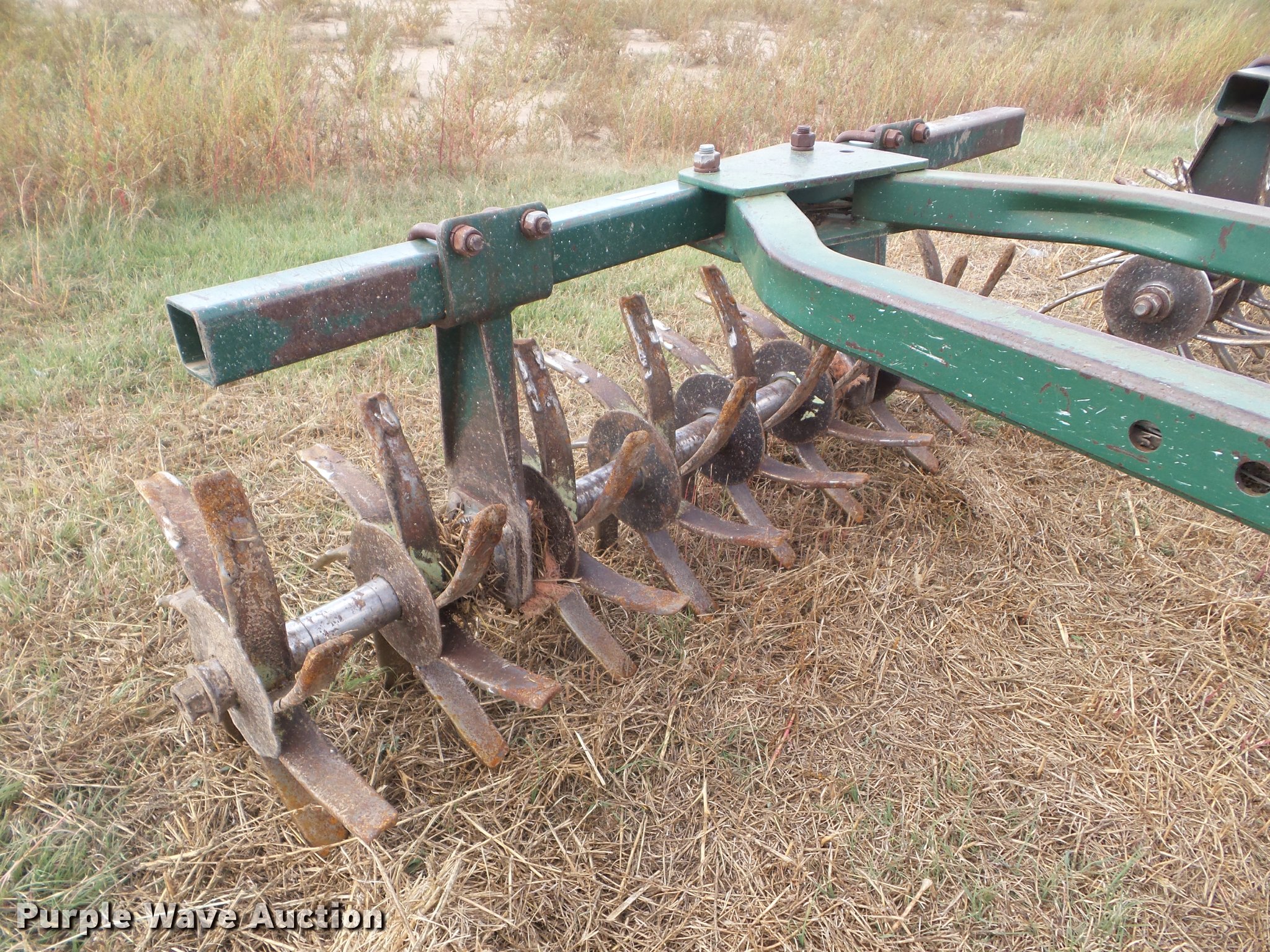 Purple Wave is selling a used Field Cultivator or Sweep Plow in Kansas. This item is a Flex King 9x5 sweep plow with the following: 40'W, (9) shanks, 5' sweep width, Hydraulic lift and fold, Rolling pickers/treader, Anhydrous hookups, Pin hitch, Rear hitch, 11-15 tires