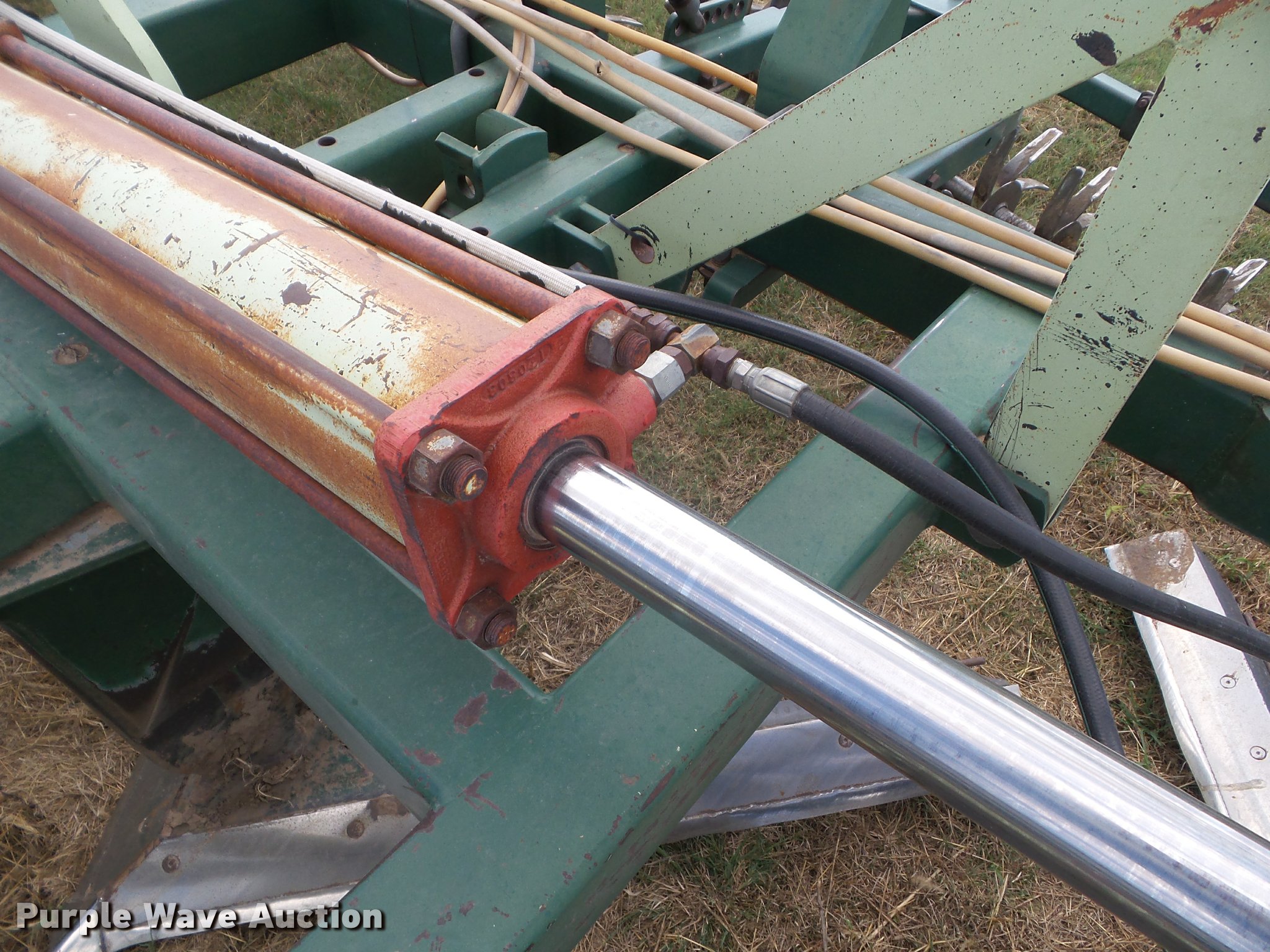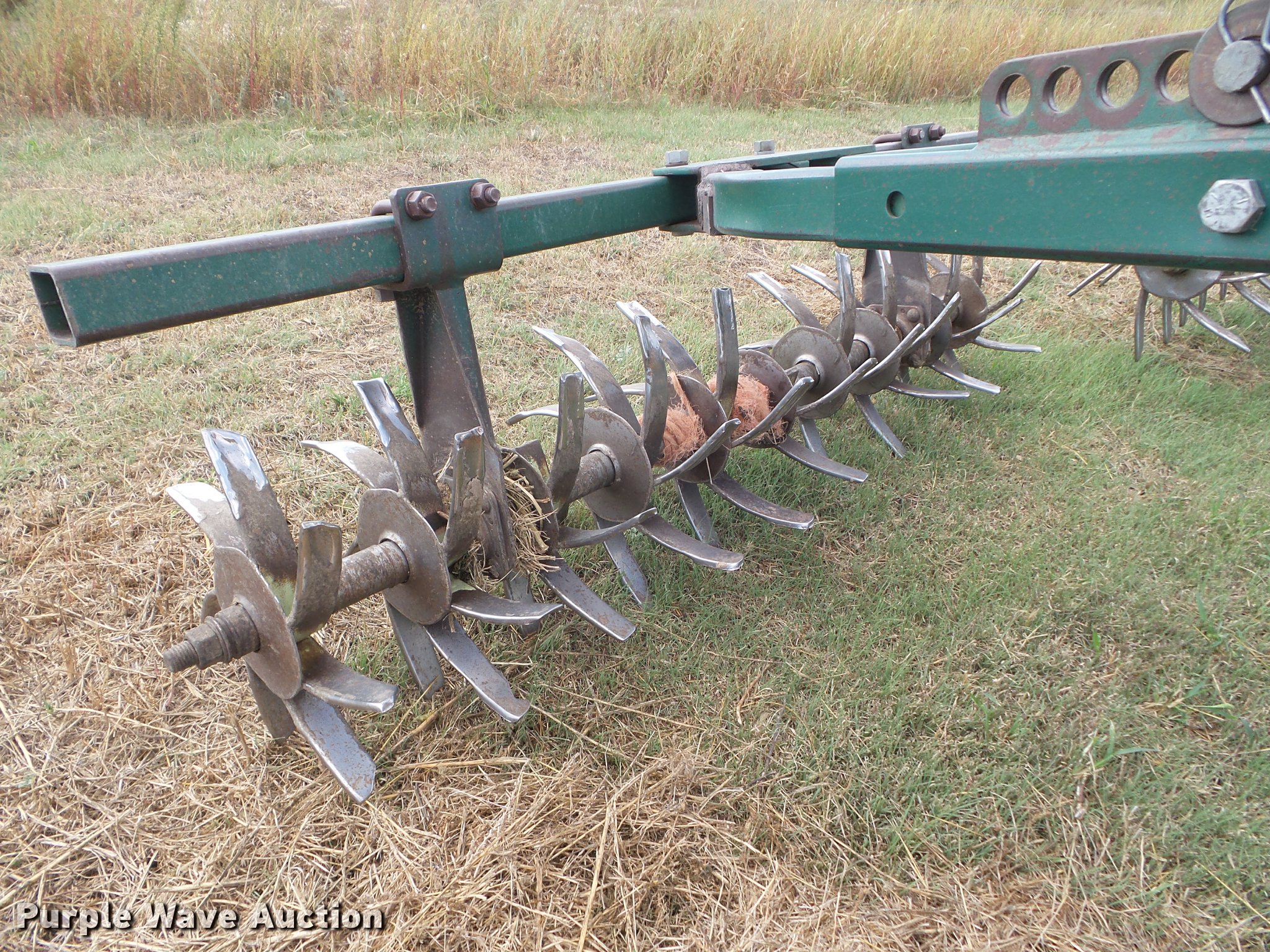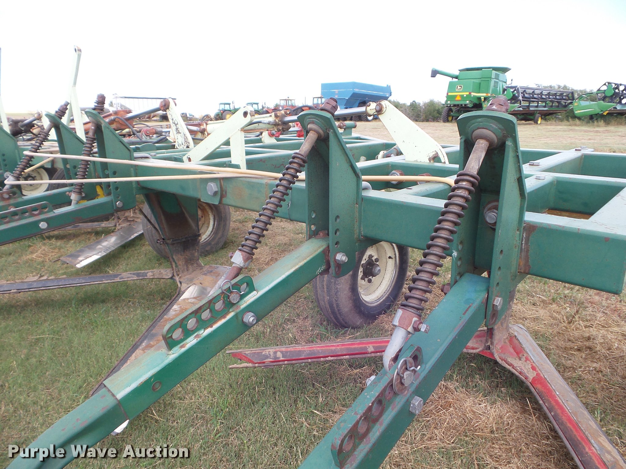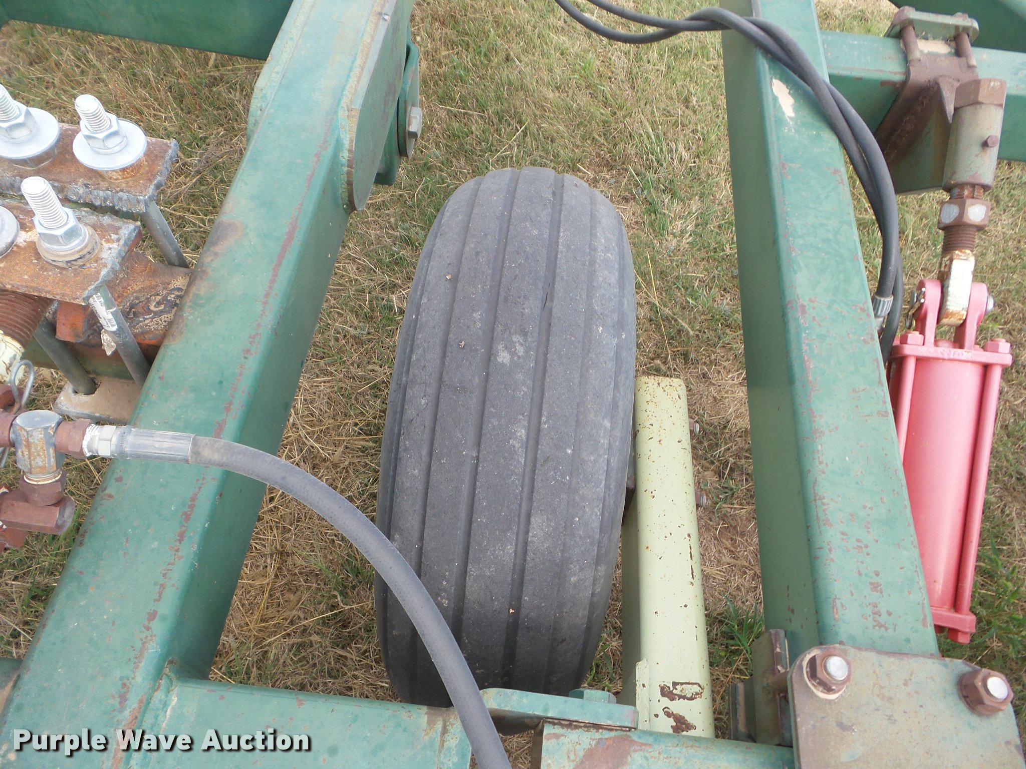Purple Wave is selling a used Field Cultivator or Sweep Plow in Kansas. This item is a Flex King 9x6 sweep plow with the following: 56'W, (9) shanks, 6' sweep width, Hydraulic lift and fold, Rolling pickets/treader, Anhydrous hookups, Pin hitch, Rear hitch, 11-15 tires