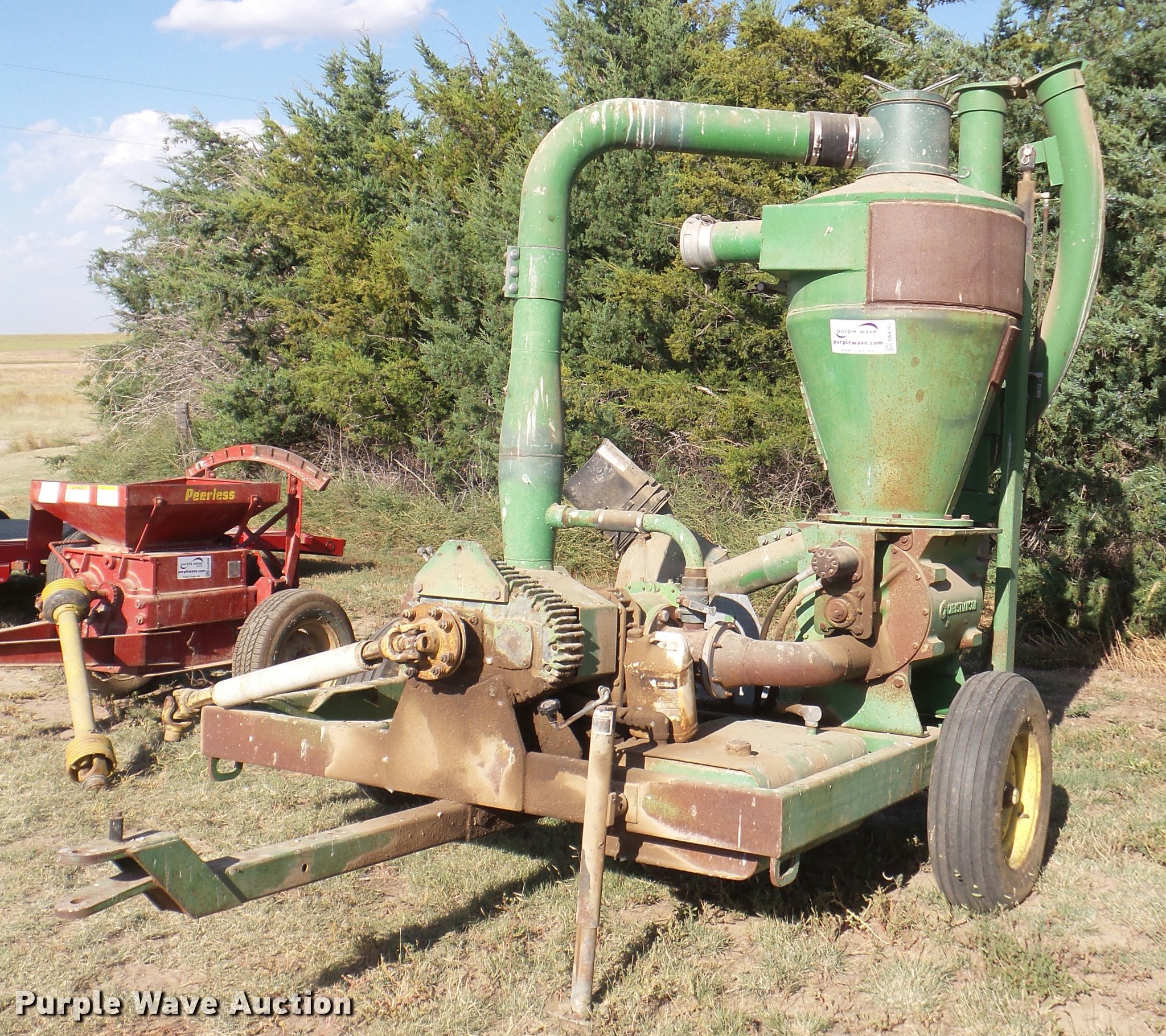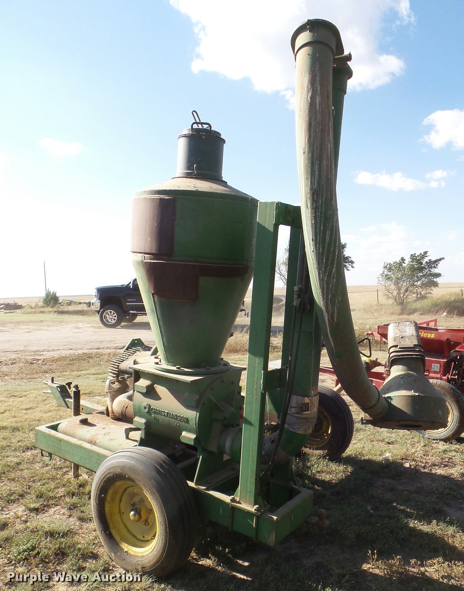 Purple Wave is selling a used Other Grain or Fertilizer Handling in Kansas. This item is a Handlair pneumatic conveying system grain vacuum with the following: Ground control station, 1000 PTO, Pin hitch, 7.60-15SL tires, Unknown operating condition