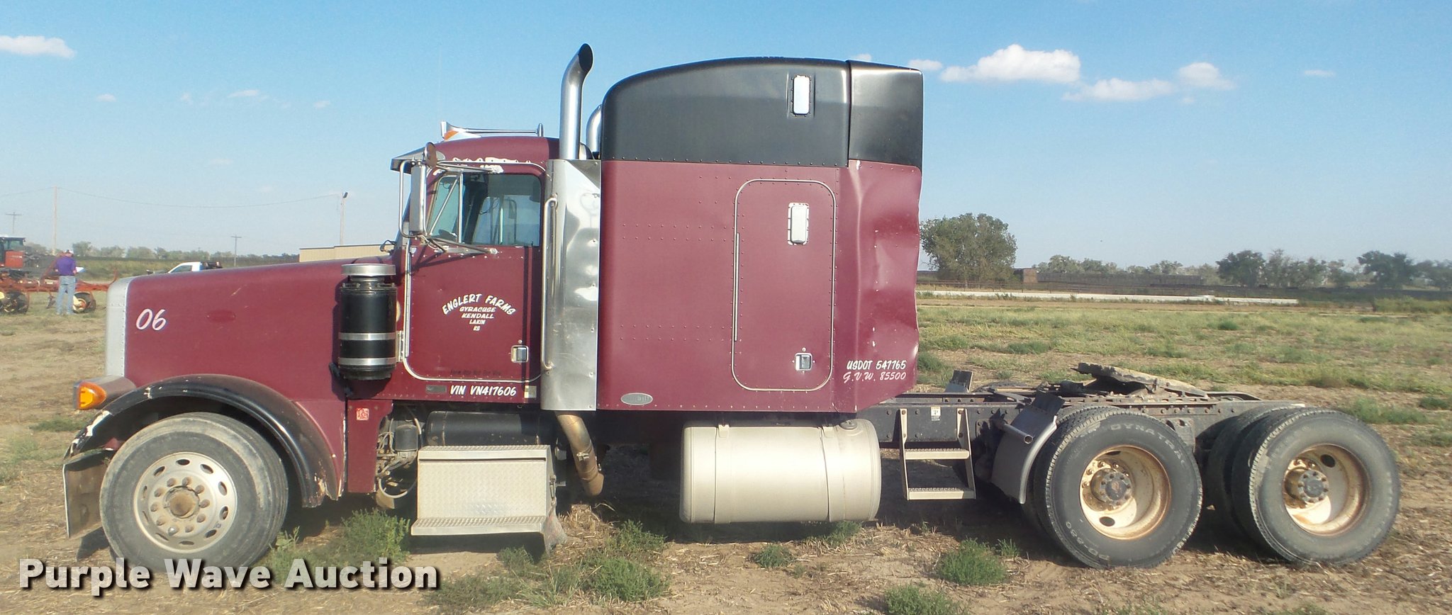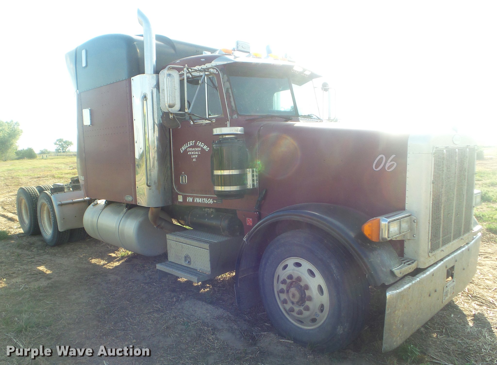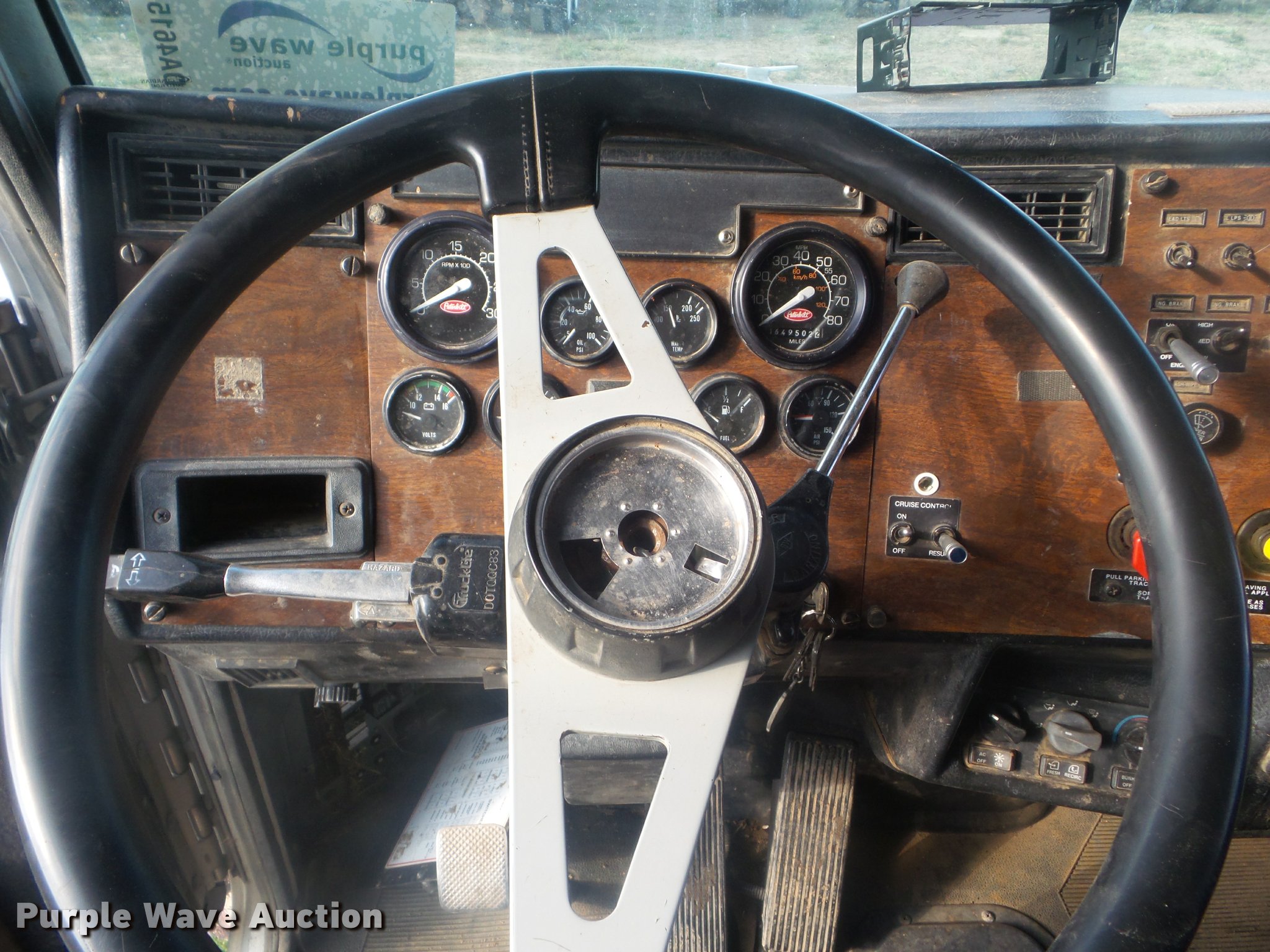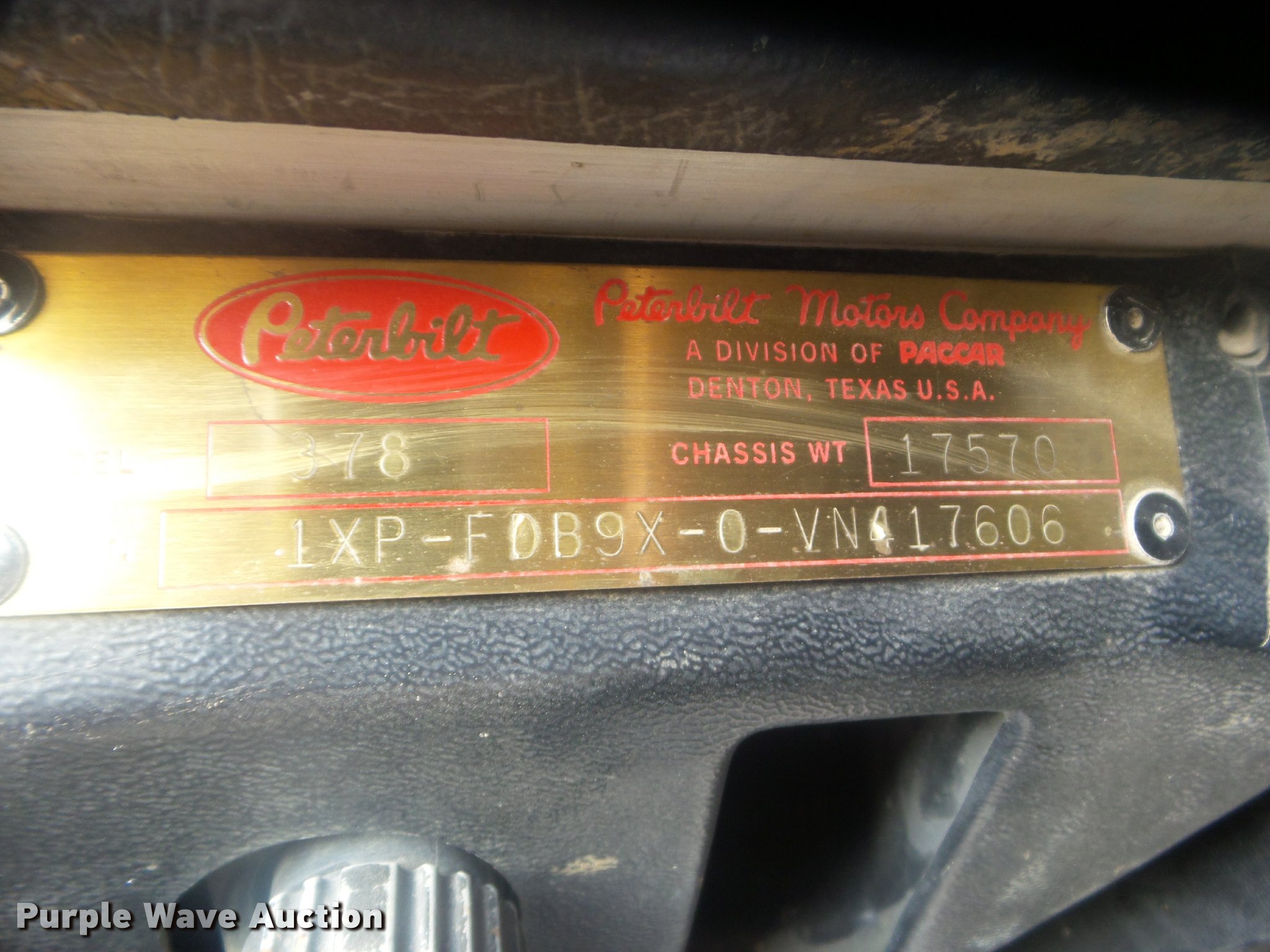 Purple Wave is selling a used Truck Tractor in Kansas. This item is a 1997 Peterbilt 378 semi truck with the following: 649,502 miles on odometer, Caterpillar 3406 14.6L L6 turbo diesel engine, Eaton Fuller 10 speed manual transmission, Tandem axle, AC and heat, Cruise, Air suspension seat, Heated mirrors, Air suspension seat, Air ride cab, 60" sleeper, Single bed, Storage cabinets, Rear climate control, Hanging closet, Block heater, Exterior visor, Front tow hooks, Dual front exhaust stacks, Air operated sliding fifth wheel plate, Dual fuel tanks, Stainless steel quarter fenders, Air suspension, Air brakes, Engine brake, 248" wheelbase, 295/75R22.5 tires, GVWR 50,000 lbs, FAWR 12,000 lbs, IAWR 20,000 lbs, RAWR 20,000 lbs