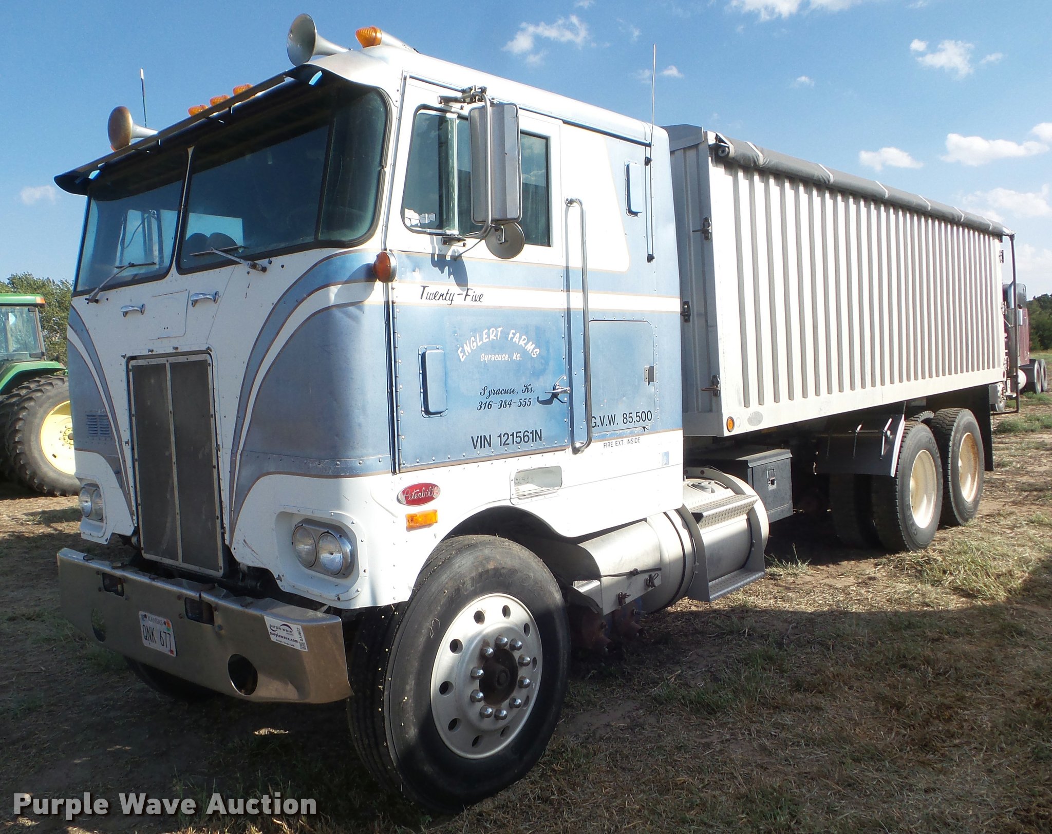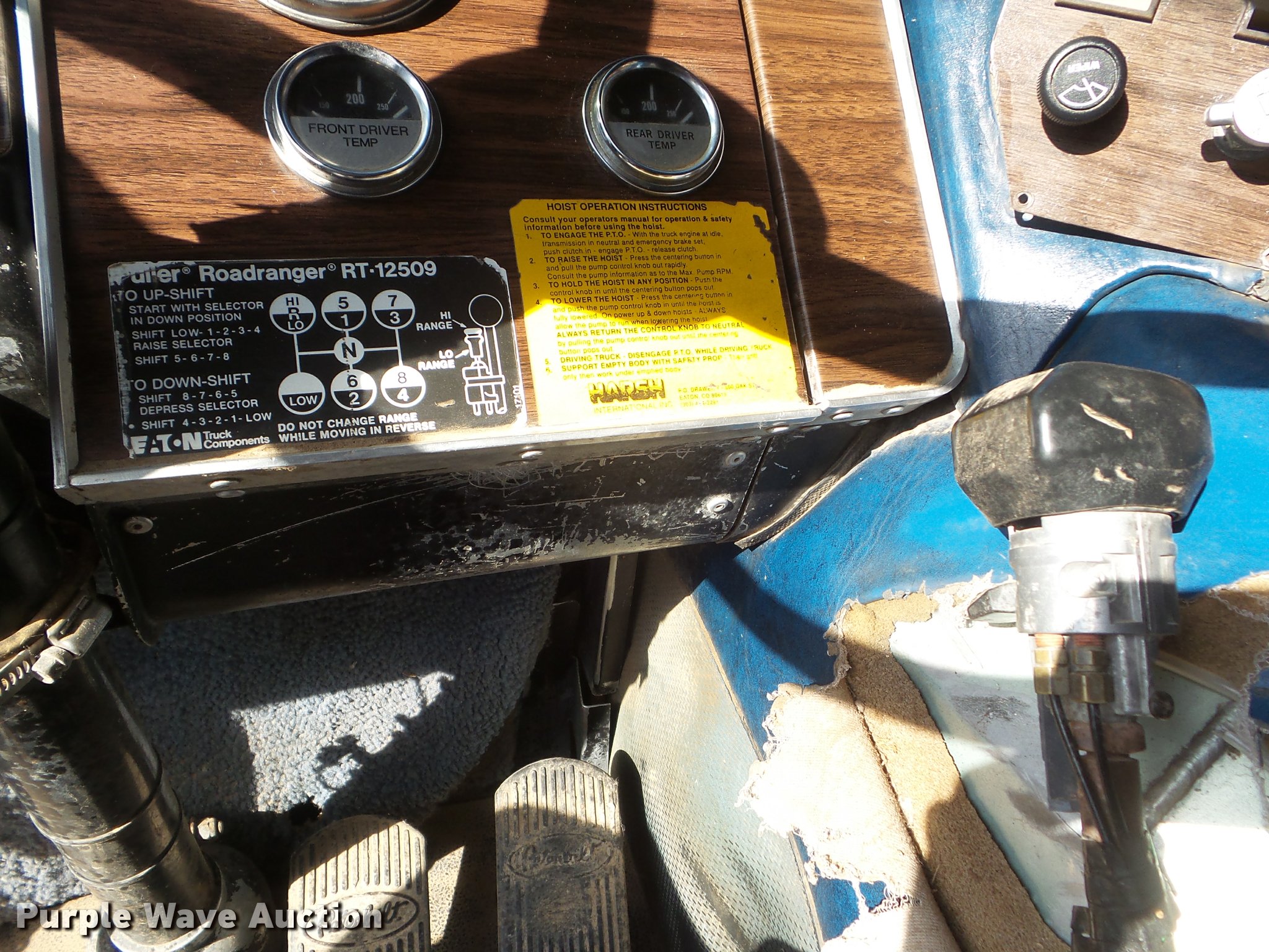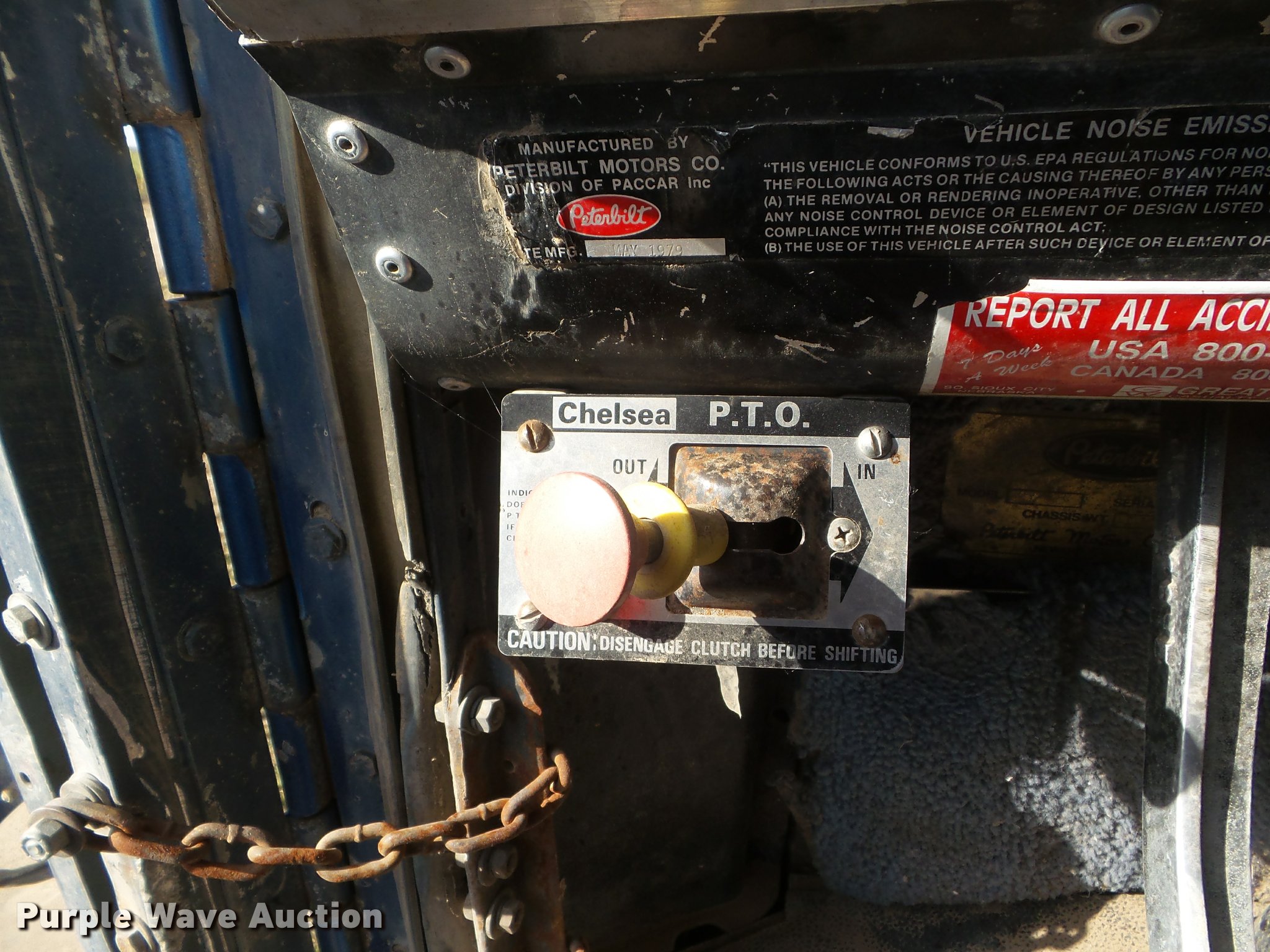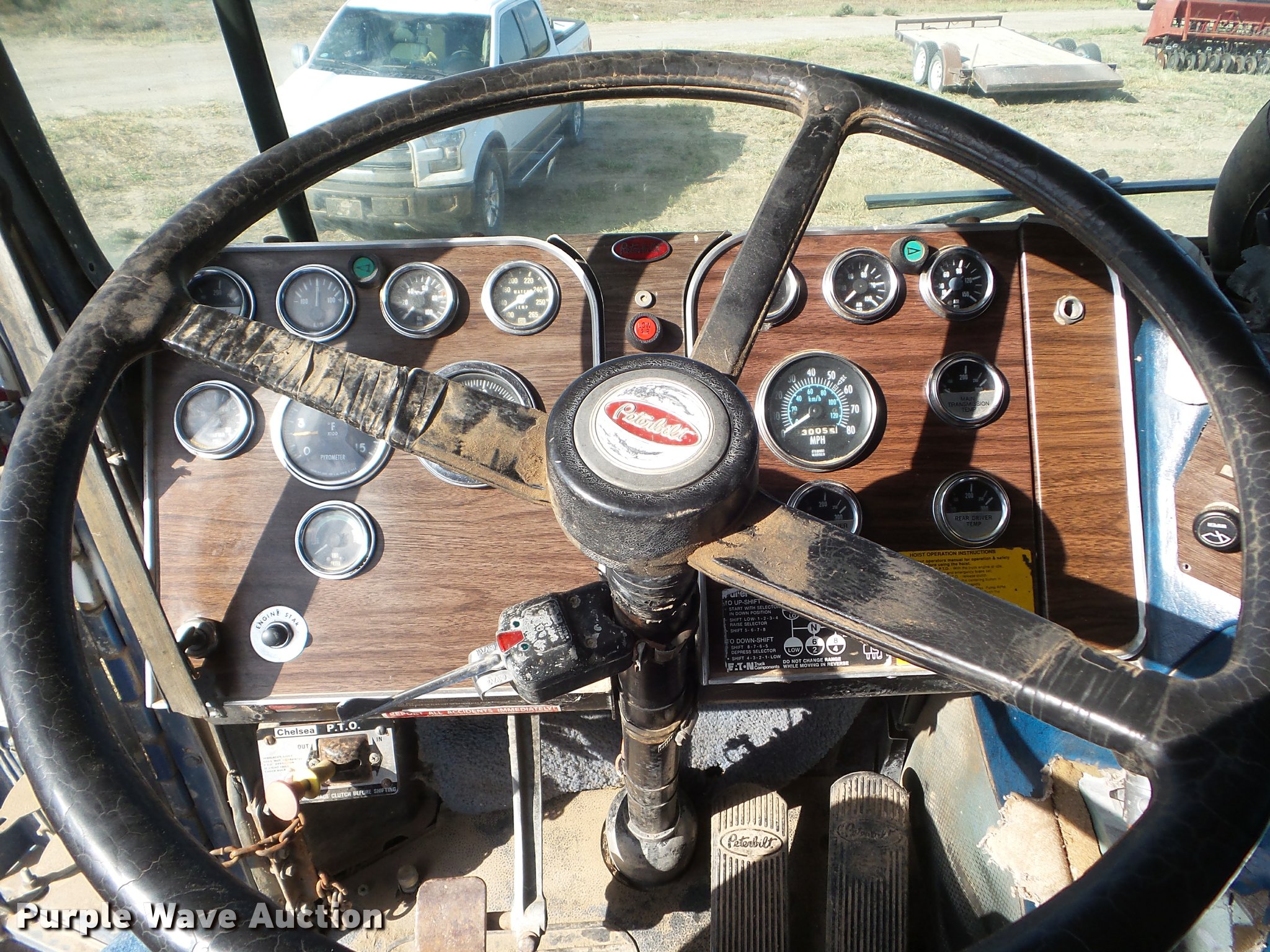Purple Wave is selling a used Grain Truck in Kansas. This item is a 1979 Peterbilt 352S86 grain truck with the following: 330,055 miles on odometer, Actual mileage unknown, 1,488 hours on meter, Caterpillar 3406 six cylinder turbo diesel engine, Eaton Fuller Road Ranger eight speed manual transmission, Tandem axle, Inter-axle differential lock, Heat, AM/FM/cassette, Air suspension seat, Toolboxes, PTO, 20'L x 95"W aluminum grain bed, 60" side height, Shur-Lok rollover tarp, Manual end gate, Dual ram hoist, Dual fuel tanks, Pintle hitch, Trailer wiring, Spring suspension, Air brakes, 230" wheelbase, 11R24.5 tires, GVWR 46,000 lbs, FAWR 12,000 lbs, IAWR 17,000 lbs, RAWR 17,000 lbs, CB radio not included