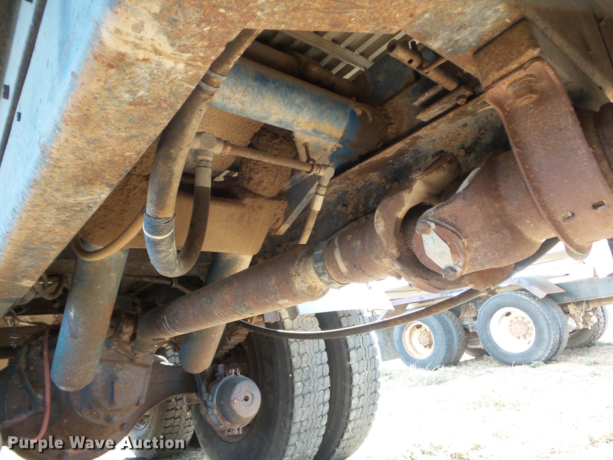 1979 Peterbilt 352S86 grain truck. 330,055 miles on odometer Actual mileage unknown, 1,488 hours on meter, Caterpillar 3406 six cylinder turbo diesel engine, Eaton Fuller Road Ranger eight speed manual transmission, Tandem axle, Inter-axle differential lock, Heat, AM/FM/cassette, Air suspension seat, Toolboxes, PTO, 20'L x 95"W aluminum grain bed 60" side height, Shur-Lok rollover tarp, Manual end gate, Dual ram hoist, Dual fuel tanks, Pintle hitch, Trailer wiring, Spring suspension, Air brakes, 230" wheelbase, 11R24.5 tires, GVWR 46,000 lbs, FAWR 12,000 lbs, IAWR 17,000 lbs, RAWR 17,000 lbs, CB radio not included. Kansas title. 121561N. Englert Partners - Open inspection Monday, October 24. 3201 E. River Road. Syracuse, KS 67878