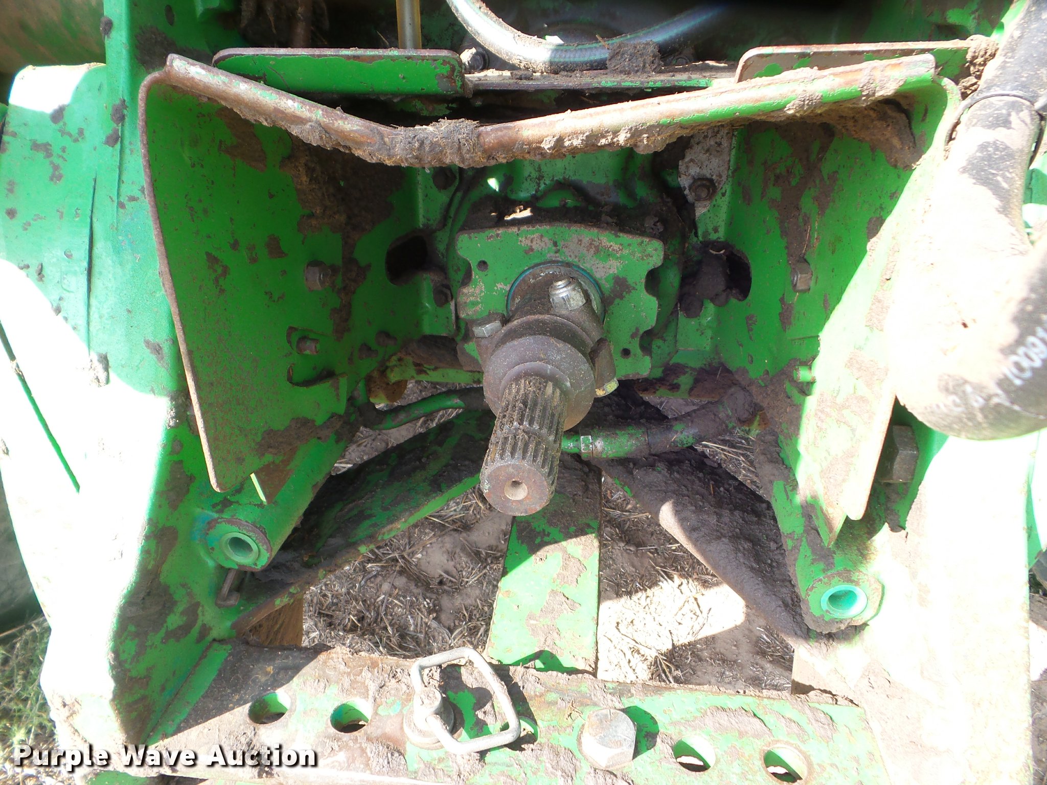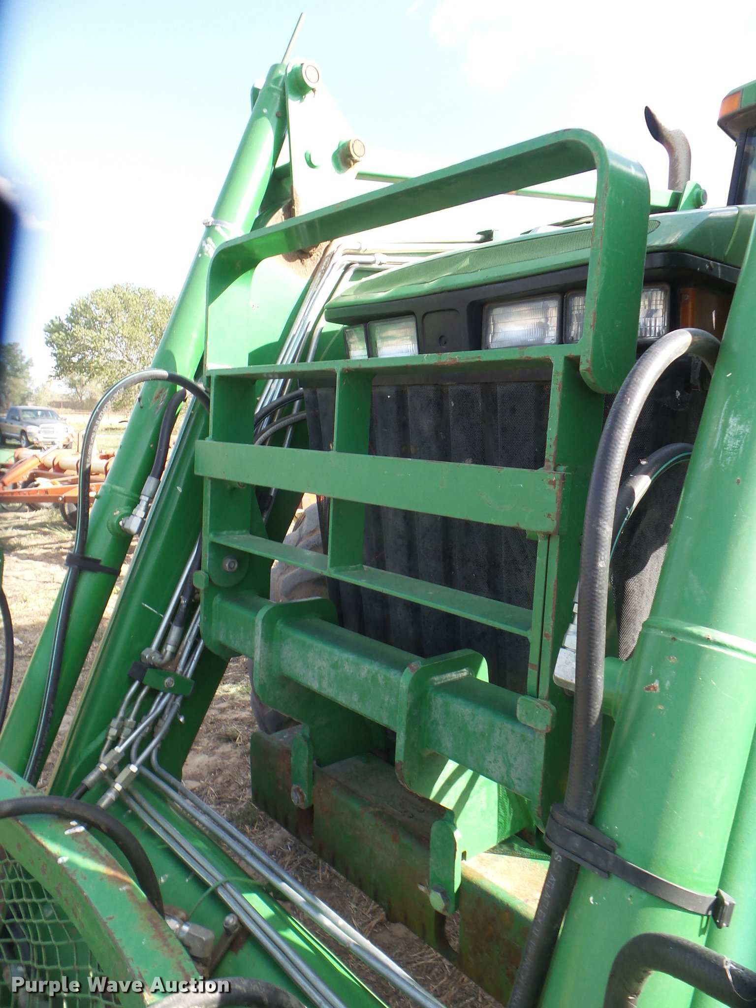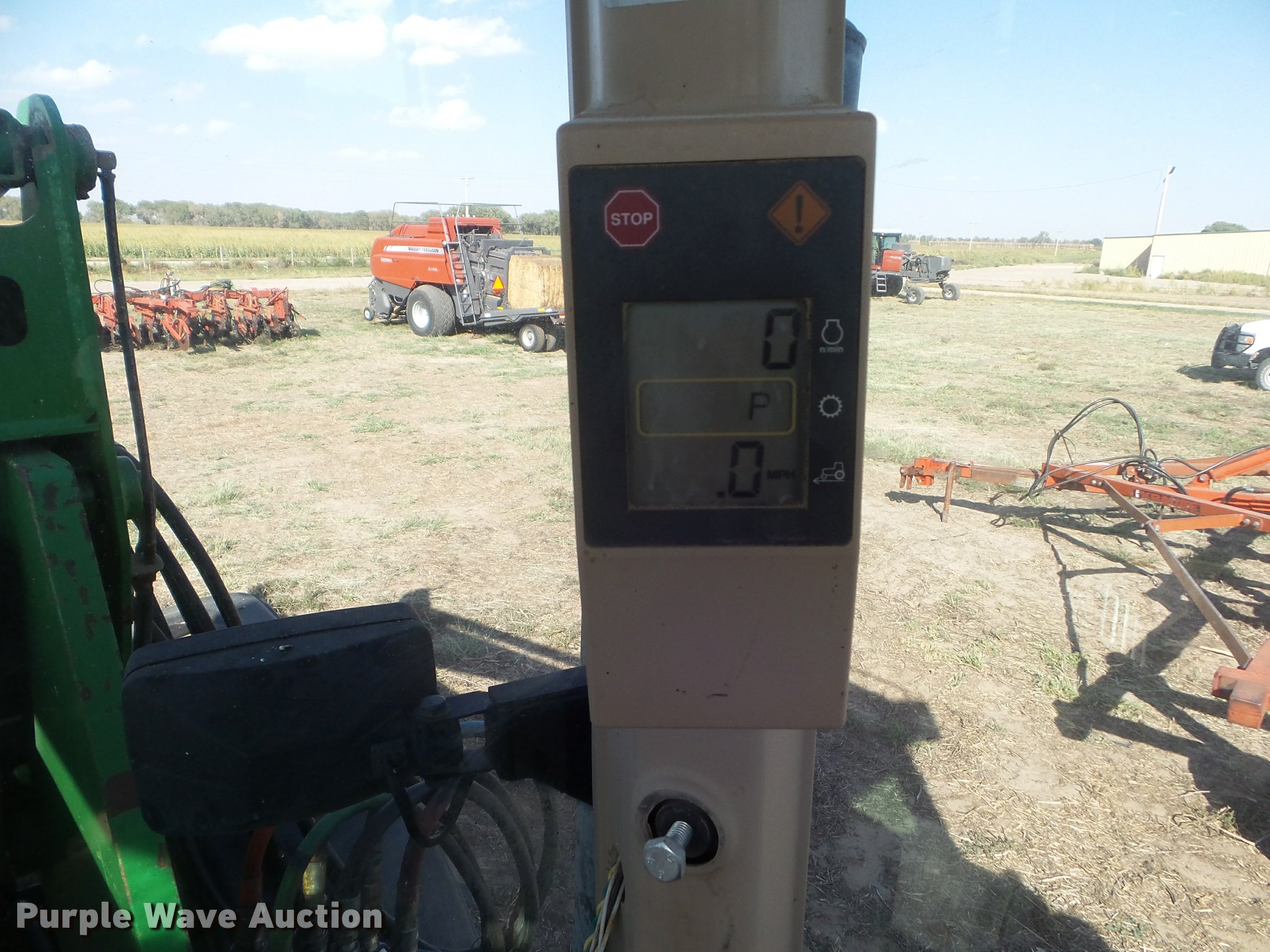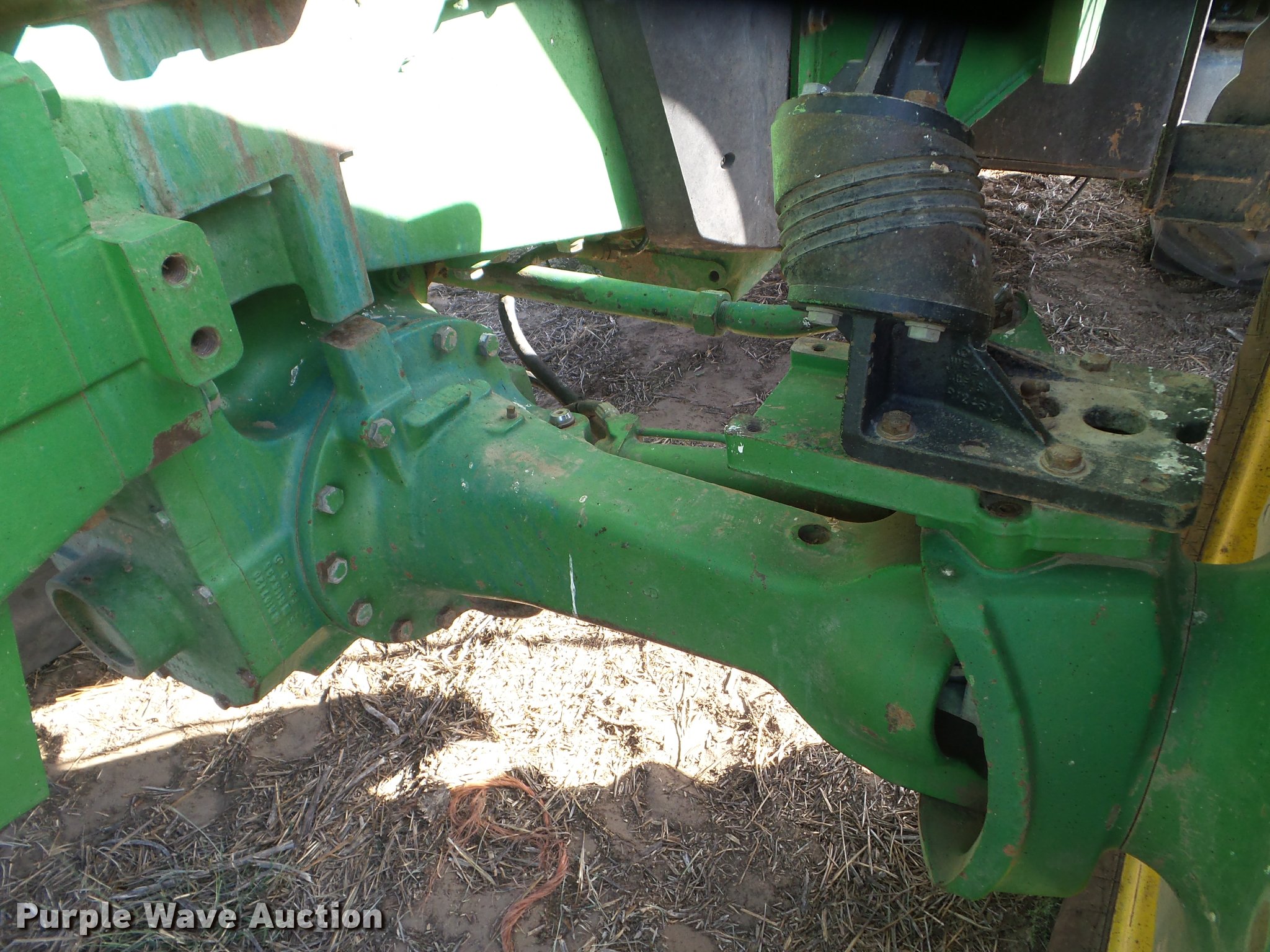 Purple Wave is selling a used Tractor in Kansas. This item is a 1995 John Deere 8300 MFWD tractor with the following: 1,630 hours on meter, Hours may vary, unit in use, John Deere 6076HRW six cylinder diesel engine, Serial RG6076H533395, Powershift transmission, 14F-3R gears, AC and heat, Tilt steering wheel, AM/FM, Suspension seat, Visor, John Deere 840 loader, Quick attach, 97"W grapple bucket, Joystick controls, Serial W00840X003157, Three point, Top link, Quick attach, Large 1000 PTO, (4) rear hydraulic remote sets, (4) wheel weights, 385/85R34 front tires, 480/80R46 dual rear tires, Unattached right rear dual tires included, Serial RW8300P001108