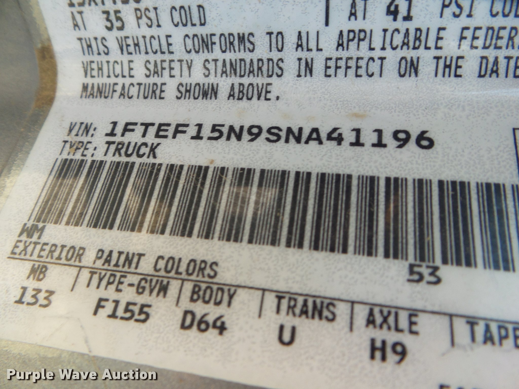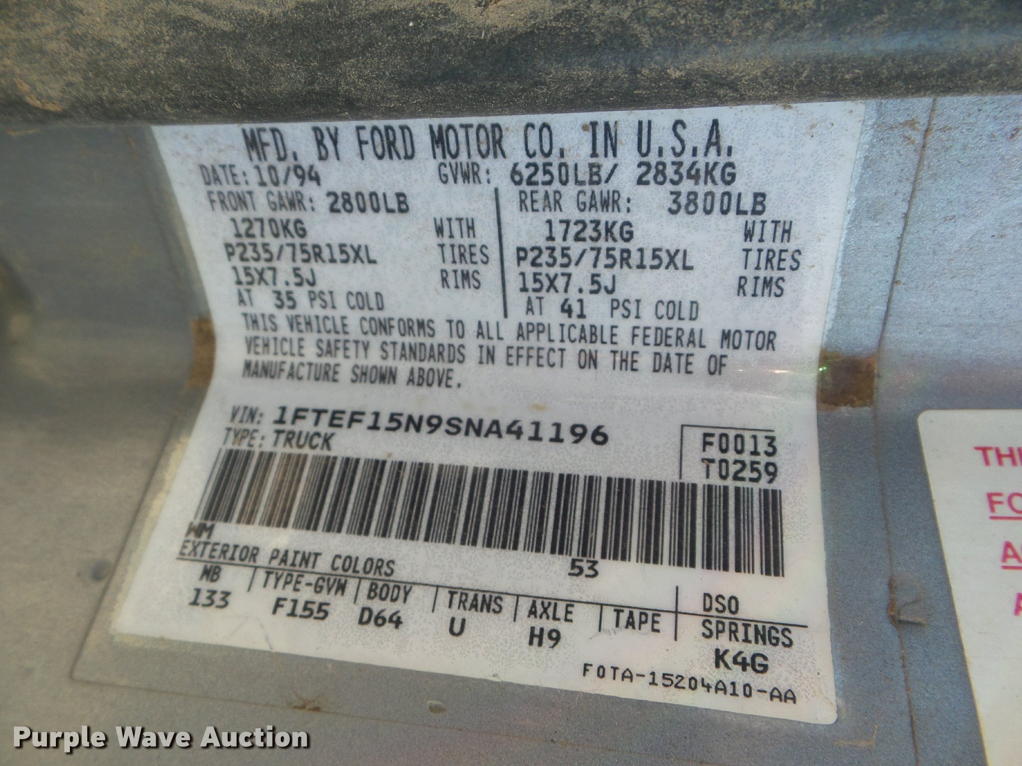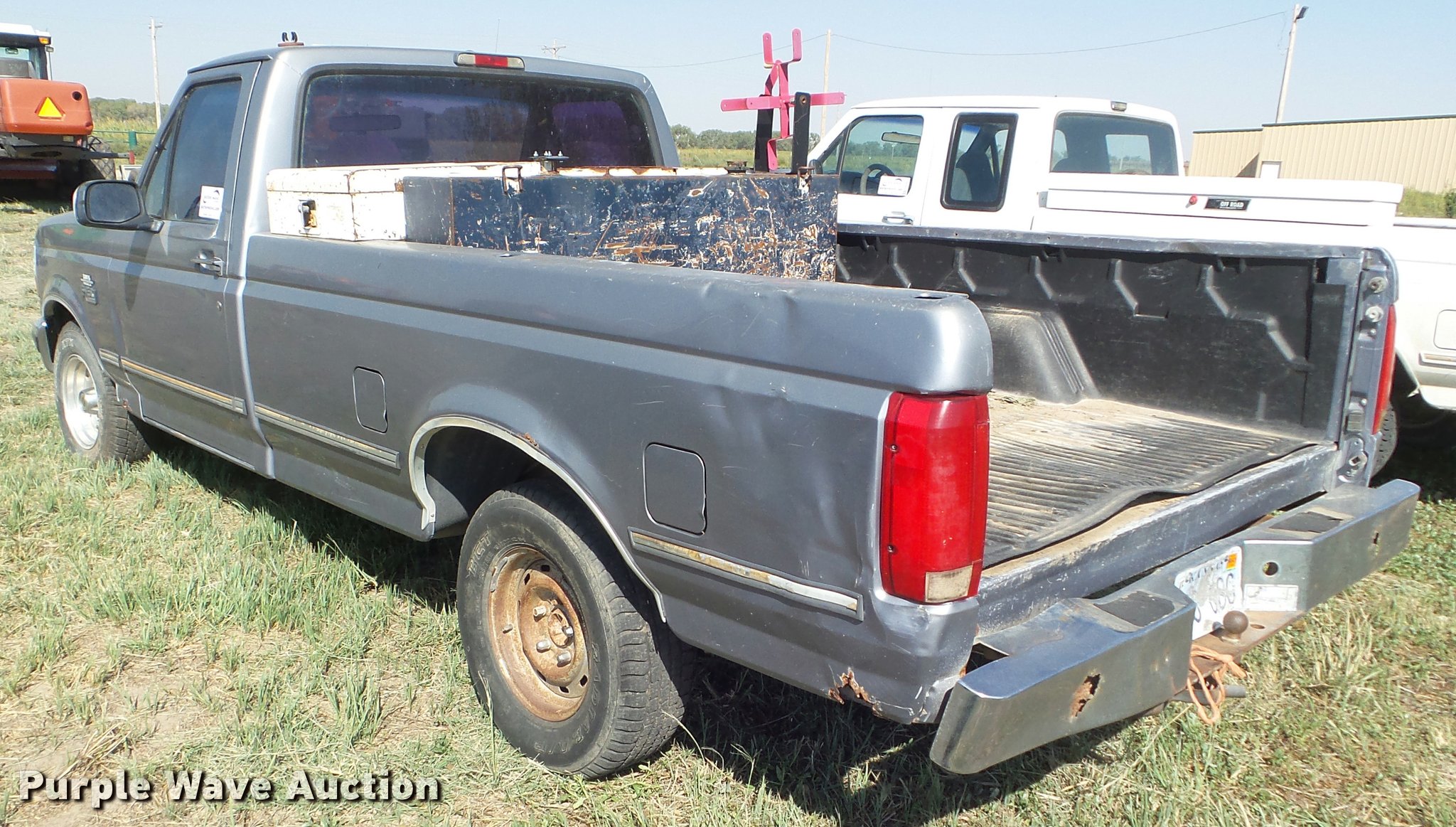Purple Wave is selling a used 1/2 Ton Pickup or Van in Kansas. This item is a 1995 Ford F150 XLT pickup truck with the following: 123,450 miles on odometer, 5.0L V8 OHV 16V gas engine, Automatic transmission, AC and heat, Tilt, Cruise, AM/FM/cassette, Power windows, locks, and mirrors, Cloth interior, Long bed, Toolbox, L-shaped fuel tank, LT235/75R15 tires, Weak batteries