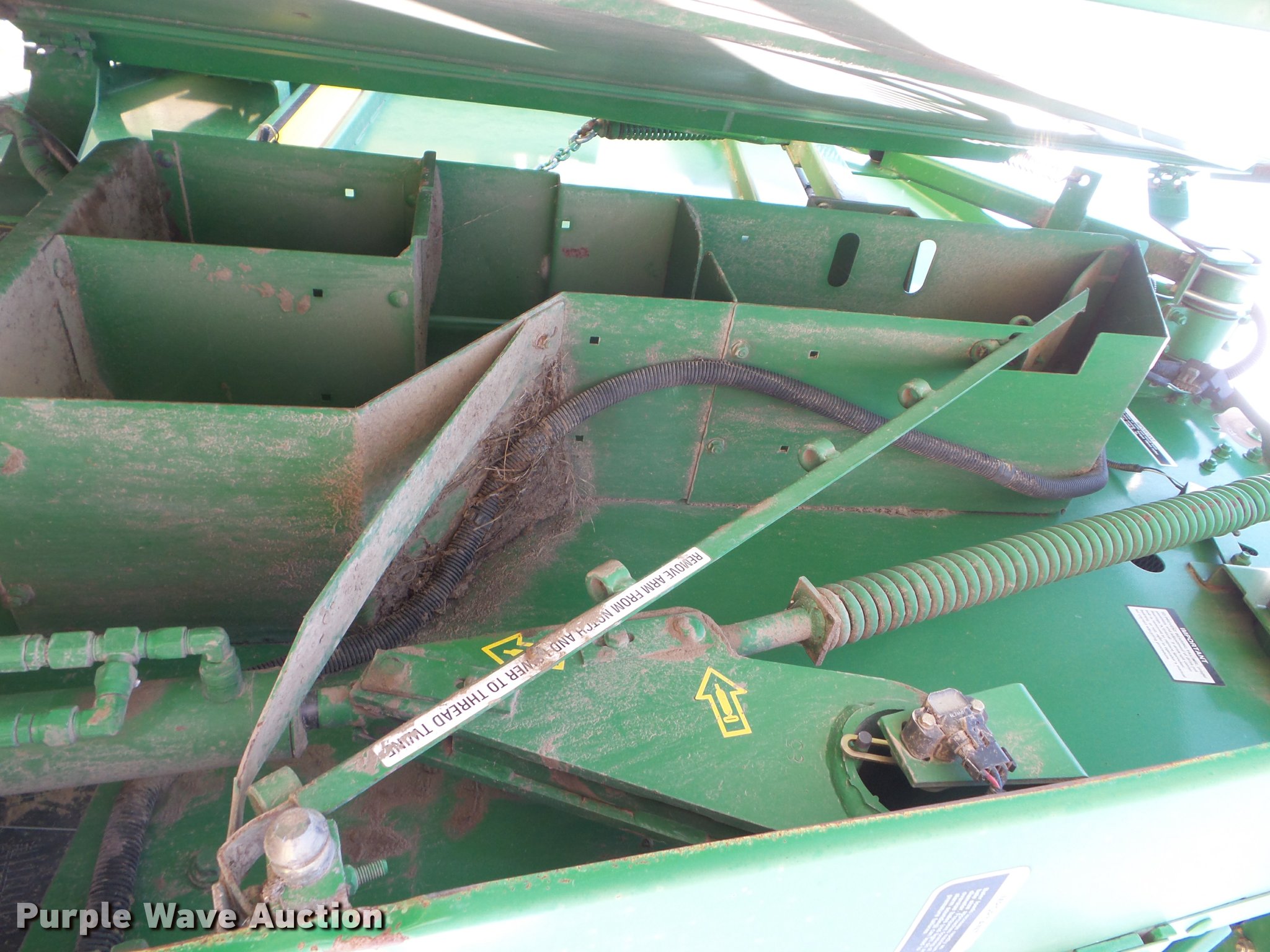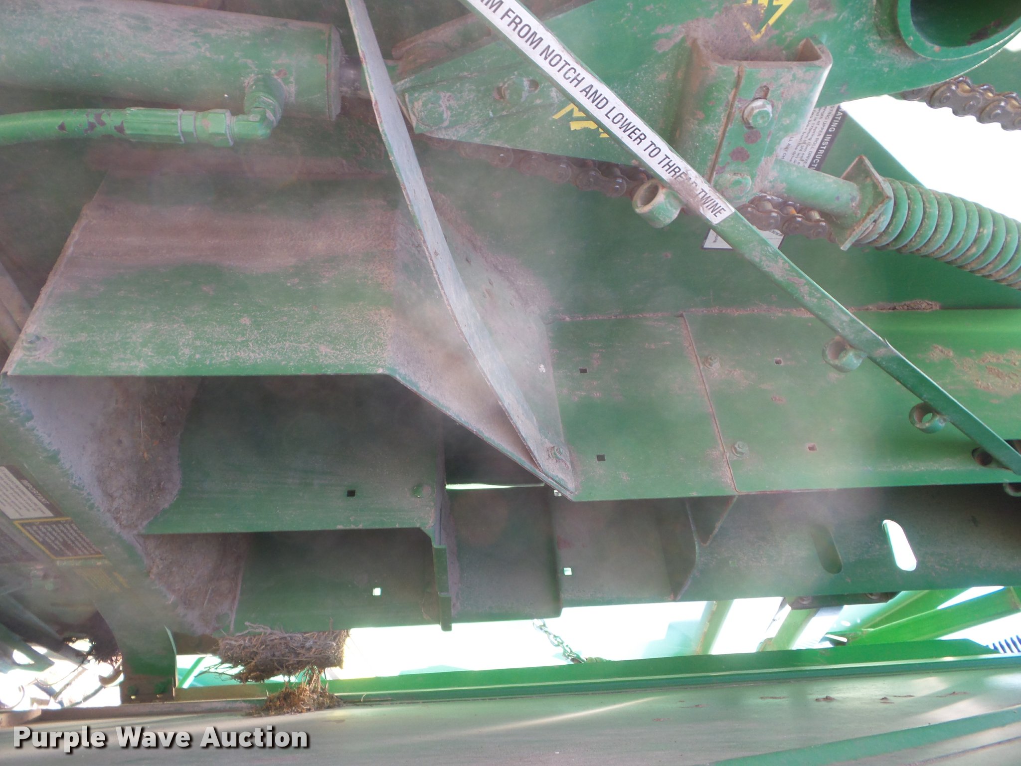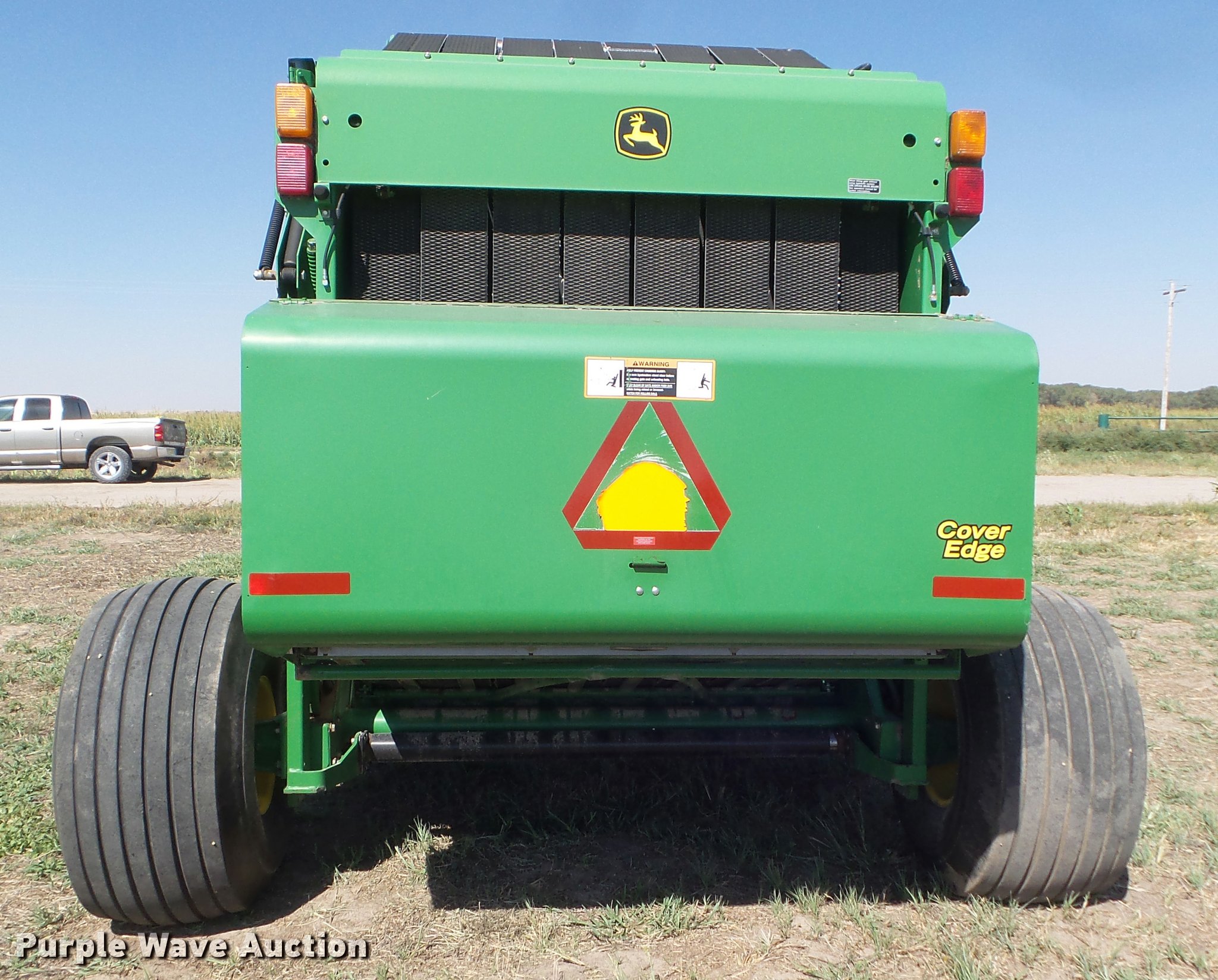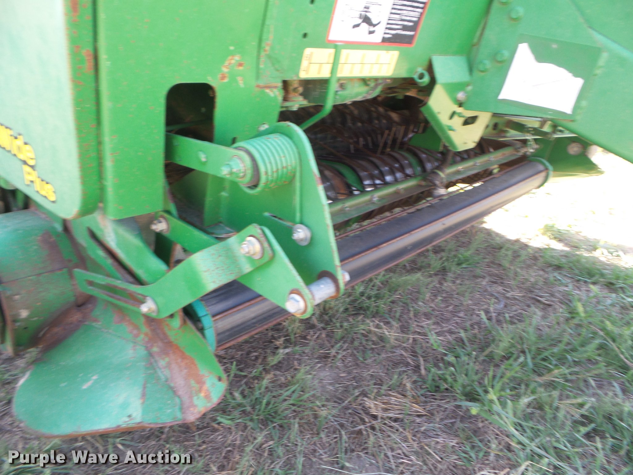 Purple Wave is selling a used Round Baler in Kansas. This item is a 2007 John Deere 568 Mega Wide Plus round baler with the following: 18,930 bales on counter, 6'W pickup, Hydraulic pickup lift, Twin twine tie or net-wrap, Bale kicker, Large 1000 PTO, Pin hitch, 21.5L-16.1 tires, Serial E00568X336604