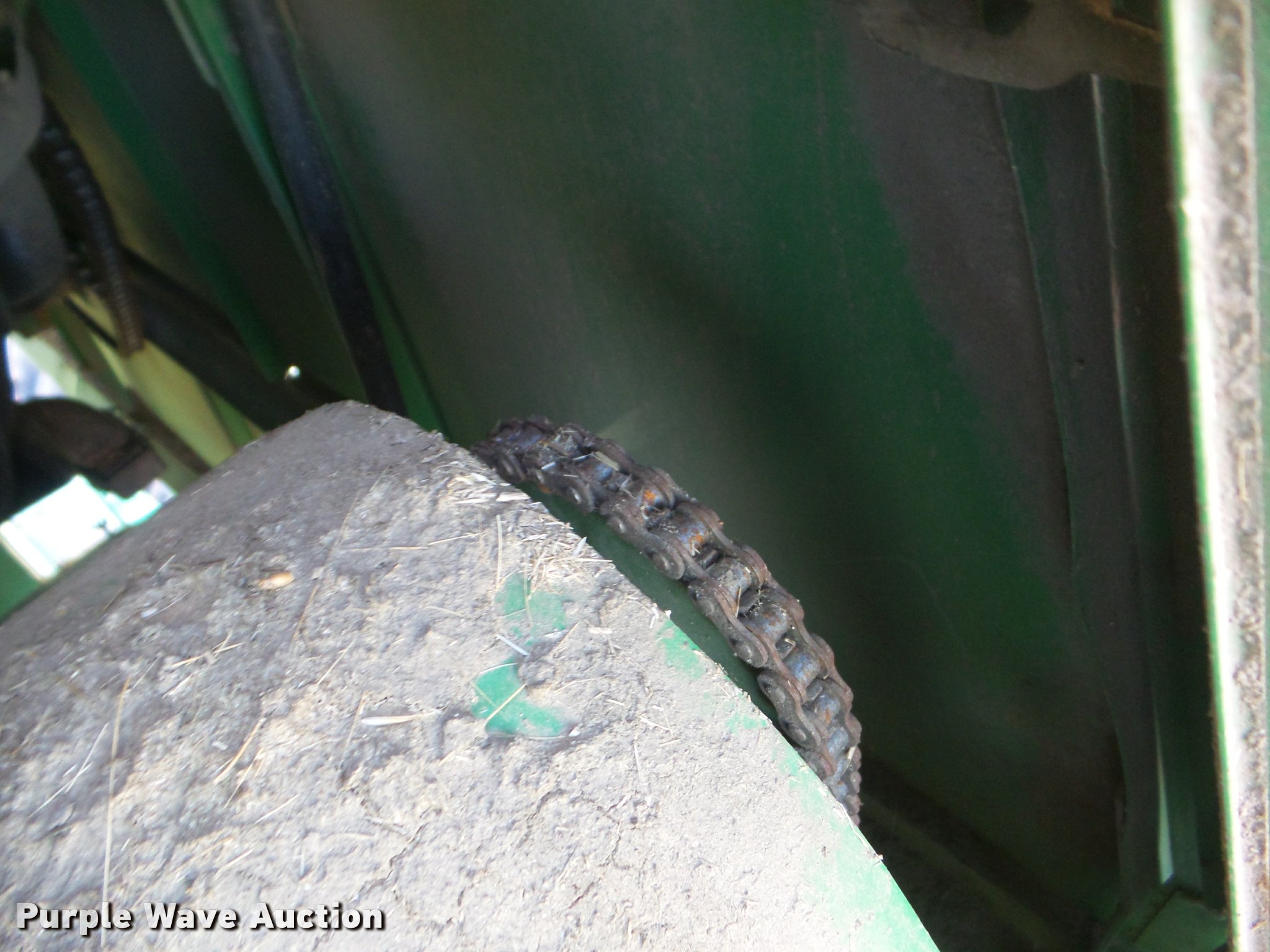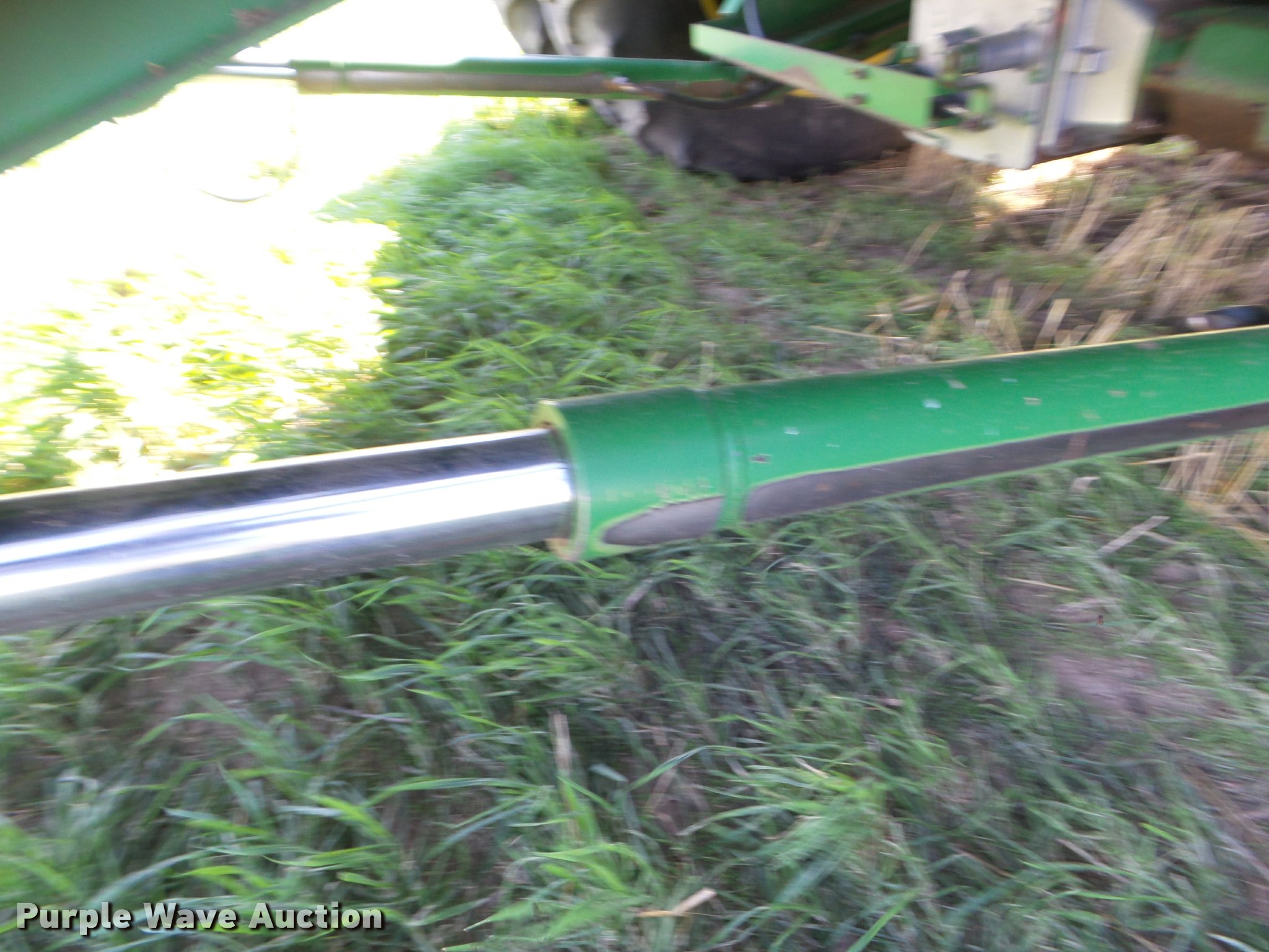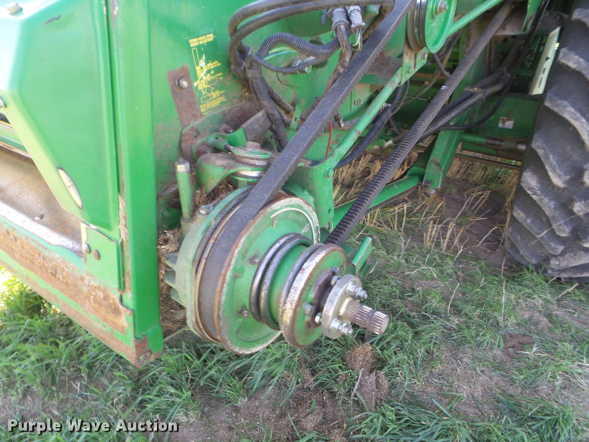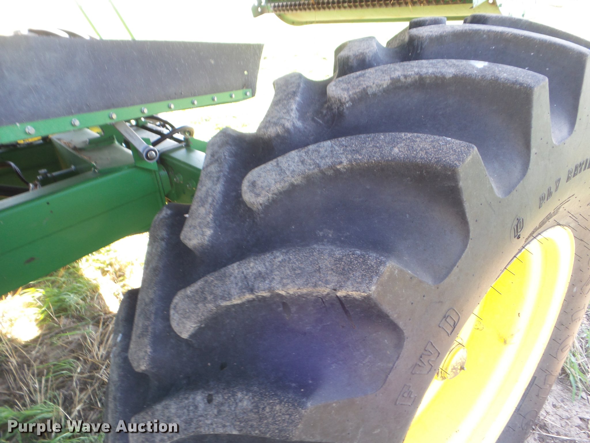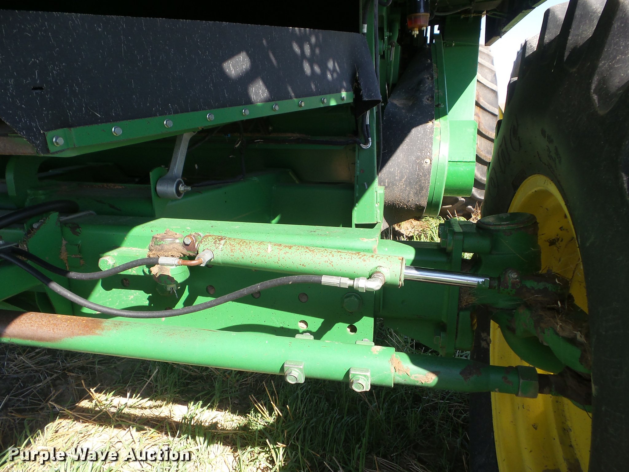 Purple Wave is selling a used Combine in Kansas. This item is a 1997 John Deere 9600 combine with the following: 4,694 engine hours on meter, 3,314 separator hours on meter, John Deere 6076HH03Y six cylinder turbo diesel engine, Serial RG6076H594493, Hydrostatic transmission, 3F-3R gears, Feederhouse, Variable speed, Reverser, AC and heat, Tilt steering wheel, AM/FM, Air suspension seat, Instructor's seat, Straw chopper, Bin extensions, 20'L unloading auger, 480/80R38 dual front tires, 16.9-26 rear tires, Operators manual, Front axle repaired, CB radio not included, Serial H09600X673459