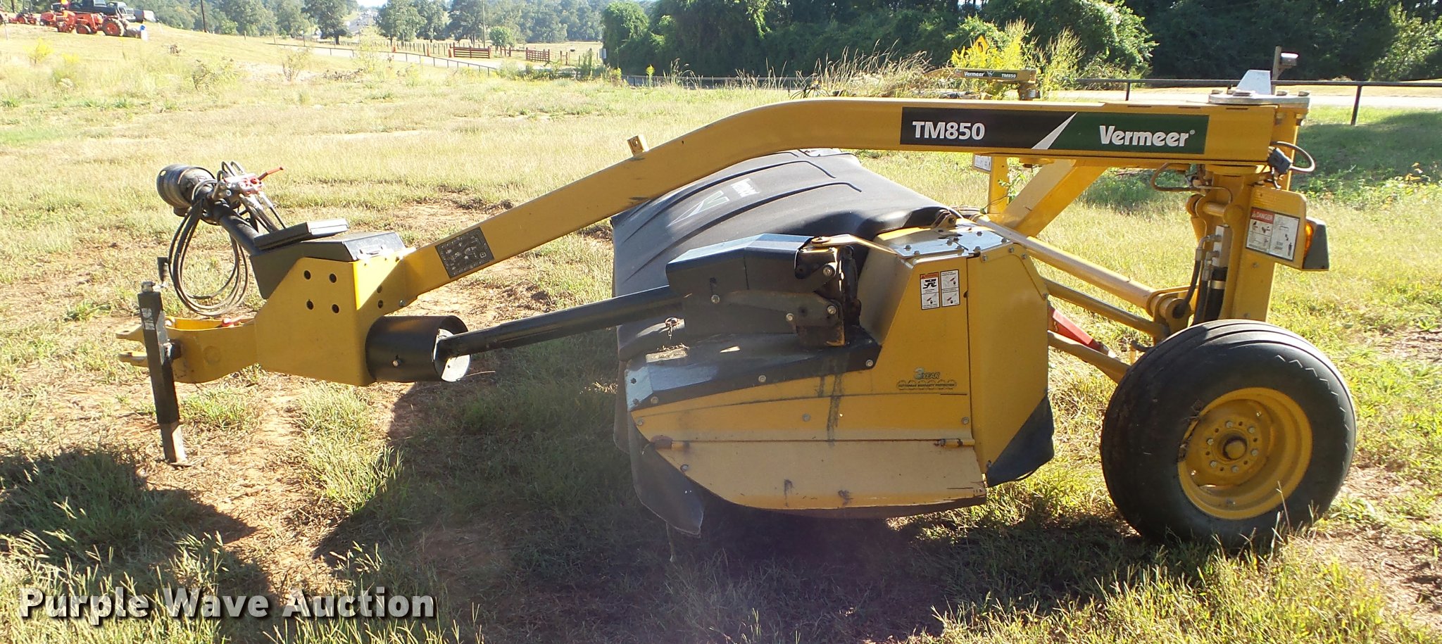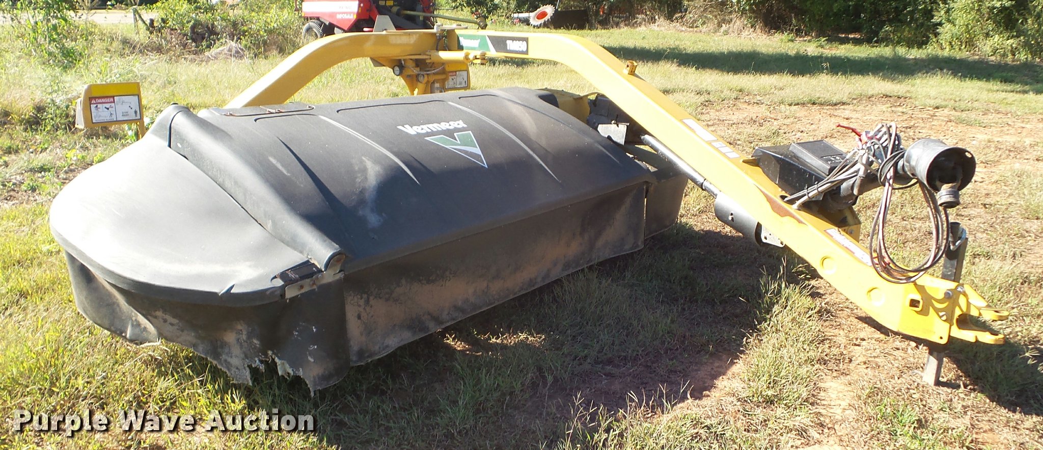 Purple Wave is selling a used Windrower Pull Type in Texas. This item is a 2014 Vermeer TM850 disc mower with the following: 10.5'W disc head, Hydraulic mower suspension, Transport lights, 540 PTO, Draw bar hitch, 11L-15 tires, Serial 1VRA13102E1006033