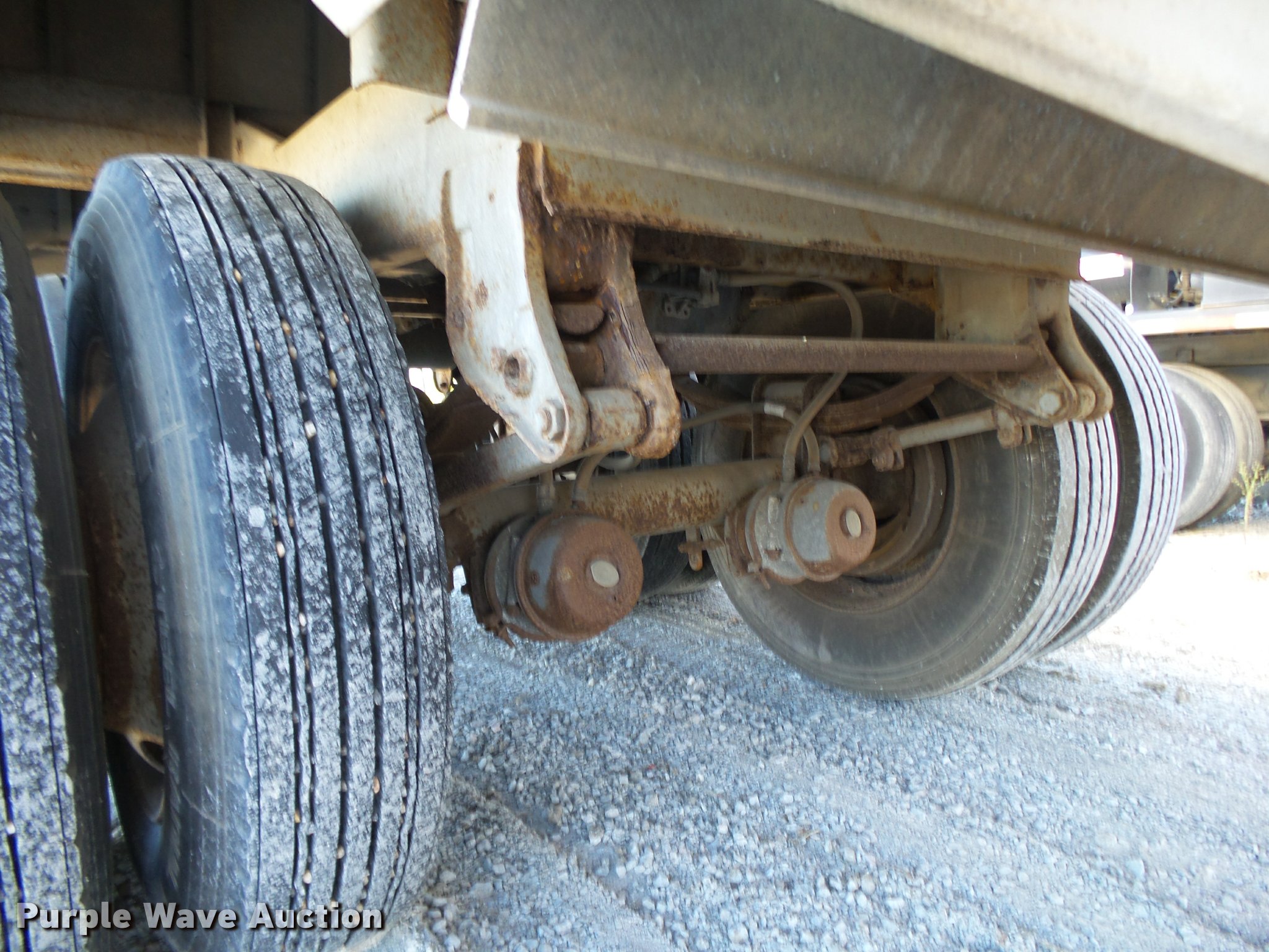 Purple Wave is selling a used Grain or Commodity Trailer in Arkansas. This item is a 1990 Chamberlin JDWH-100 double hopper grain trailer with the following: 42'L x 96"W overall, 40'L body, Shurco Shur-Lok rollover tarp, Aluminum construction, Fifth wheel plate, Dual leg two speed landing gear, Spring suspension, Air brakes, Tandem axle, Steel wheels, 11R24.5 tires, GVWR 65,000 lbs, Air connector damage, Rust, Rear tail damage, Unit# 37723