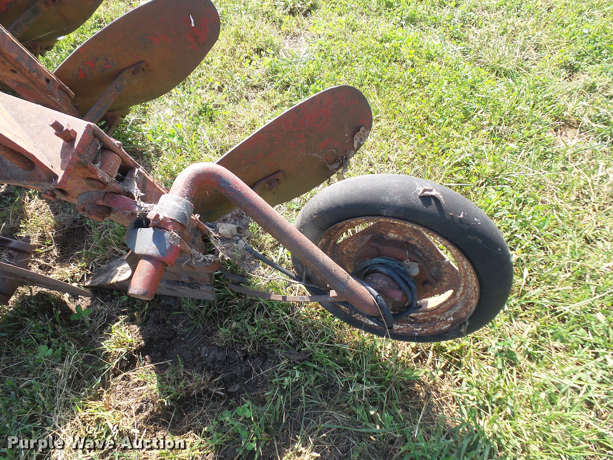Purple Wave is selling a used Plow in Kansas. This item is a Mccormick Farmall three bottom plow with the following: Quick hitch, Tires need to be replaced