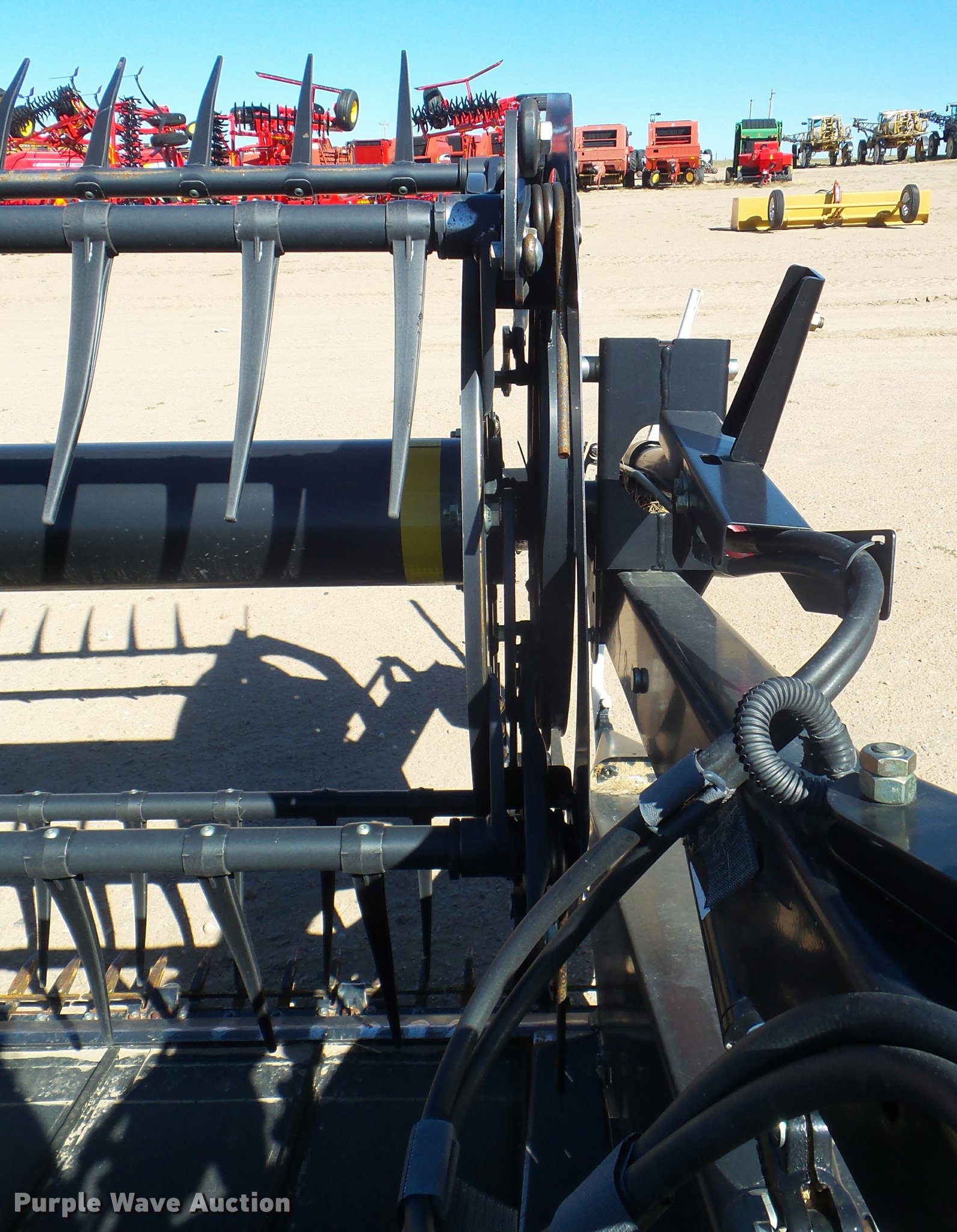 Purple Wave is selling a used Platform or Stripper Head in Kansas. This item is a 2014 MacDon FD79 draper flex head with the following: 35'W, Finger reel, Hydraulic fore/aft, Hydraulic reel height control, Steel skid plates, Single driveline, Transport package, 205/75R15 tires, Bent frame, Serial 253381