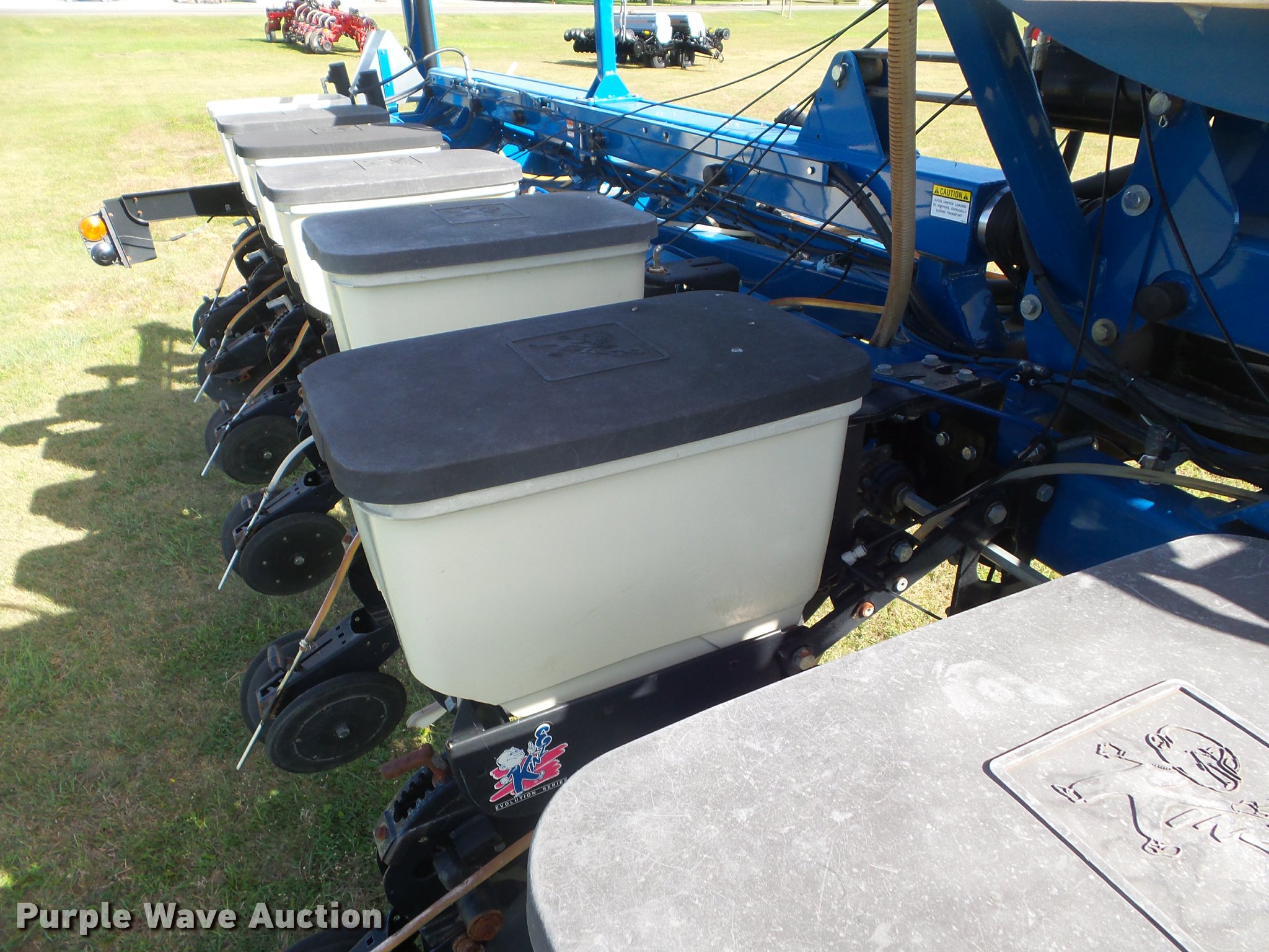 Purple Wave is selling a used Planter in Kansas. This item is a 2009 Kinze 3660 planter with the following: 16 rows, 30" row spacing, Marker arms, Hydraulic pivot fold, Individual seed hoppers, Ground meter drive, Pneumatic down pressure, Seed firmers, Double disk openers, Double gauge wheels, Double rubber closing system, 600 gallon liquid fertilizer tank, Two point, Rear hitch, (4) 11R22.5 transport tires, (4) 7.50-20 drive/outside tires, Finger pickup meters for Corn, Milo meters, Soybean meters, One row unit lid missing, No monitor included, Serial 660086