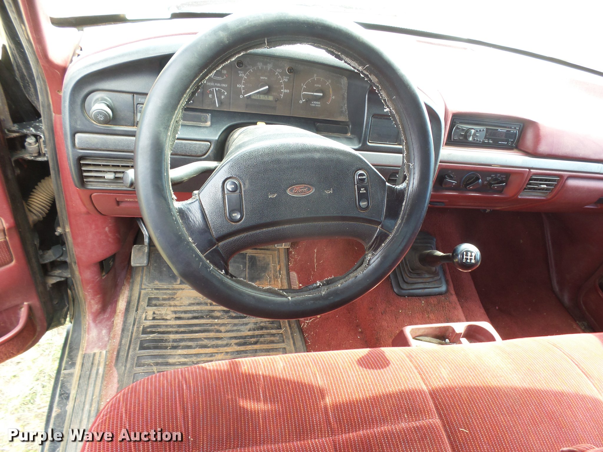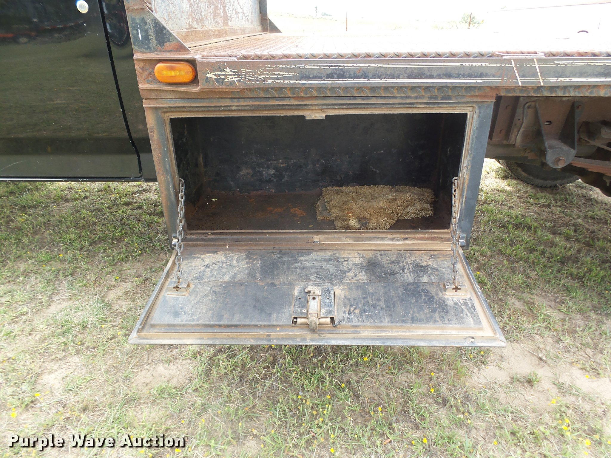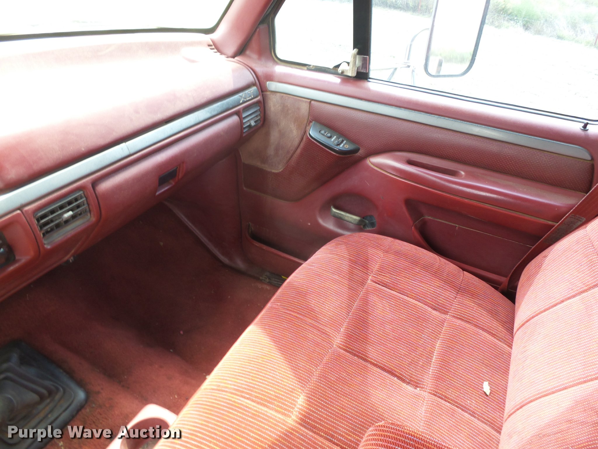 Purple Wave is selling a used Flat Bed Truck in Oklahoma. This item is a 1995 Ford F450 Super Duty XLT flatbed truck with the following: 146,616 miles on odometer, 7.3L V8 OHV 16V diesel engine, Five speed manual transmission, AC and heat, Tilt, Cruise, AM/FM/CD, Power windows and locks, Cloth interior, 11'L x 96"W flatbed, Toolbox, Gooseneck ball, Receiver hitch, Trailer wiring, LT235/85R16 tires