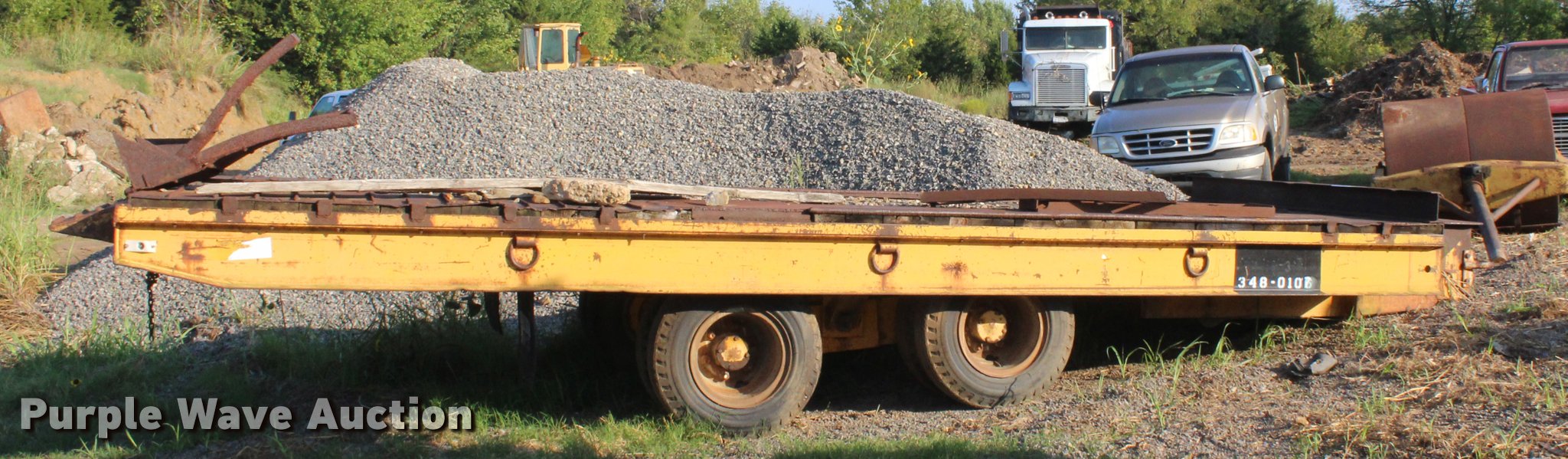 Purple Wave is selling a used Equip. Trailer in Oklahoma. This item is a Shop built equipment trailer with the following: 21'L x 95"W, 235"L steel and wood deck, 3'L ramps, 36" floor height, D-ring tie downs, Pintle hitch, Electric brakes, Tandem axle, 7.5-15 tires, Damaged, No landing gear, Rust, Ramps bent and damage, No suspension, Unit# 348-0107-0106