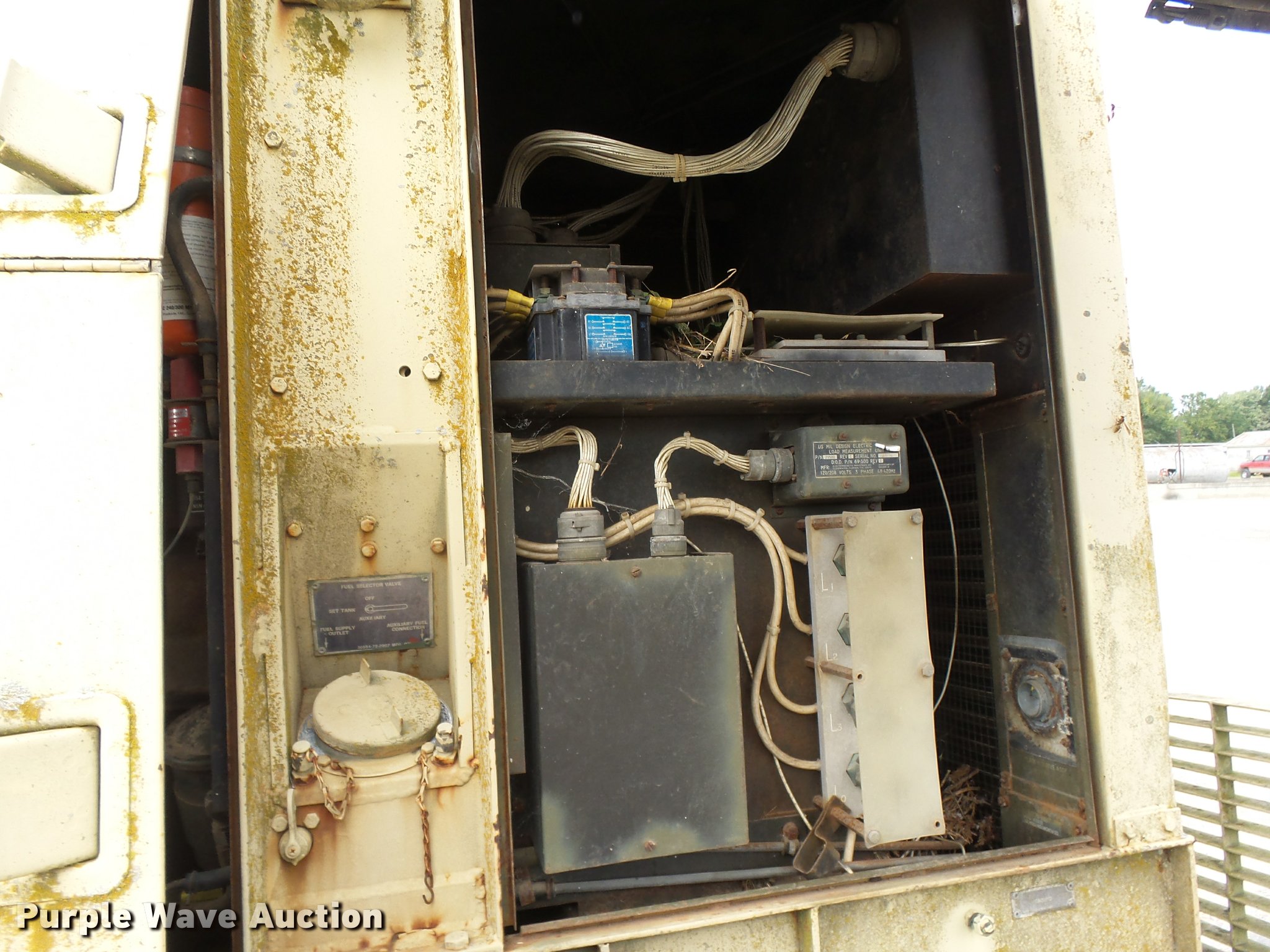 Purple Wave is selling a used Generator Set in Kansas. This item is a 1984 military generator with the following: Model MEP-005A, White six cylinder diesel engine, 30 kW, Three phase, Unit has not been used for several years