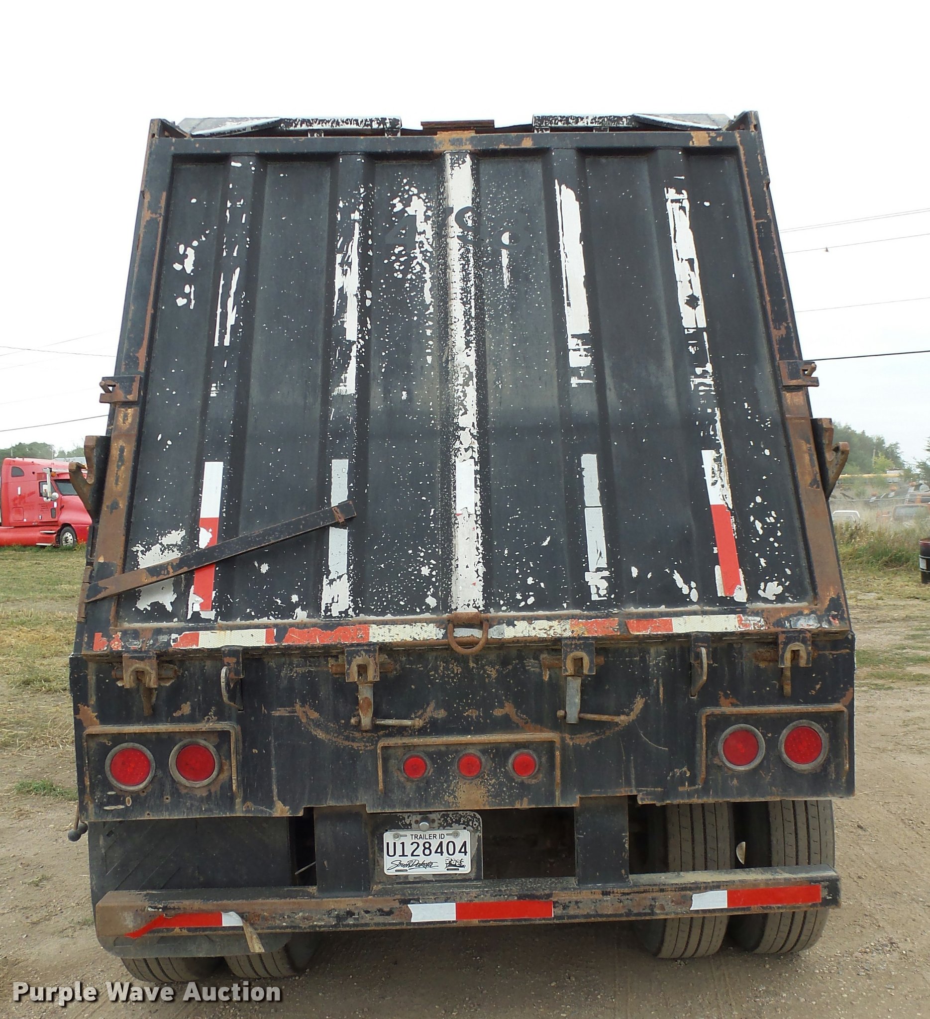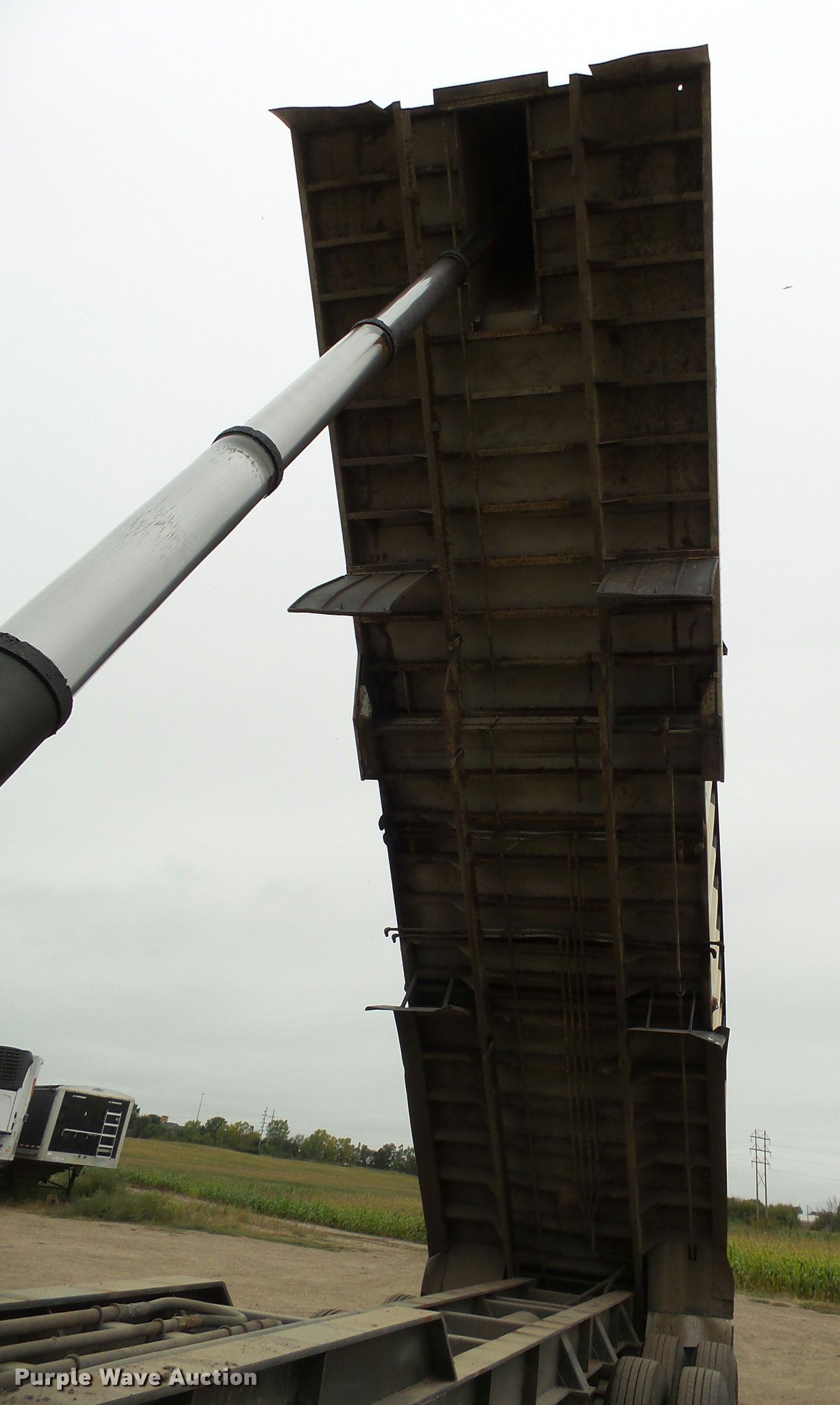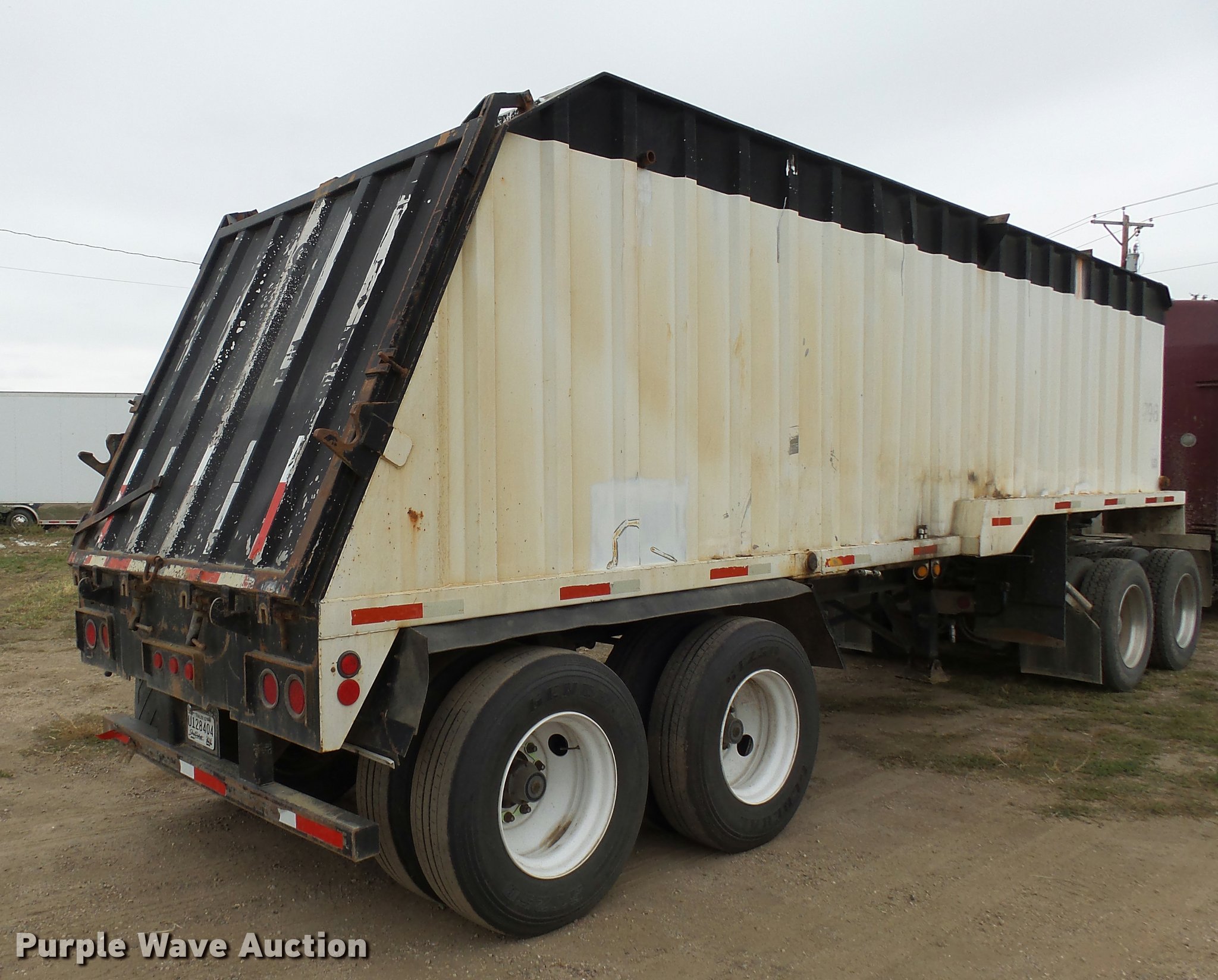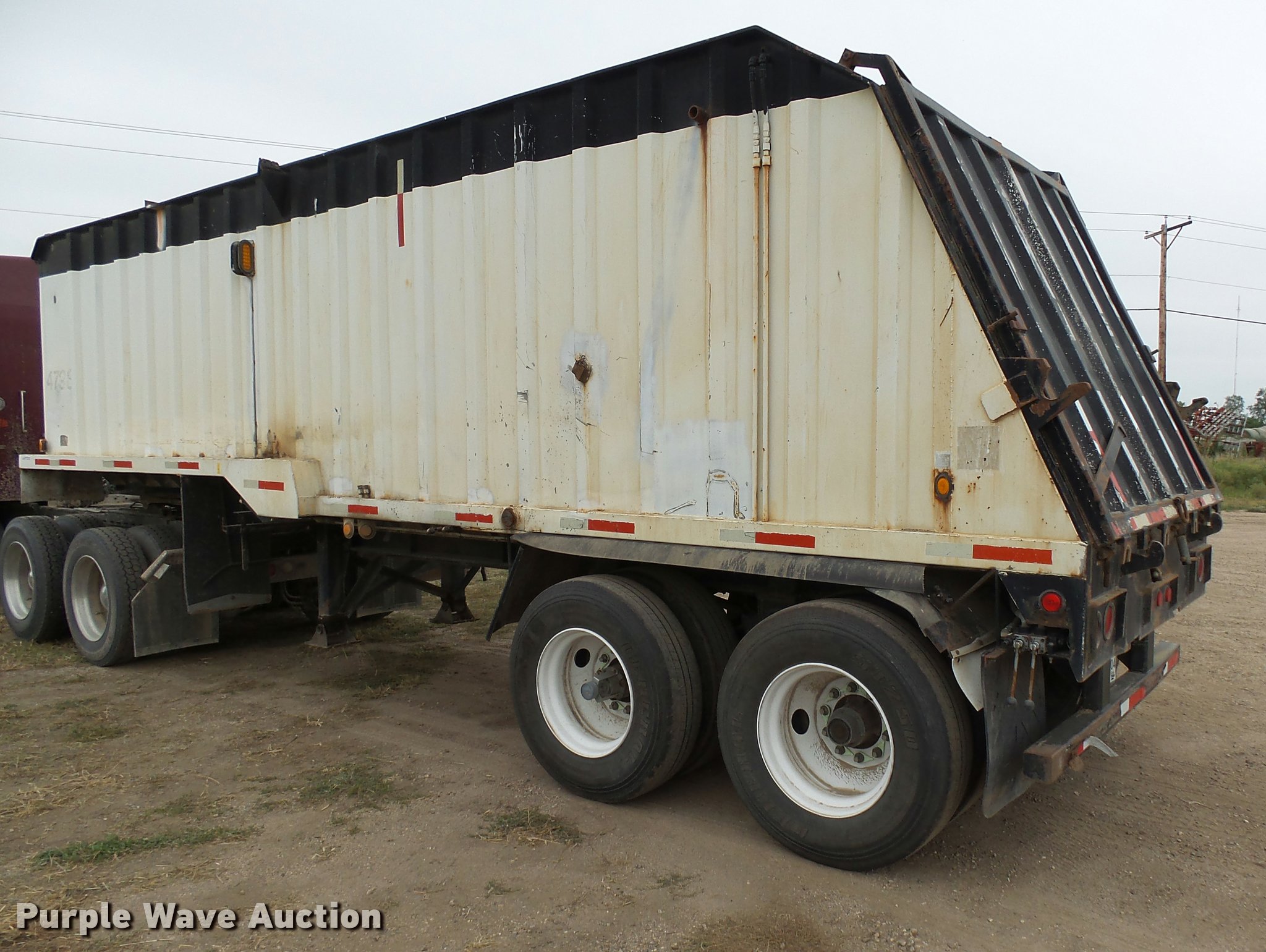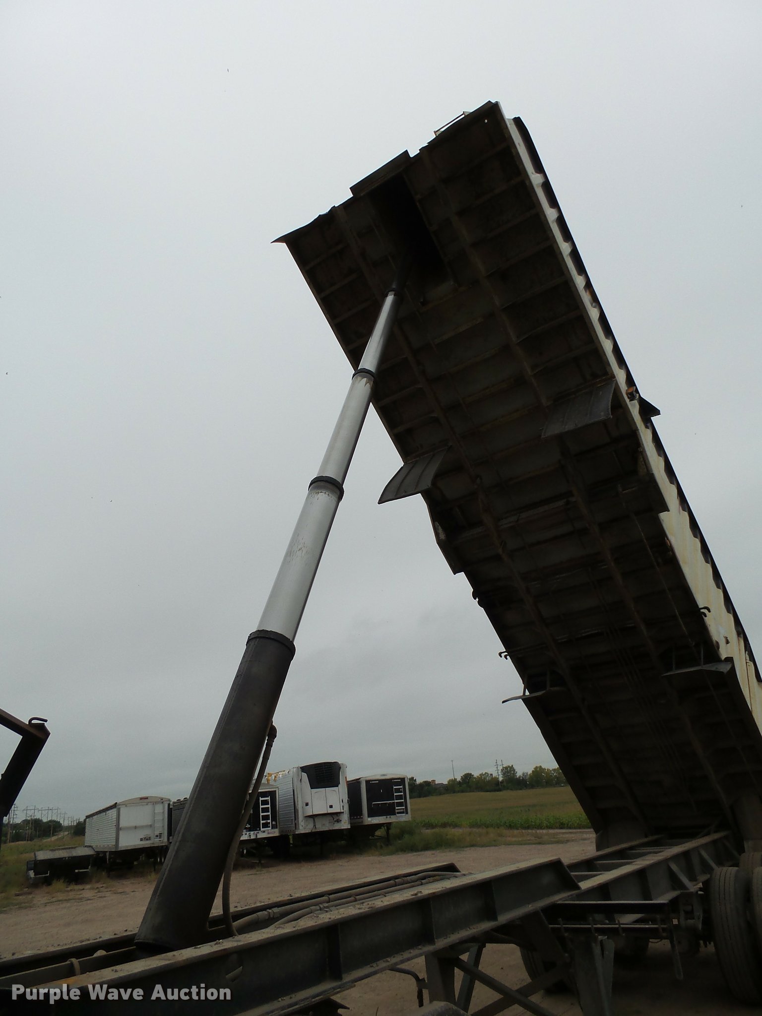 Purple Wave is selling a used End Dump Rock Trailer in South Dakota. This item is a 2002 shop built end dump trailer with the following: 28'L x 85"W, 77" side height, Stainless steel construction, Single ram hoist, Trailer controls, Dual leg two speed landing gear, Fifth wheel plate, Tandem axle, Spring suspension, Air brakes, Steel wheels, General 11R22.5 tires