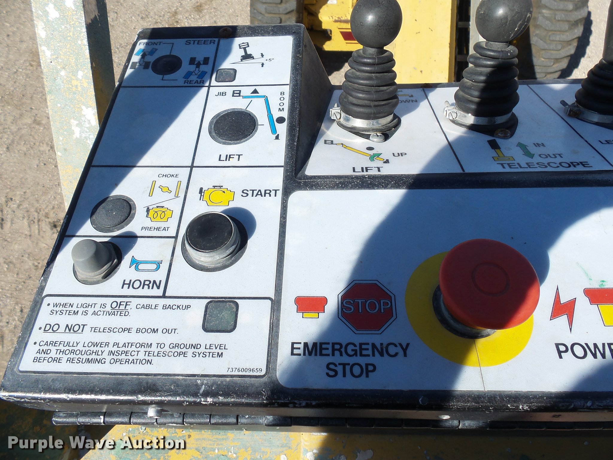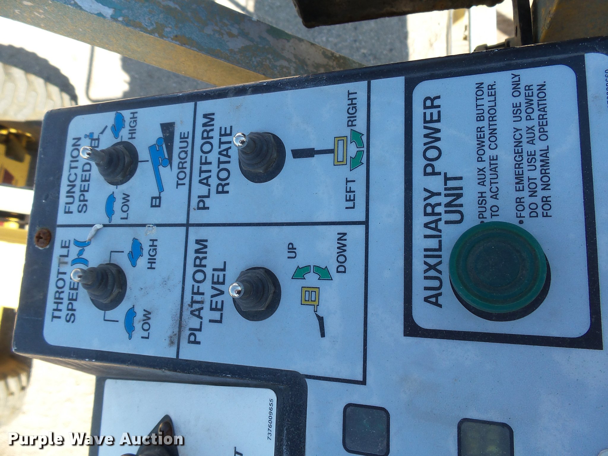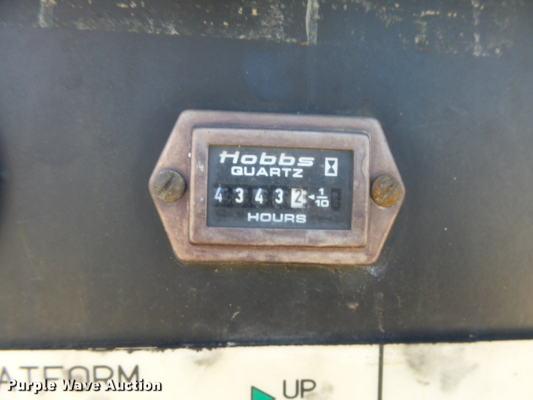 Purple Wave is selling a used Boom Lift in South Dakota. This item is a Grove MZ66B boom lift with the following: 4,343 hours on meter, Deutz diesel engine, 42.5 HP, Four wheel drive, 66' working height, 60' platform height, 48'8" reach length, 500 lbs maximum platform capacity, 8'L x 3'W platform, AC power outlet, Hydraulic platform rotation, 30 gallon fuel tank, 15-19.5 tires, Serial 48218