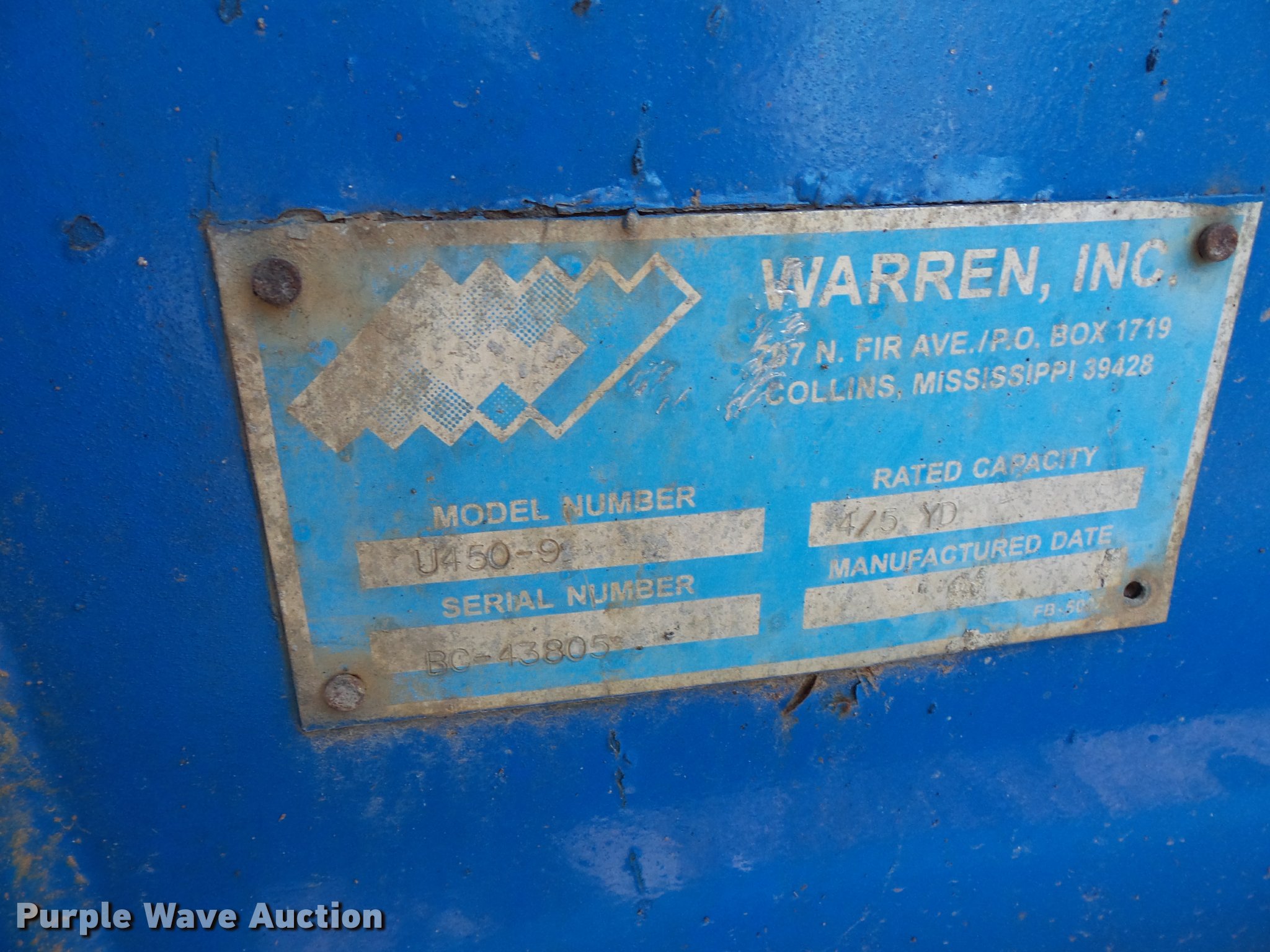 Warren V450-9 dump bed has sold in Maryland Heights, Missouri for $385. Item BS9758 sold on October 27th, 2016.