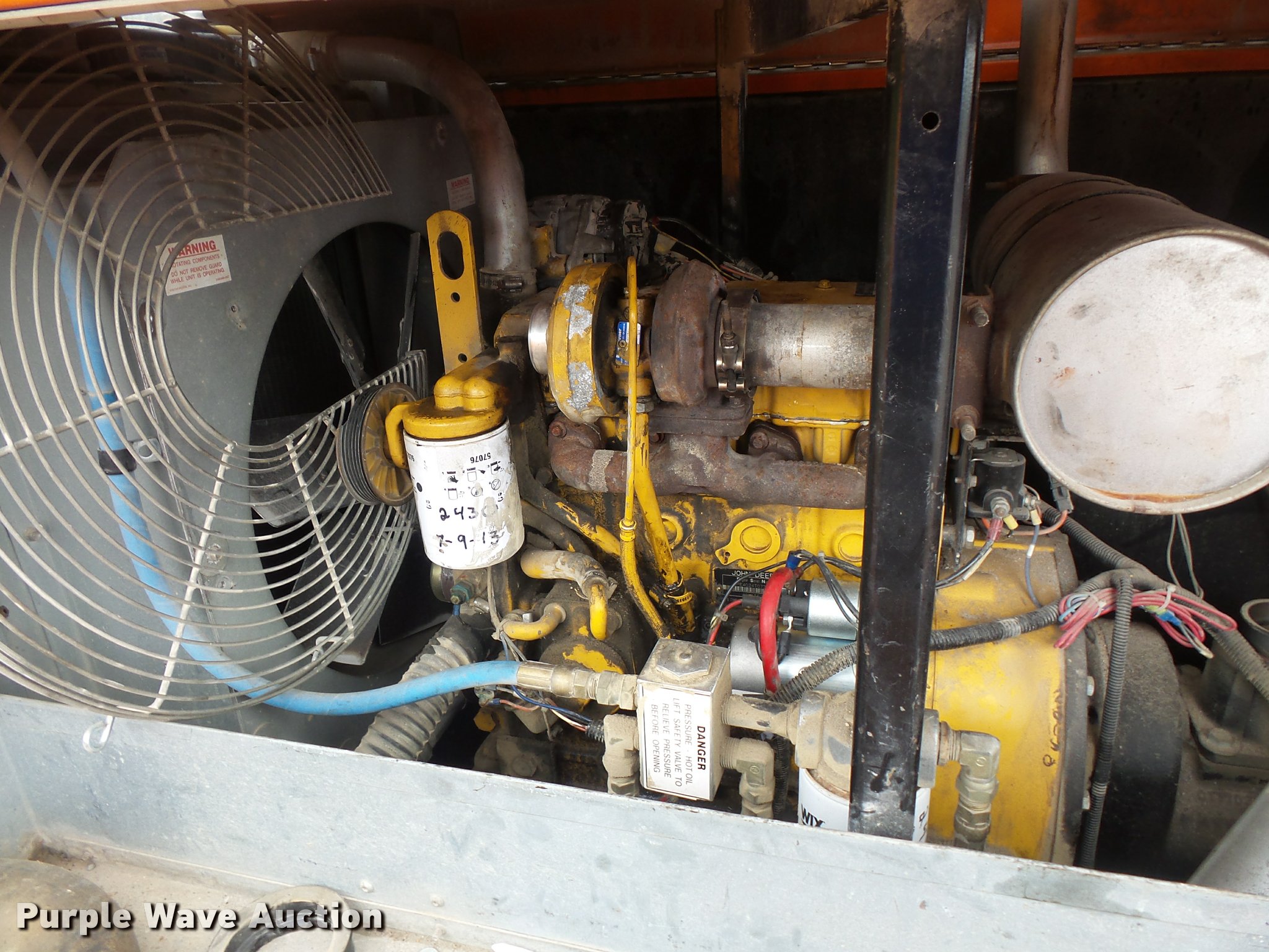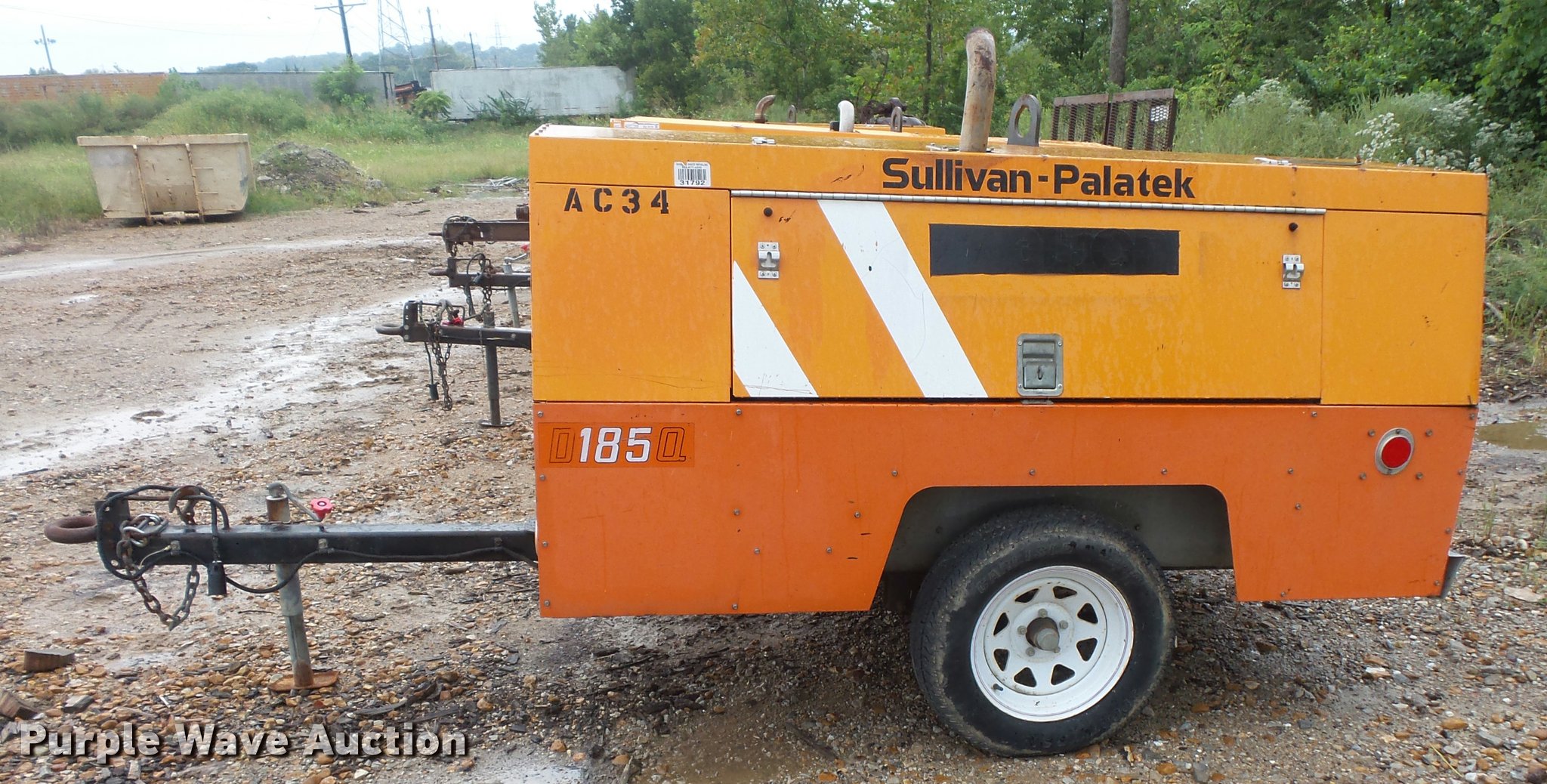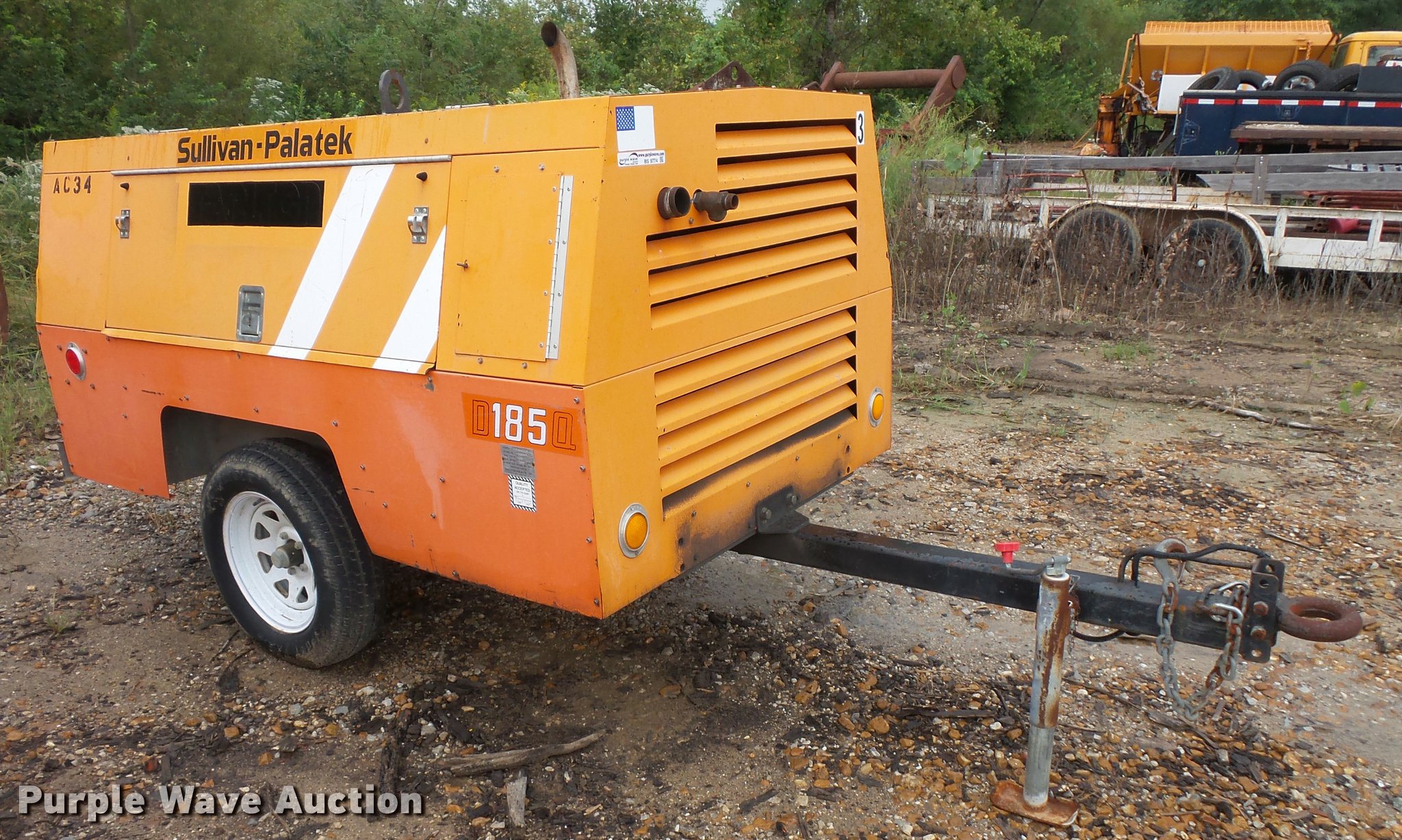Purple Wave is selling a used Air Compressor in Missouri. This item is a 2006 Sullivan Palatek D185Q11JD air compressor with the following: John Deere PE4024T0738 2.4L four cylinder diesel engine, Serial PE4024T0738, 185 CFM, 100 psi, Pintle hitch, ST205/75D15 tires, Serial 26090, Unit# 3