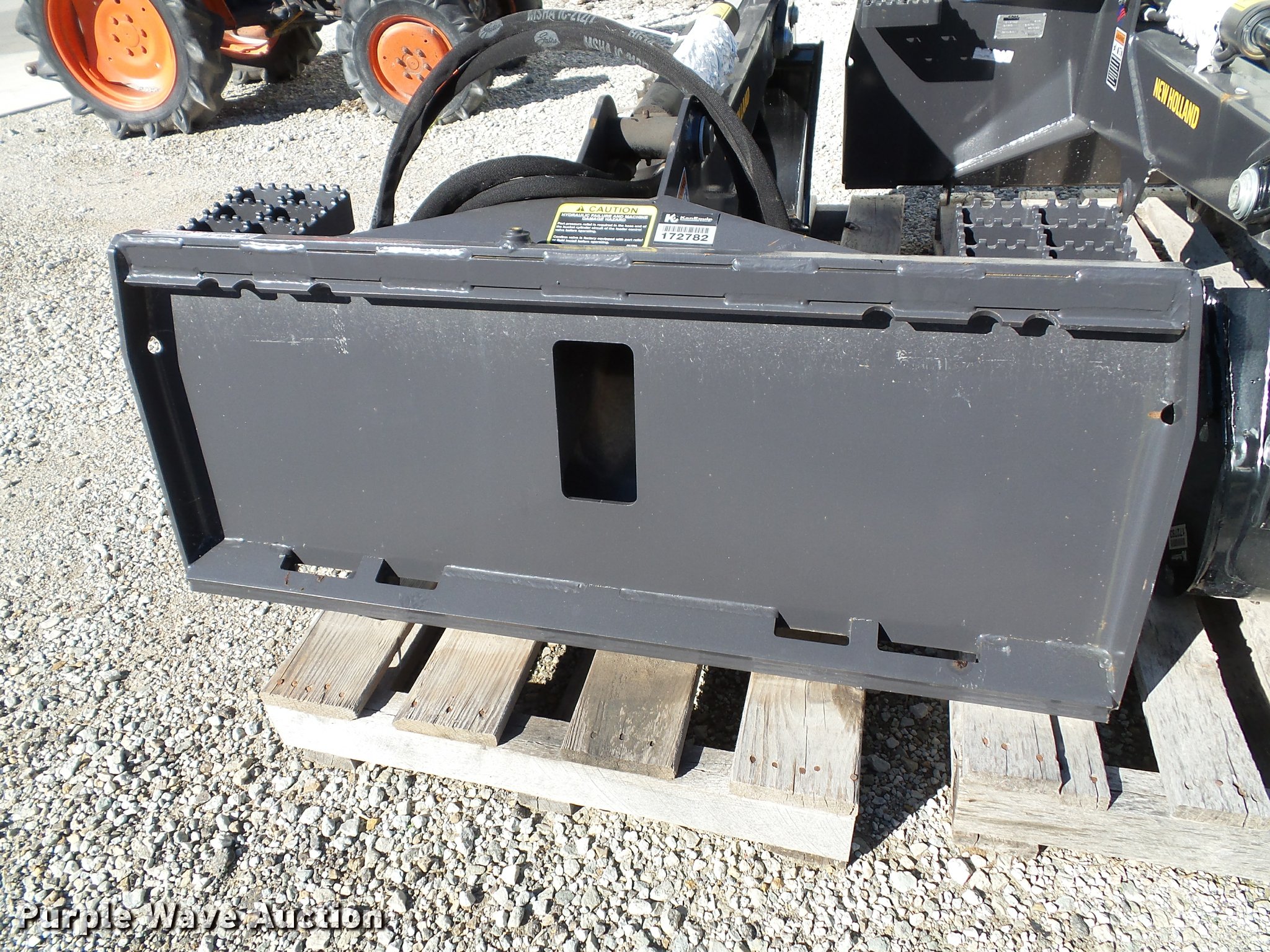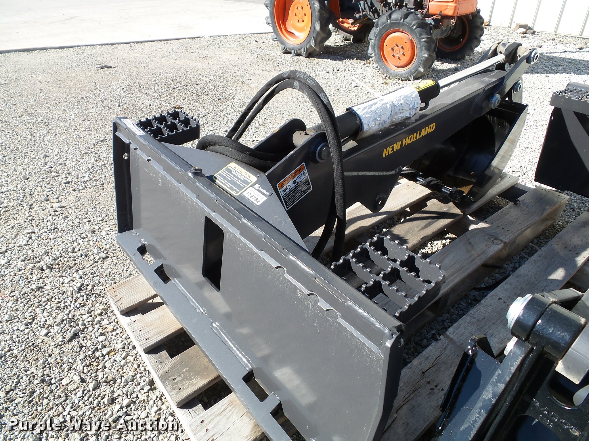 Purple Wave is selling a used Skid Steer Attach. in Kansas. This item is a 2014 New Holland skid steer backhoe attachment with the following: 12"W bucket, (3) bolt-on teeth, 4' maximum reach capacity, Part No. 87487655, Serial 359710, Unit# 172782