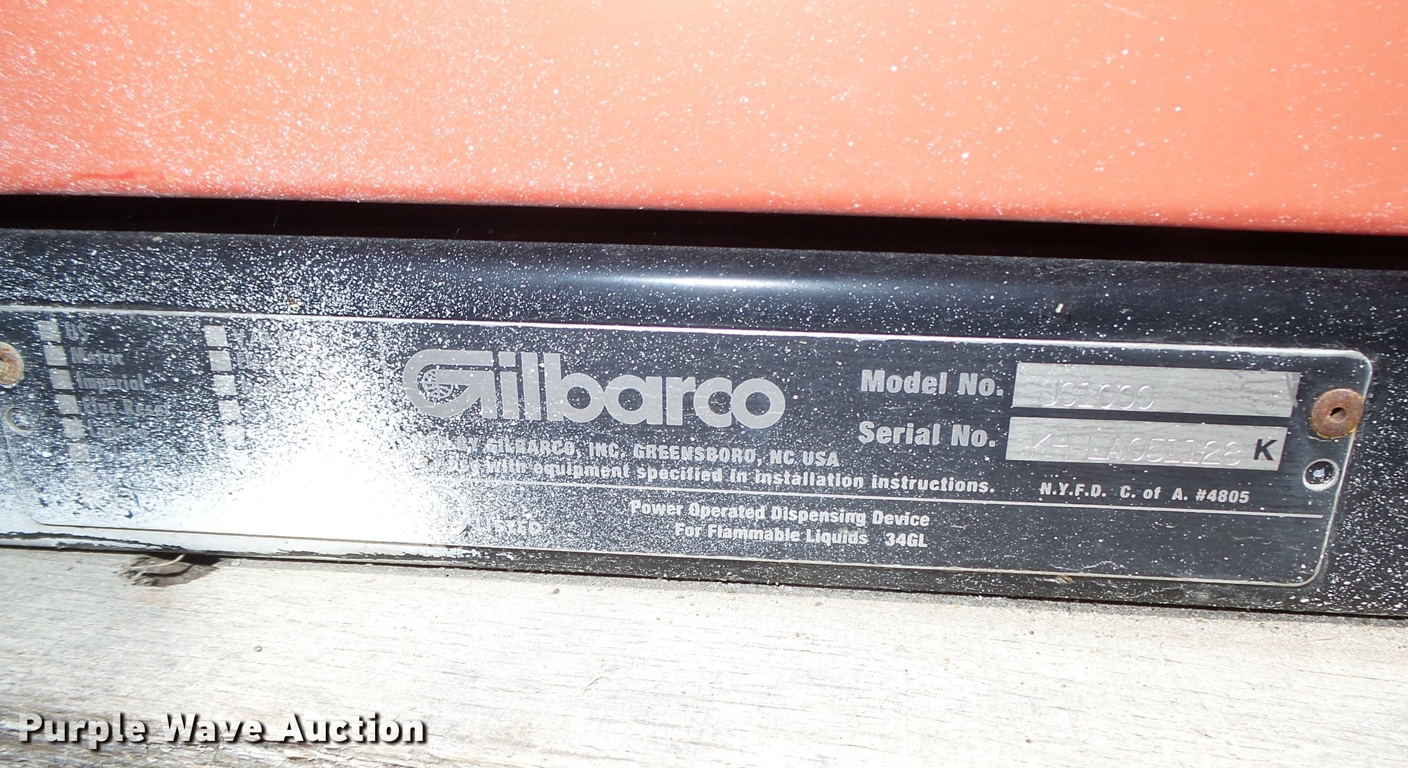 Purple Wave is selling a used Fuel and Lube in Missouri. This item is a Gilbarco JC1000 fuel dispenser with the following: No hose or nozzle, Serial KHLA051128K