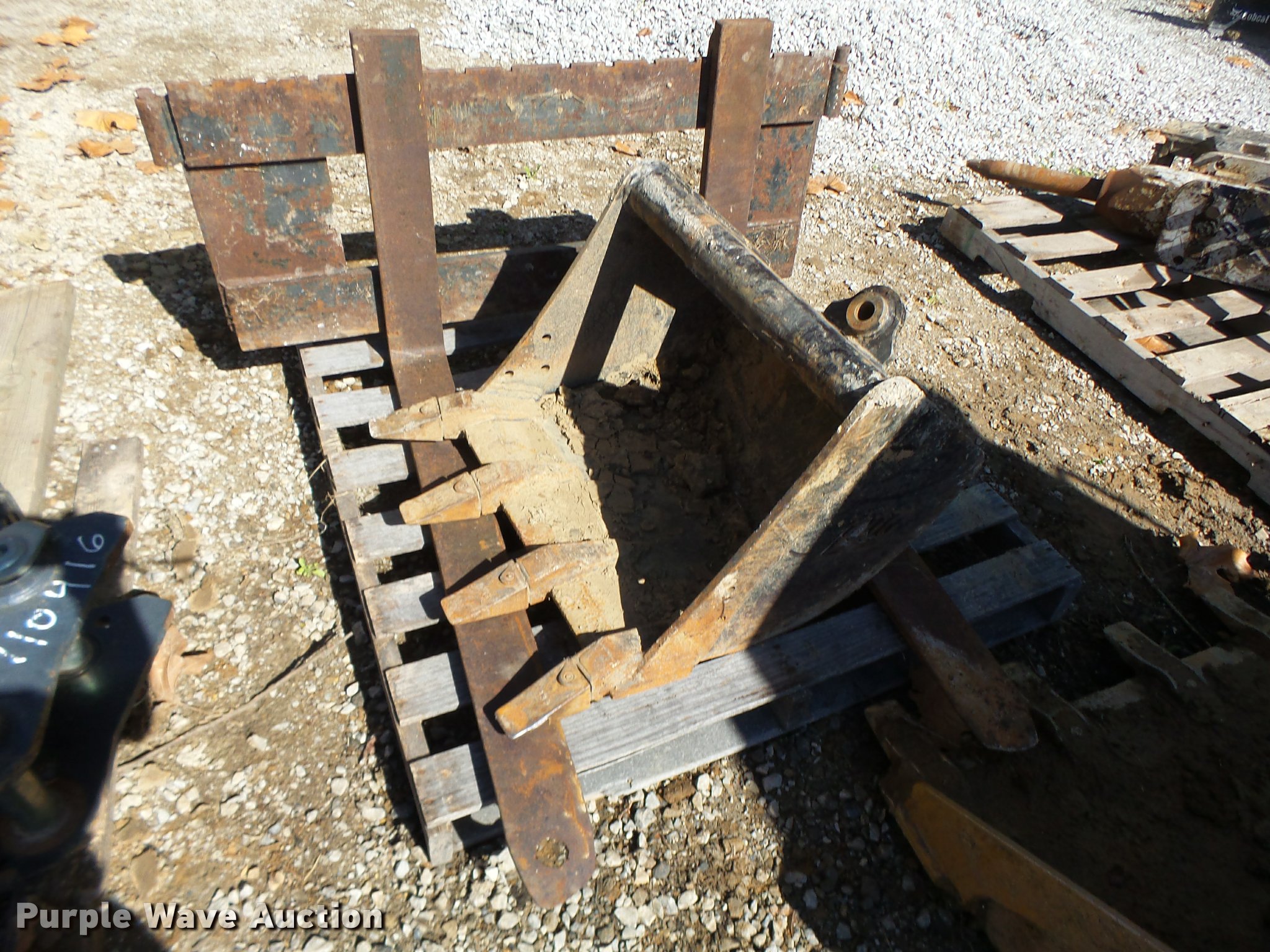Pallet forks. 41"L, Quick exchange bracket, 24"W bucket. 5130 Appache Drive. Lathrop, MO 64465