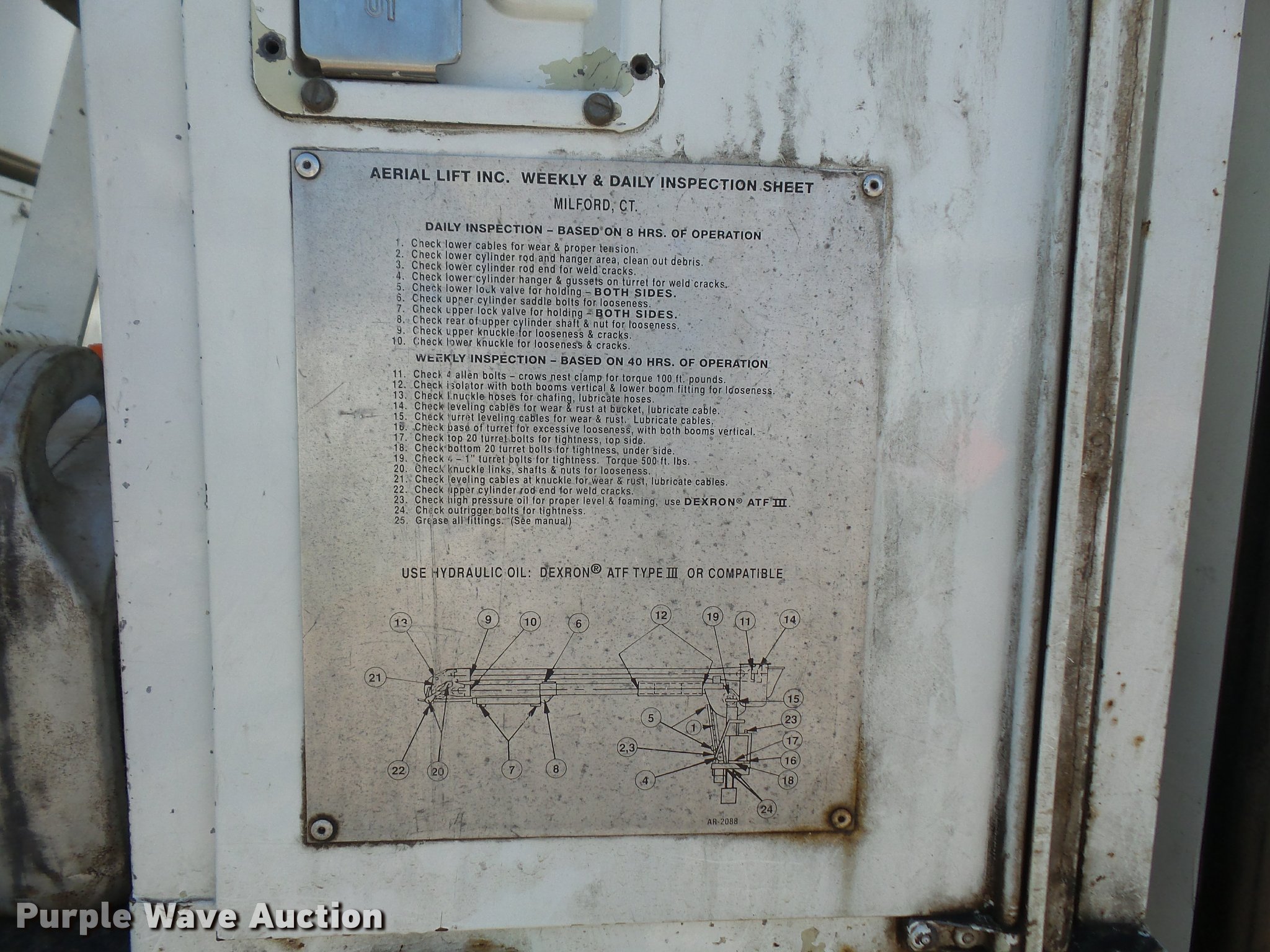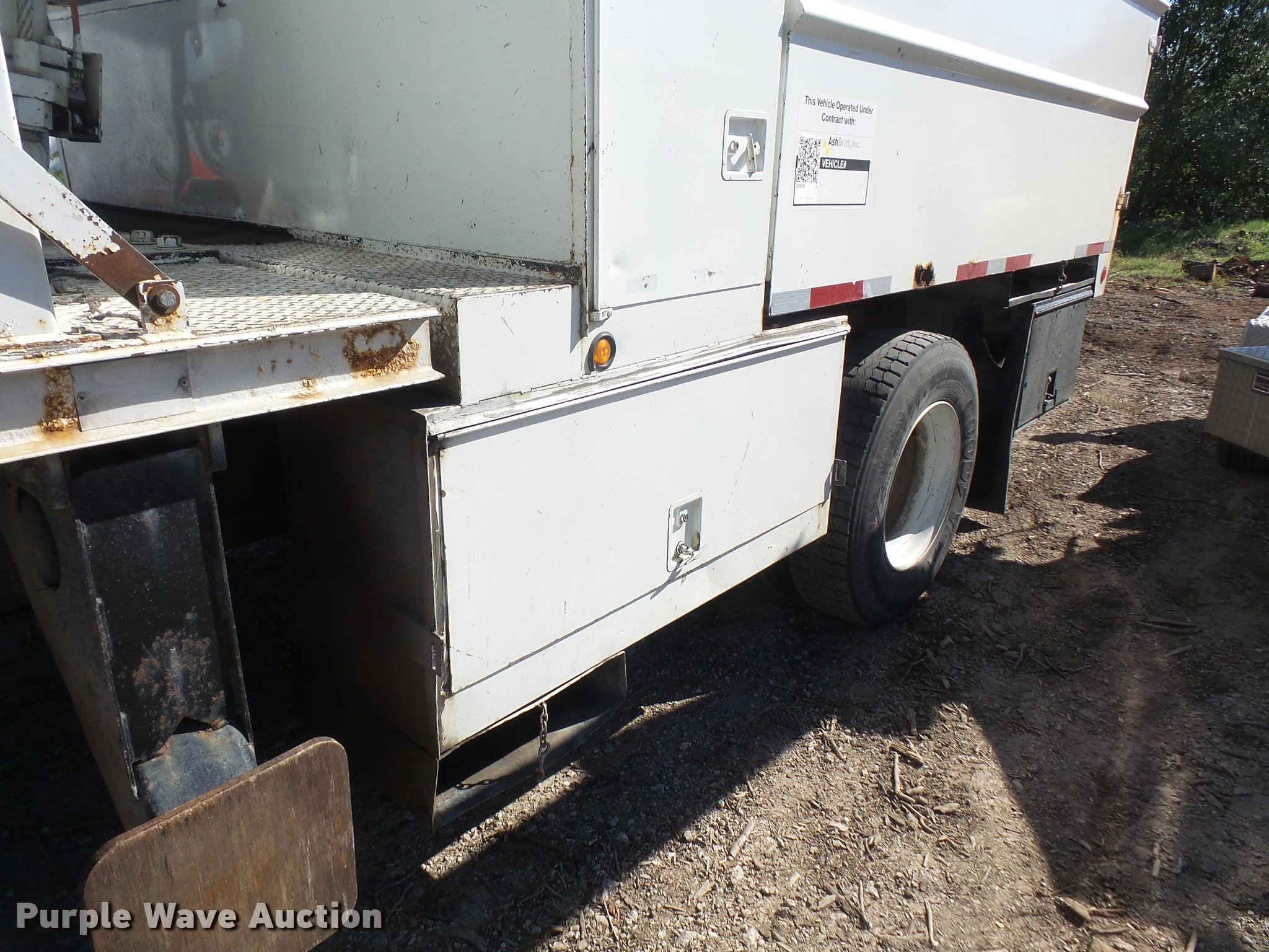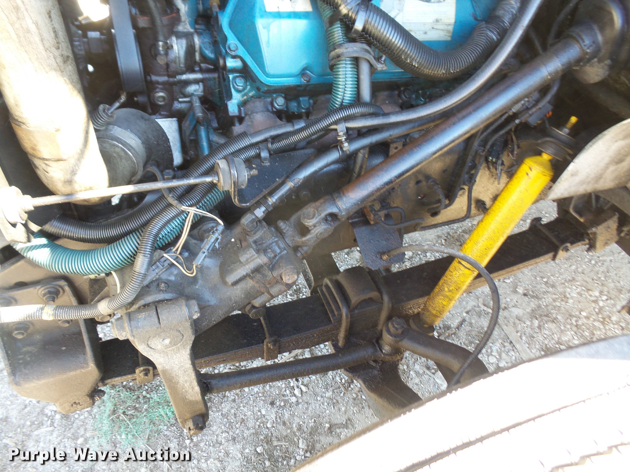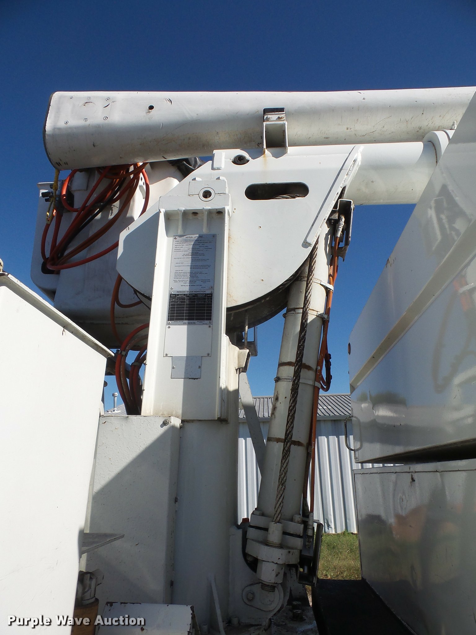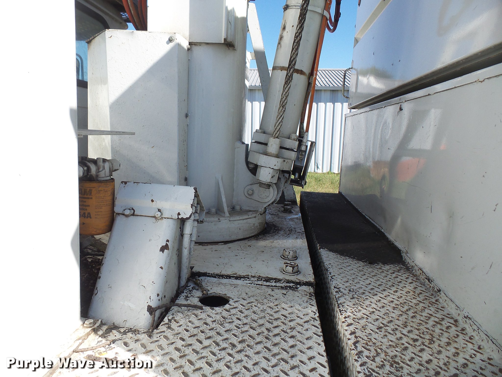 Purple Wave is selling a used Bucket Truck in Kansas. This item is a 1999 International 4700 bucket/forestry truck with the following: 88,664 miles on odometer, International B190 7.3L V8 turbo diesel engine, 190 HP, Spicer five speed manual transmission, Single axle, Heat, Spring suspension seat, PTO, 12'L dump bed, Toolboxes, Aerial lift 52-5-11-9H boom, 350 lbs maximum lift capacity, 55' maximum lift height, Man basket, Ground and platform controls, Boom rotation, Articulating boom, Serial 3141199, Single fuel tank, Pintle hitch, Spring suspension, Hydraulic brakes, 295/75R22.5 tires, Hard starting when cold, Bed will not dump