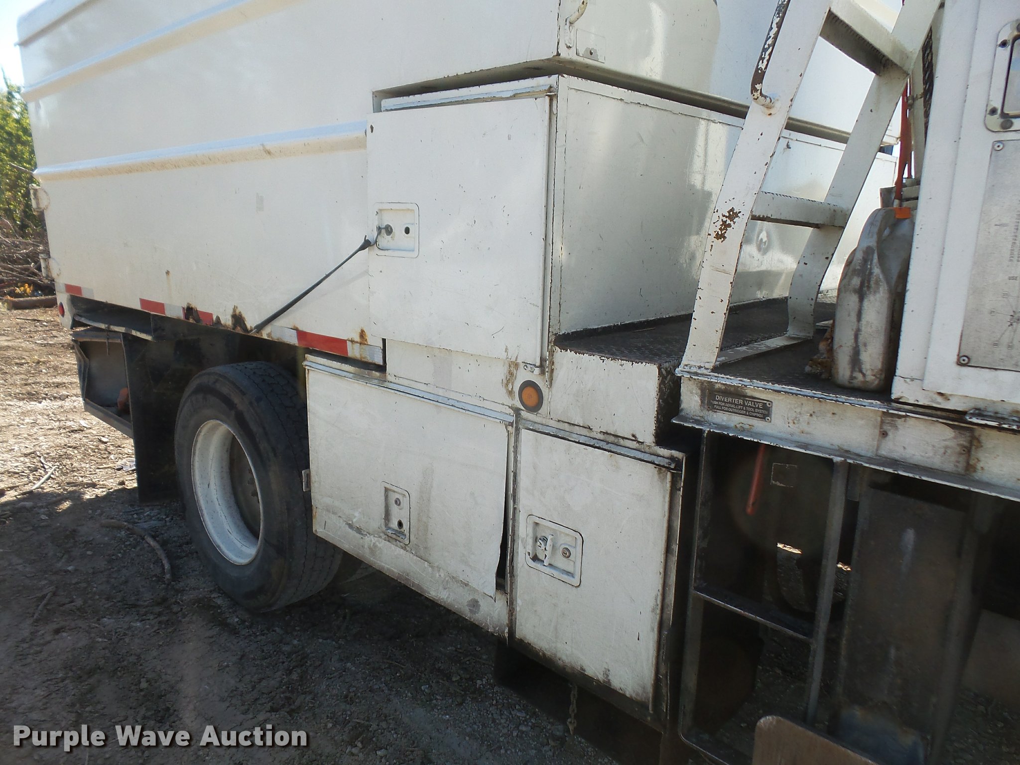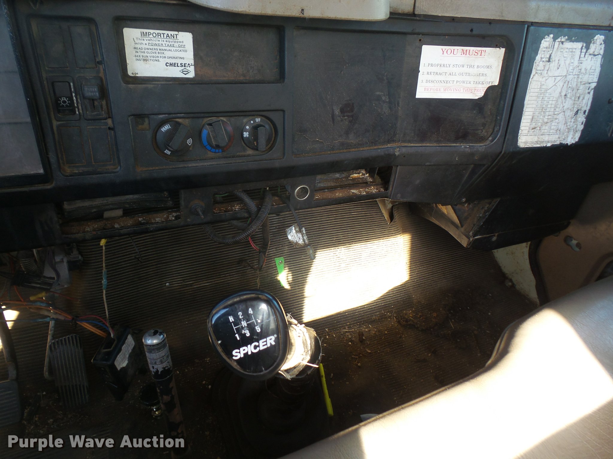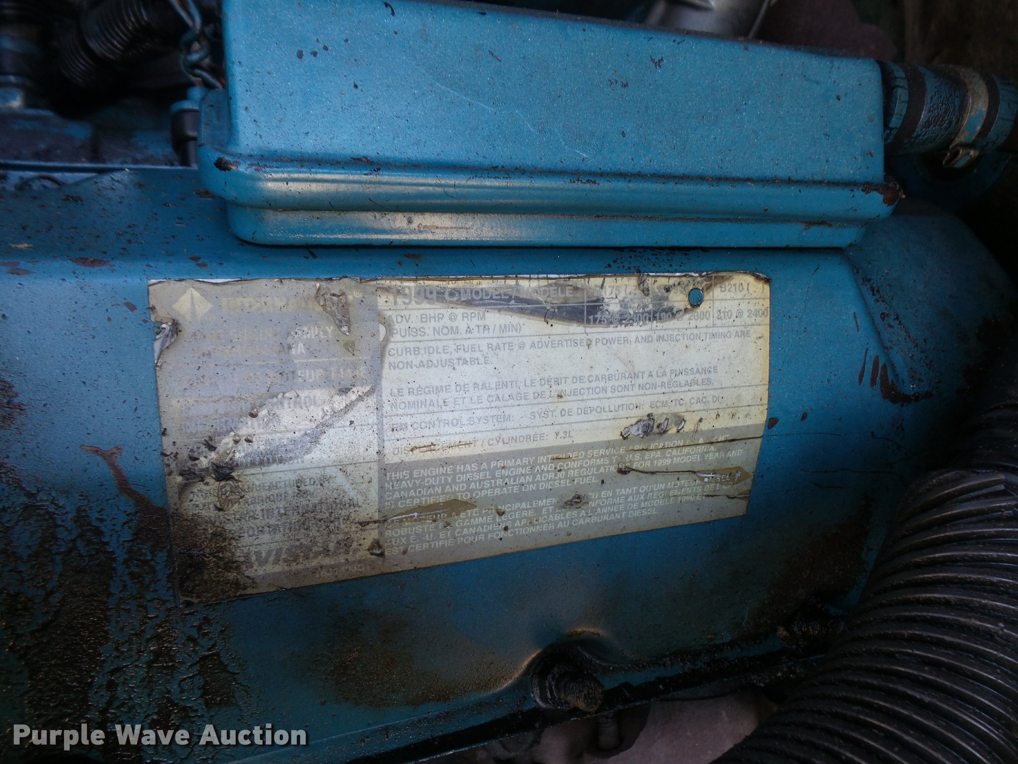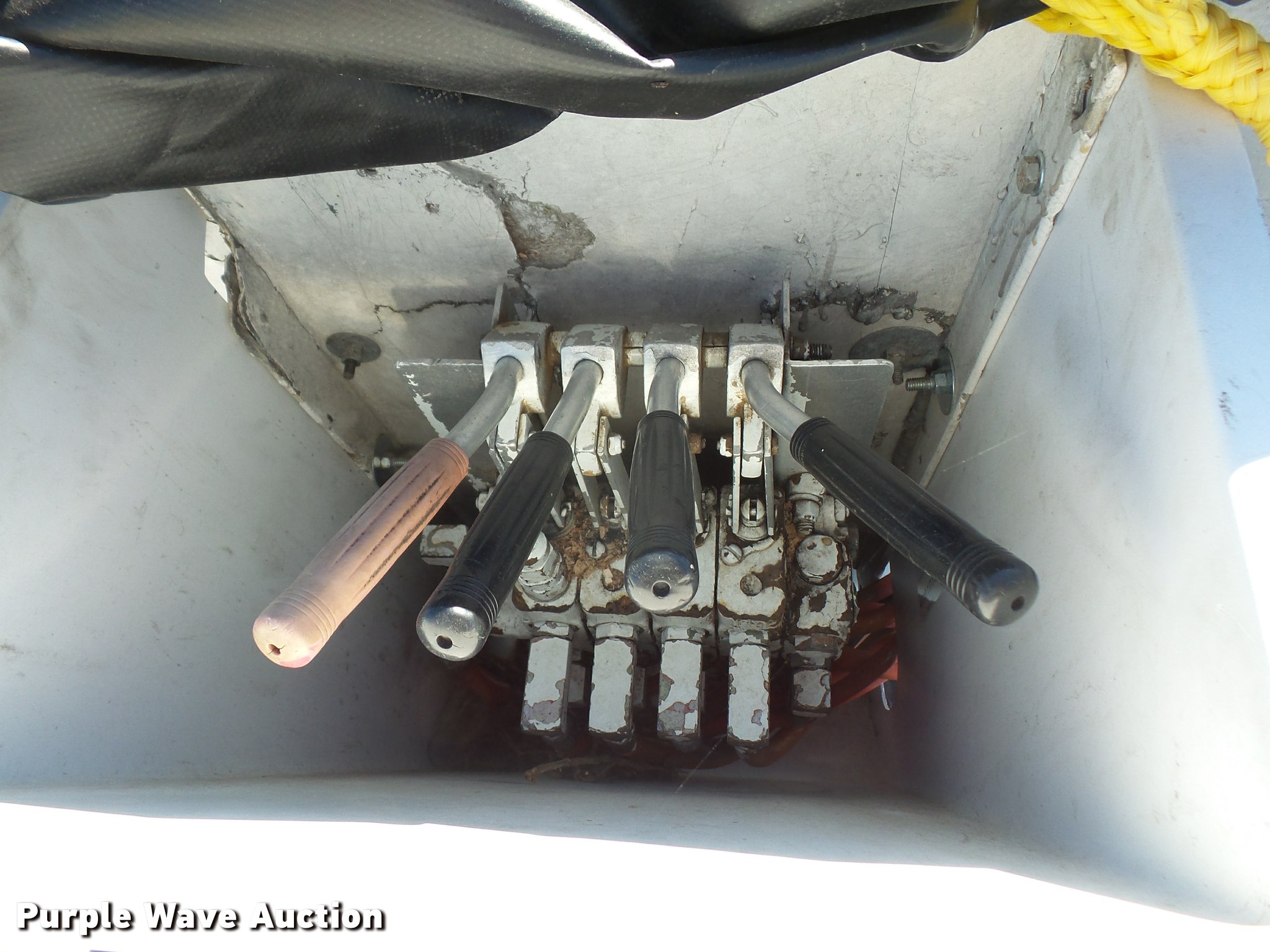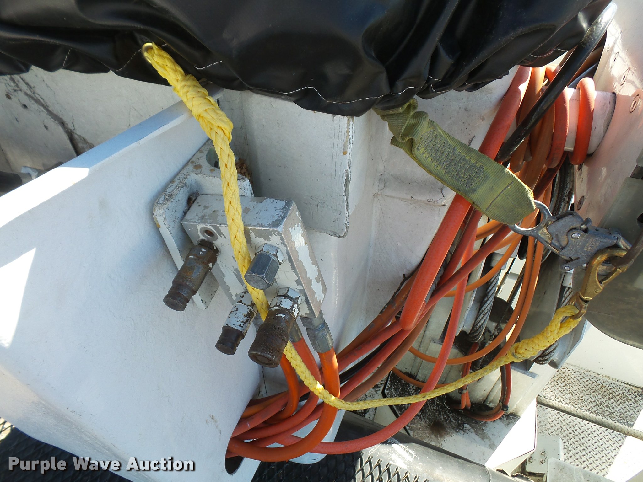 Purple Wave is selling a used Bucket Truck in Kansas. This item is a 1999 International 4700 bucket/forestry truck with the following: 88,664 miles on odometer, International B190 7.3L V8 turbo diesel engine, 190 HP, Spicer five speed manual transmission, Single axle, Heat, Spring suspension seat, PTO, 12'L dump bed, Toolboxes, Aerial lift 52-5-11-9H boom, 350 lbs maximum lift capacity, 55' maximum lift height, Man basket, Ground and platform controls, Boom rotation, Articulating boom, Serial 3141199, Single fuel tank, Pintle hitch, Spring suspension, Hydraulic brakes, 295/75R22.5 tires, Hard starting when cold, Bed will not dump