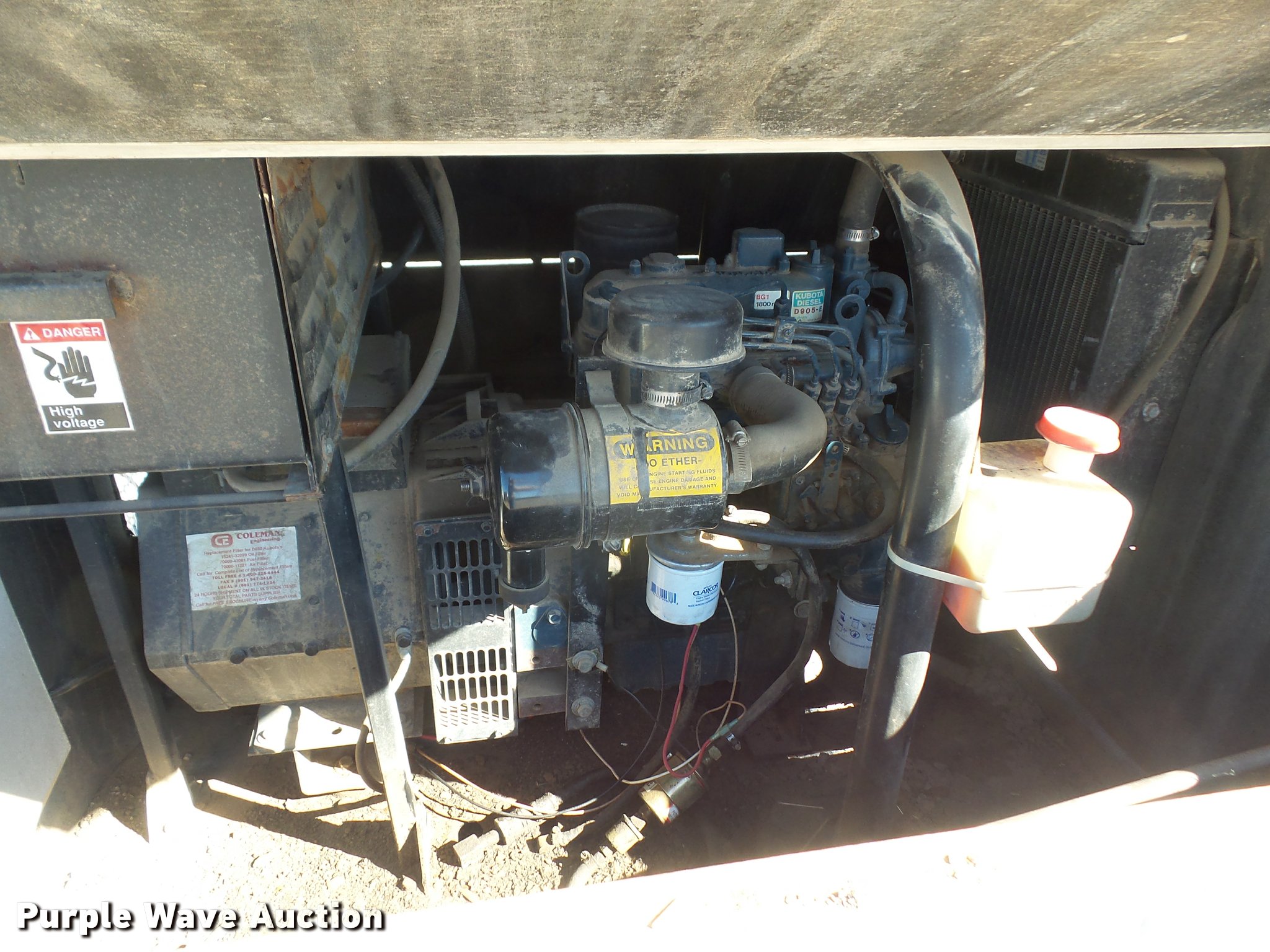 Purple Wave is selling a used Light Plant in Kansas. This item is a Chicago Pneumatic CP4400Q light plant with the following: 2,023 hours on meter, Kubota D-905-E three cylinder diesel engine, Single phase, 240V, (4) bulbs, 1,000 watts, Manual hoist, Stabilizers, 2" ball hitch, 205/65R15 tires, Serial CE16220