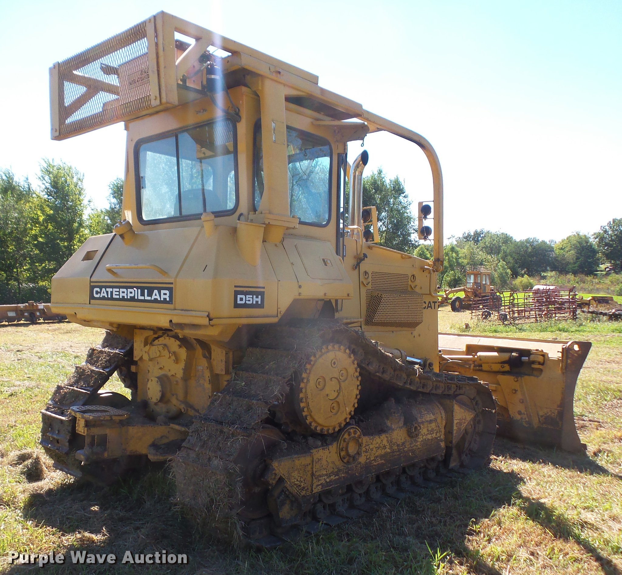 Purple Wave is selling a used Crawler Dozer in Kansas. This item is a 1989 Caterpillar D5H dozer with the following: 7,147 hours on meter, Caterpillar 3304 four cylinder turbo diesel engine, 120 HP, Powershift transmission, 3F-3R gears, Cab, AC and heat, Suspension seat, Clutch brake steering, Sweeps, Front work lights, 10'5"W six-way dozer blade, Rear drawbar, Six bottom rollers, 18"W tracks, AC has a leak, Serial 8RC01784