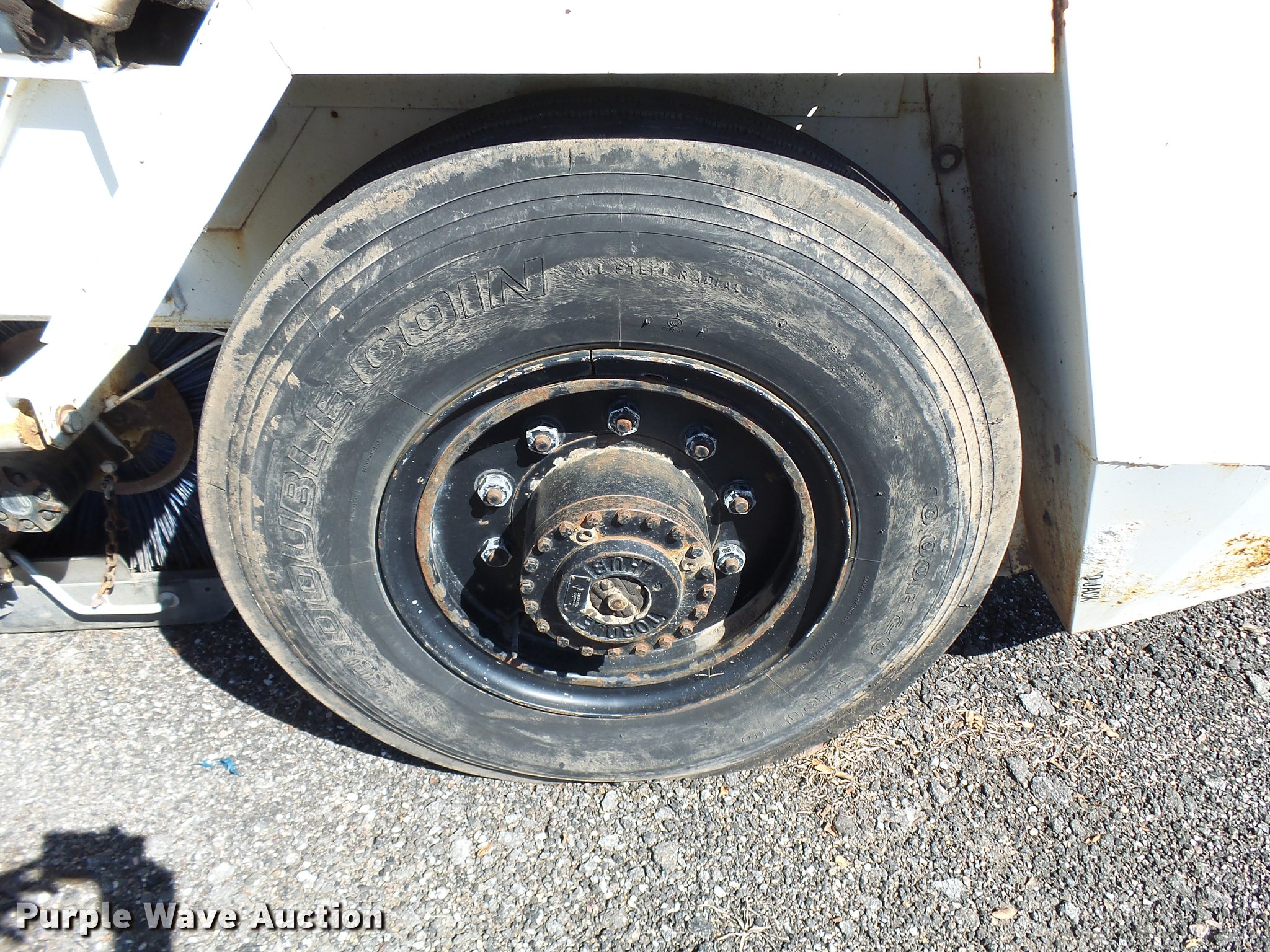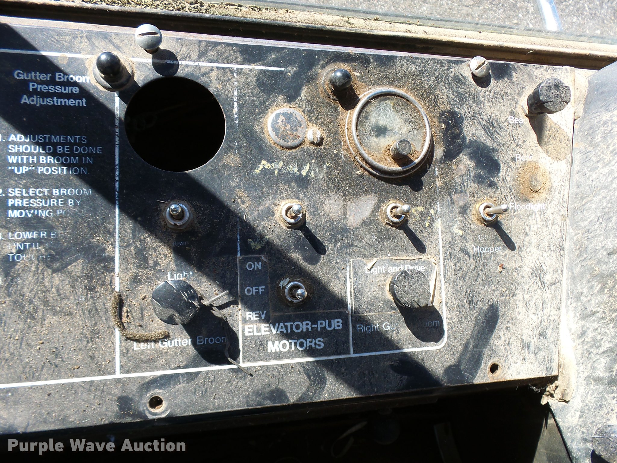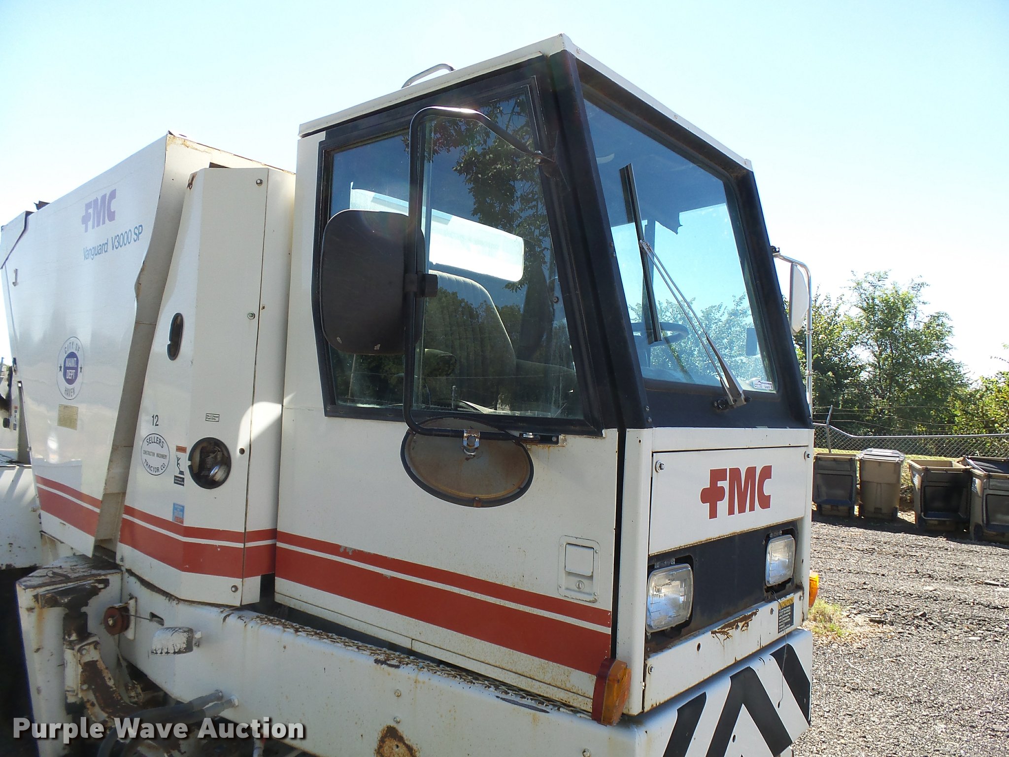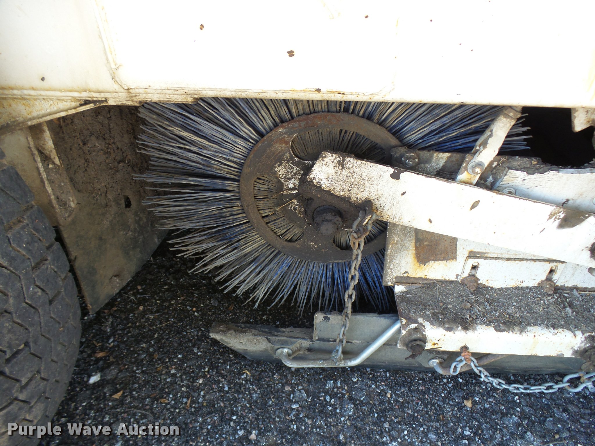 Purple Wave is selling a used Street Sweeper Truck in Kansas. This item is a 1989 FMC Vanguard V3000SP street sweeper with the following: 7,584 miles on odometer, 2,559 hours on meter, General Motors four cylinder diesel engine, Automatic transmission, Main broom, Right gutter broom, Water application, Hydraulic hopper, 10.00R20 tires, Left gutter broom missing, One conveyor paddle missing