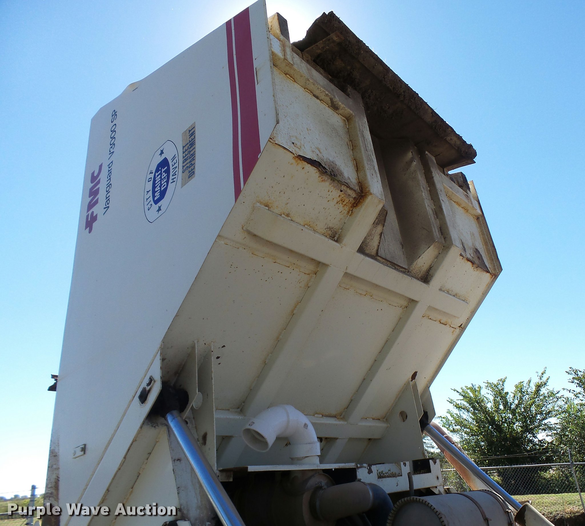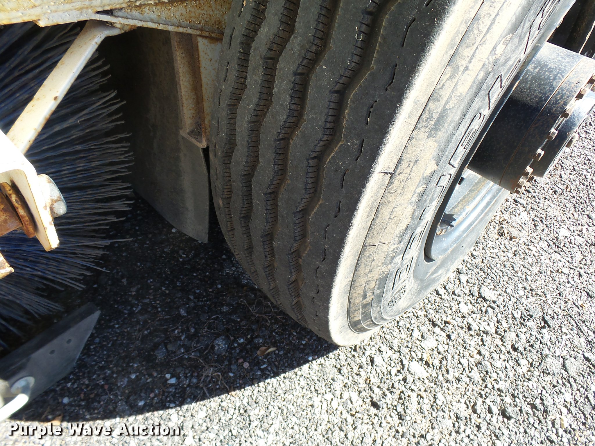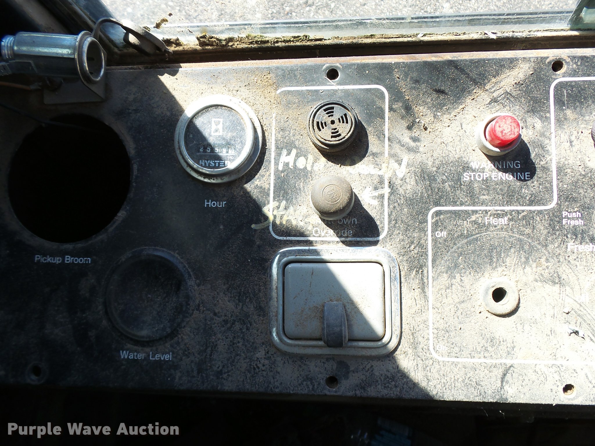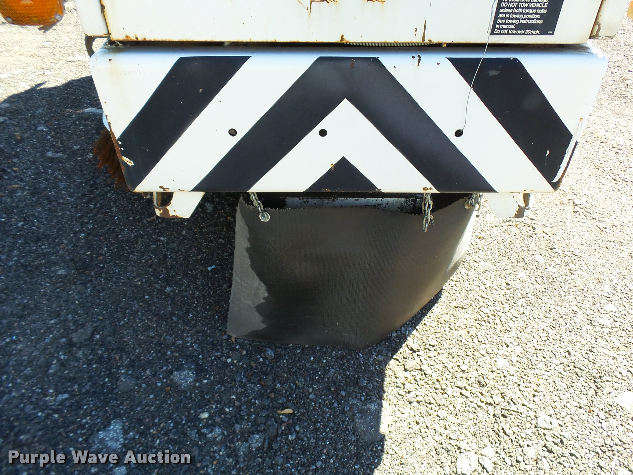 Purple Wave is selling a used Street Sweeper Truck in Kansas. This item is a 1989 FMC Vanguard V3000SP street sweeper with the following: 7,584 miles on odometer, 2,559 hours on meter, General Motors four cylinder diesel engine, Automatic transmission, Main broom, Right gutter broom, Water application, Hydraulic hopper, 10.00R20 tires, Left gutter broom missing, One conveyor paddle missing